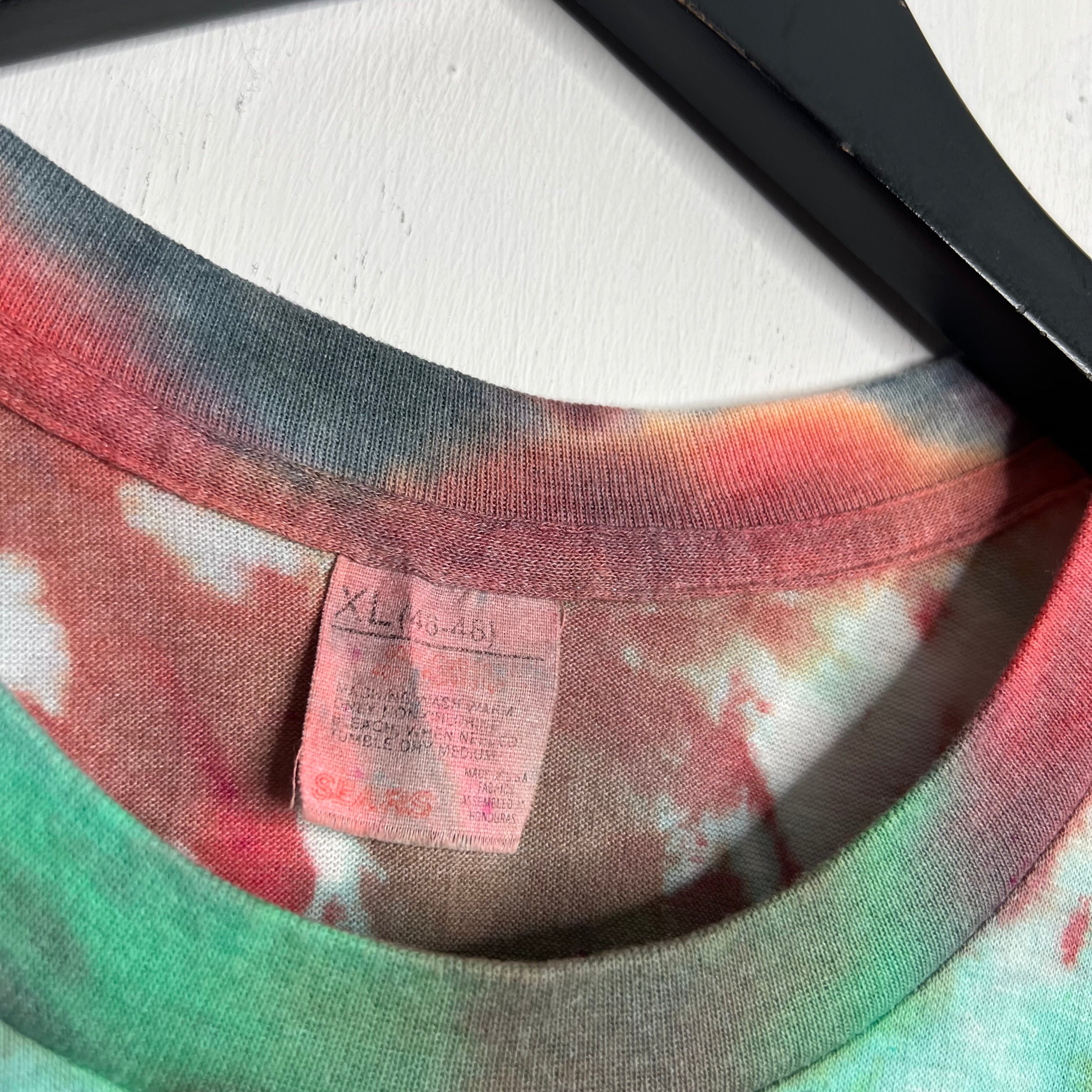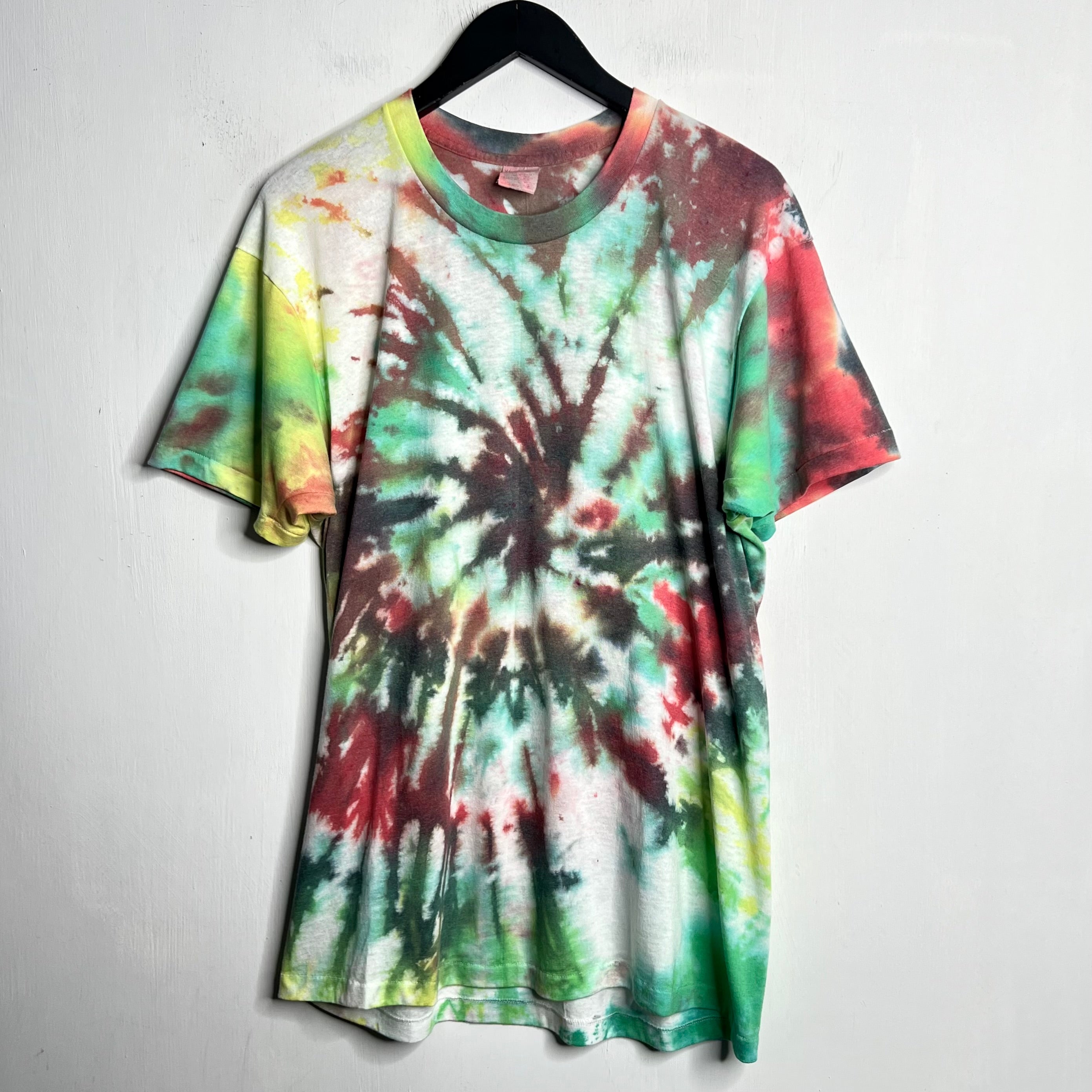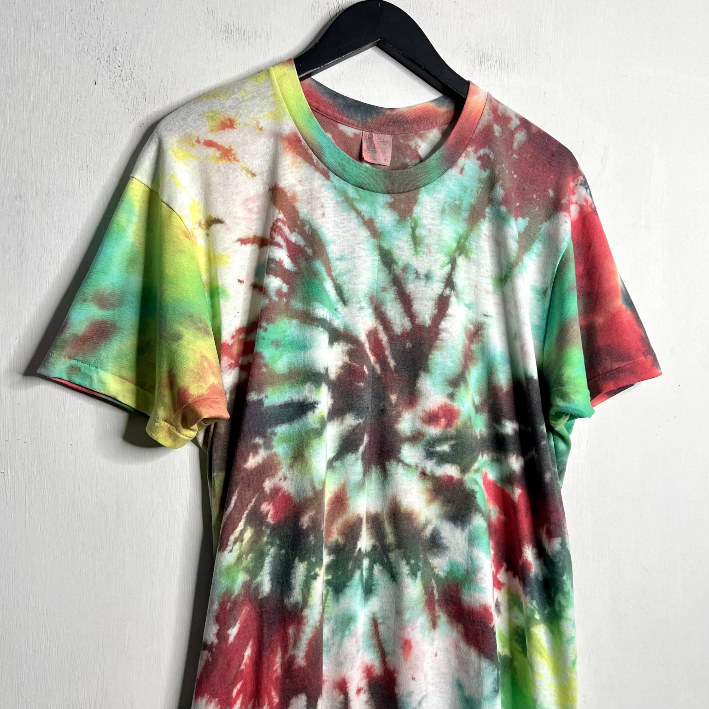 Summer go-to from heaven. 22" armpit to armpit, 30.5" top of back collar to bottom. Tag says XL, fits slightly narrow. 50% cotton/50% polyester. Made in the USA.