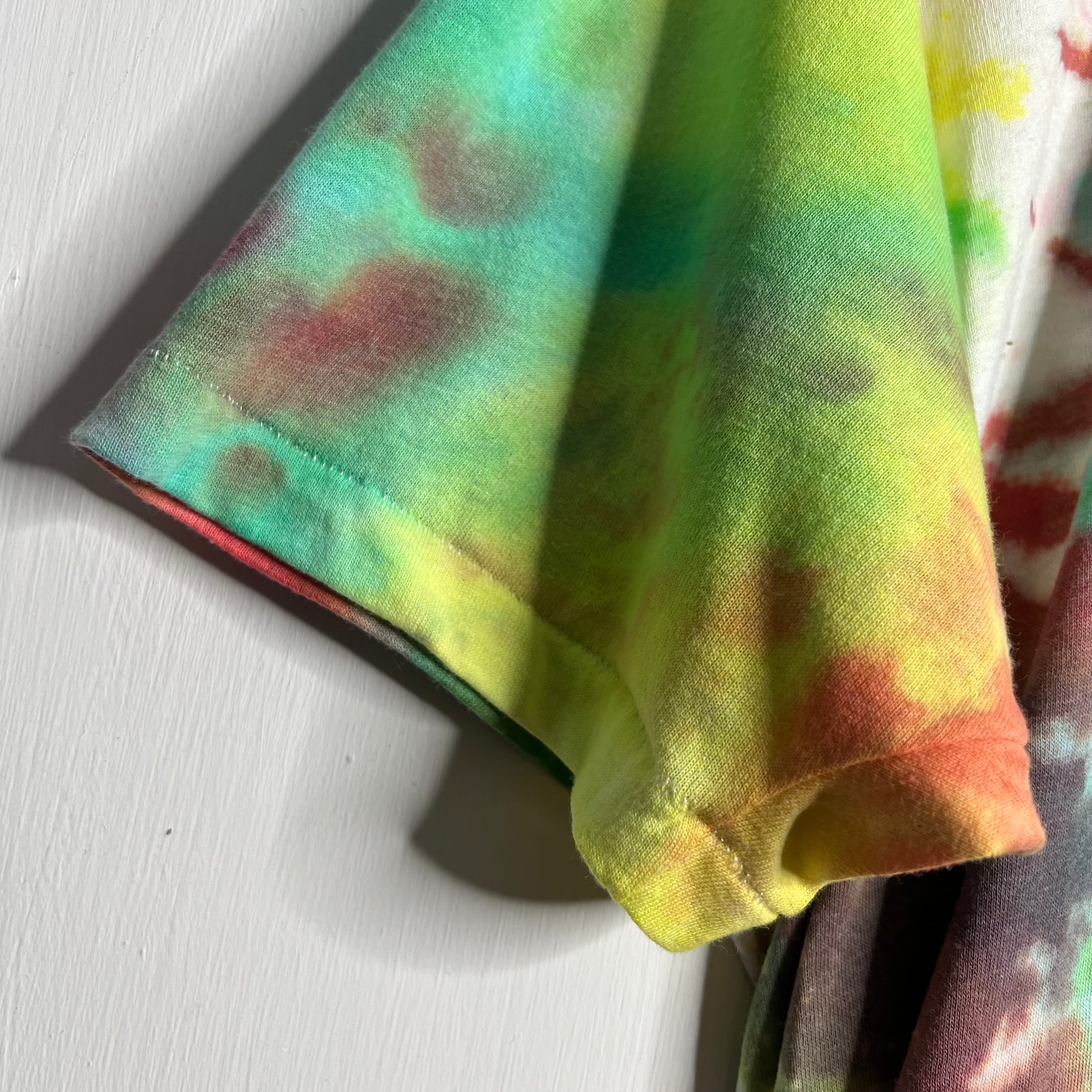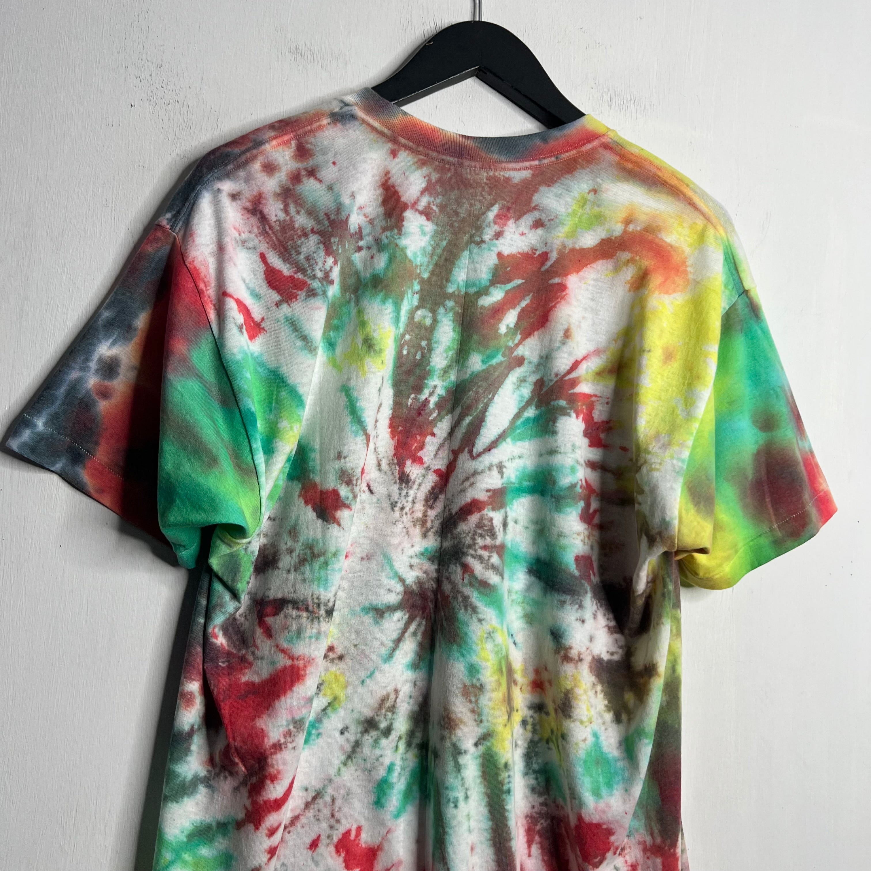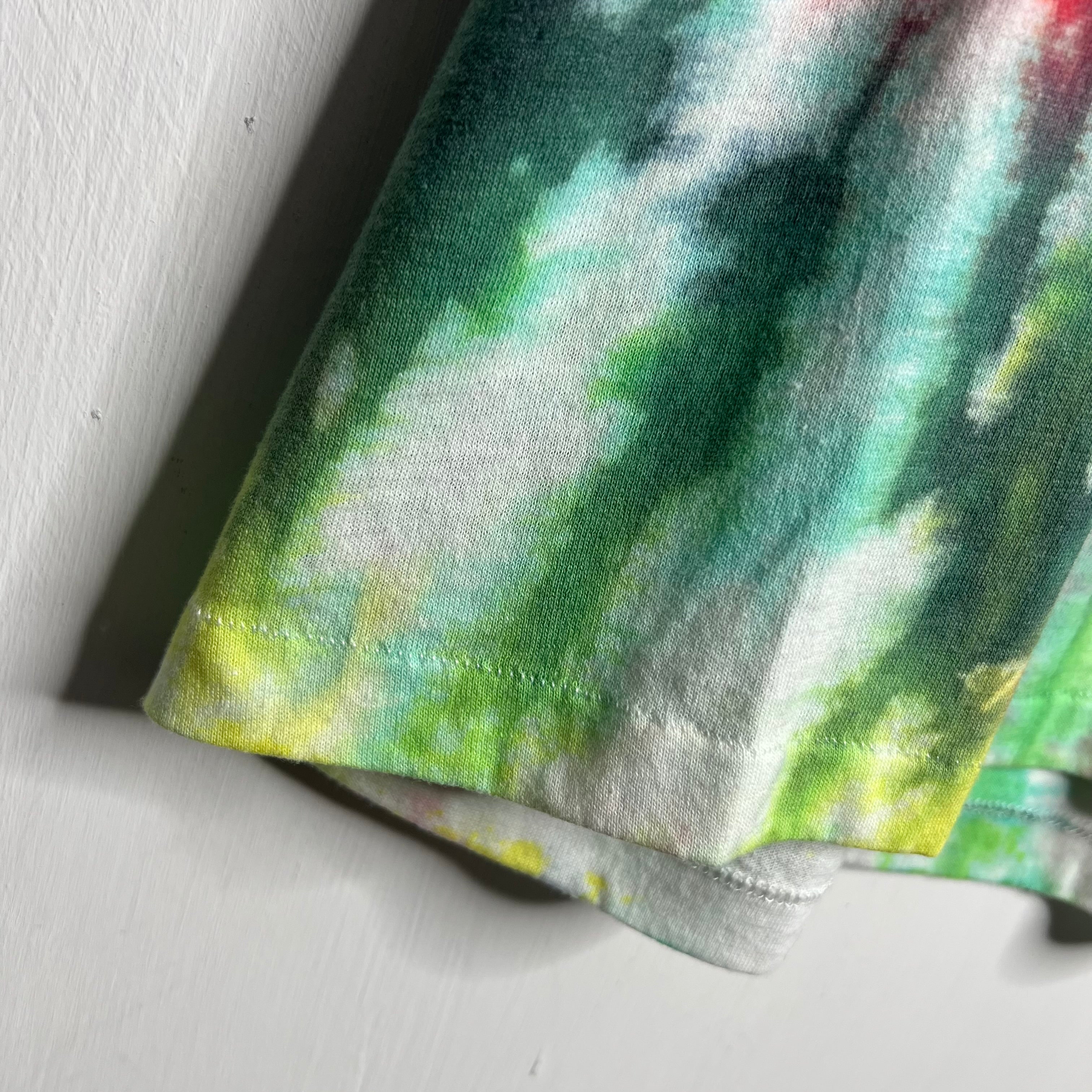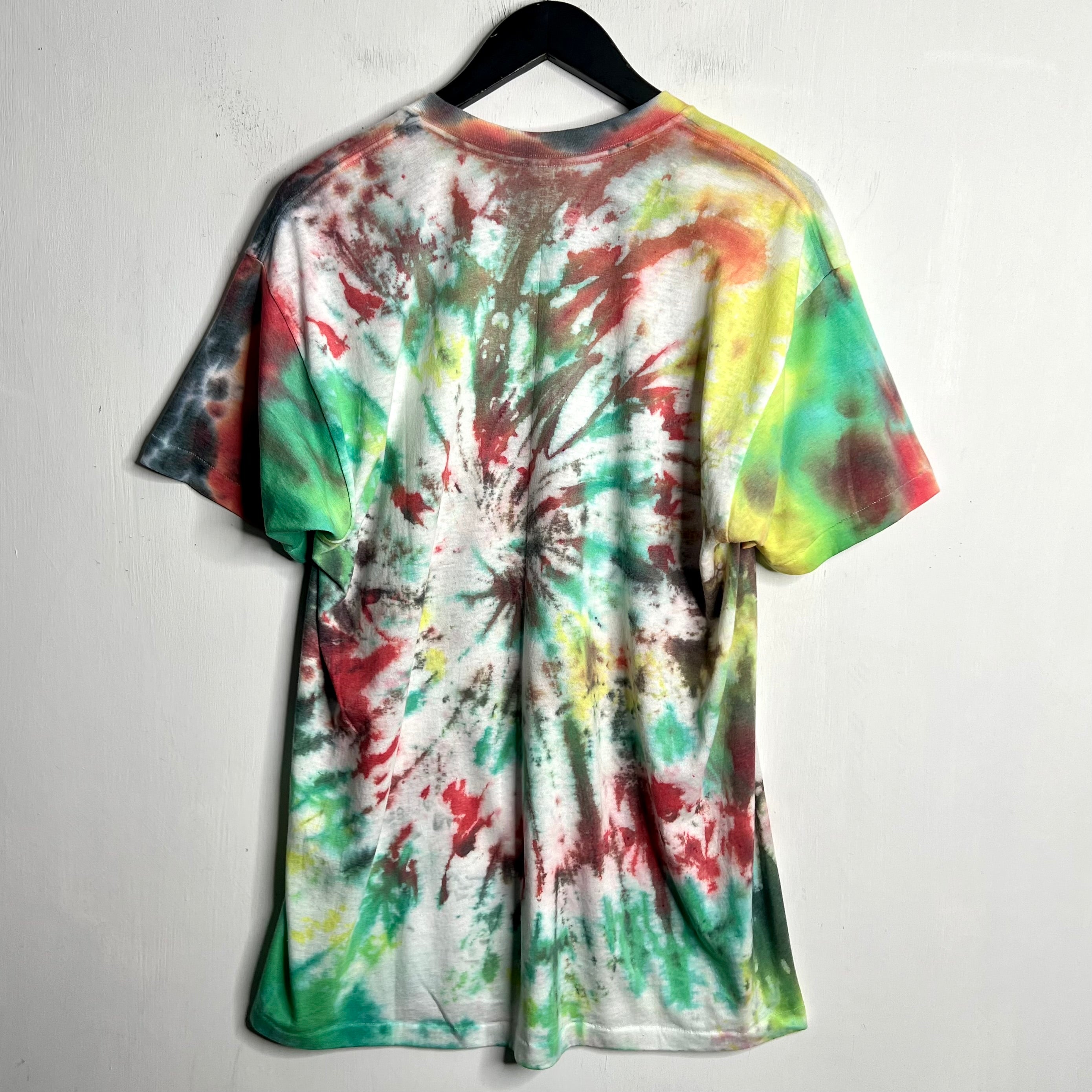 Summer go-to from heaven. 22" armpit to armpit, 30.5" top of back collar to bottom. Tag says XL, fits slightly narrow. 50% cotton/50% polyester. Made in the USA.