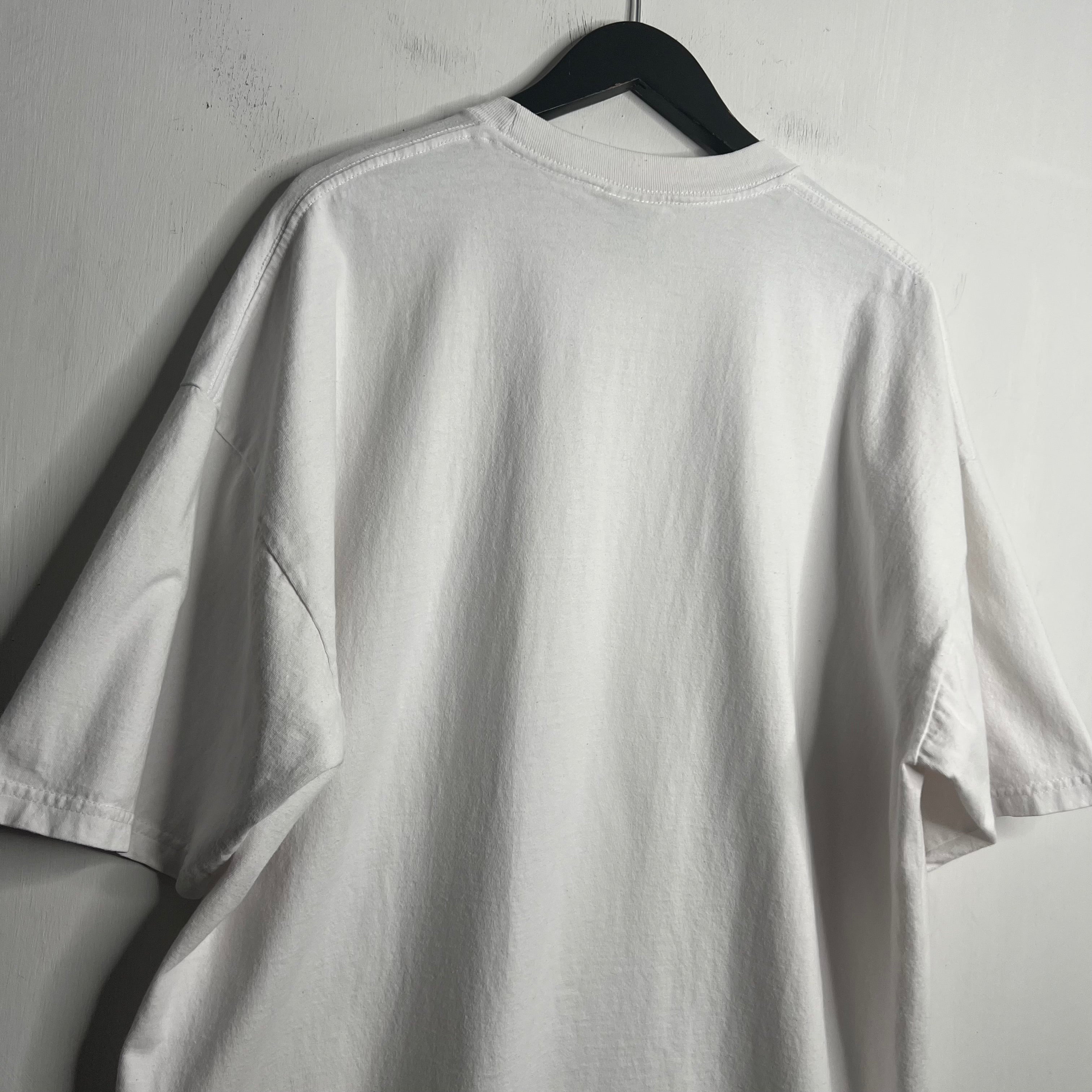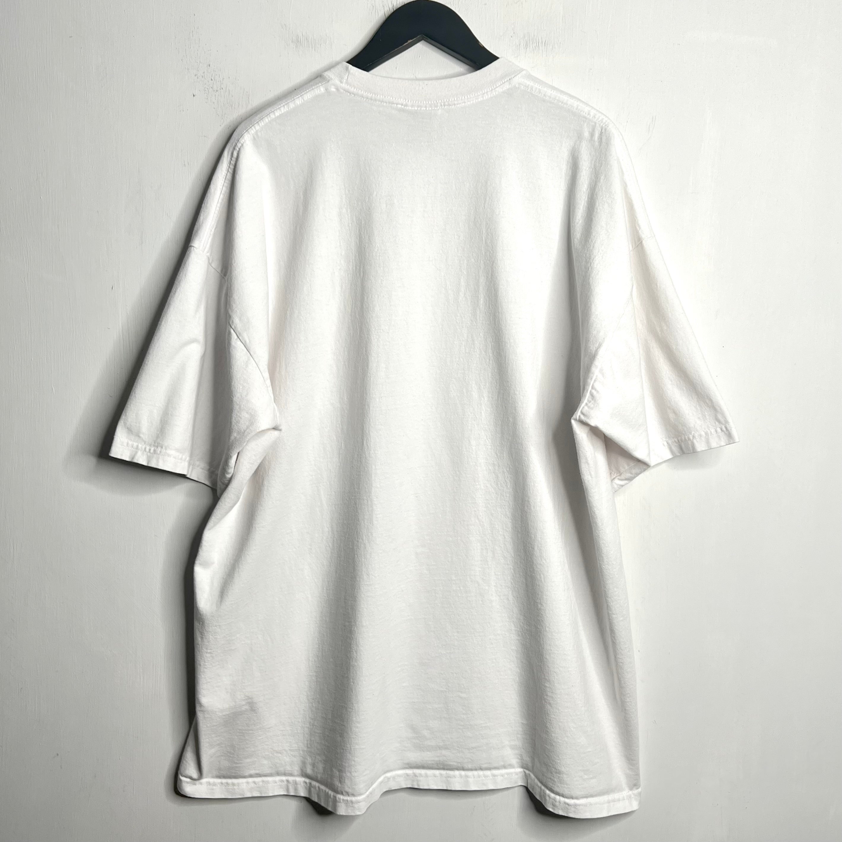 Oversized, flawless. 28" armpit to armpit, 33" top of back collar to bottom. Pro Club says 3XL. 100% cotton. Made in the USA.