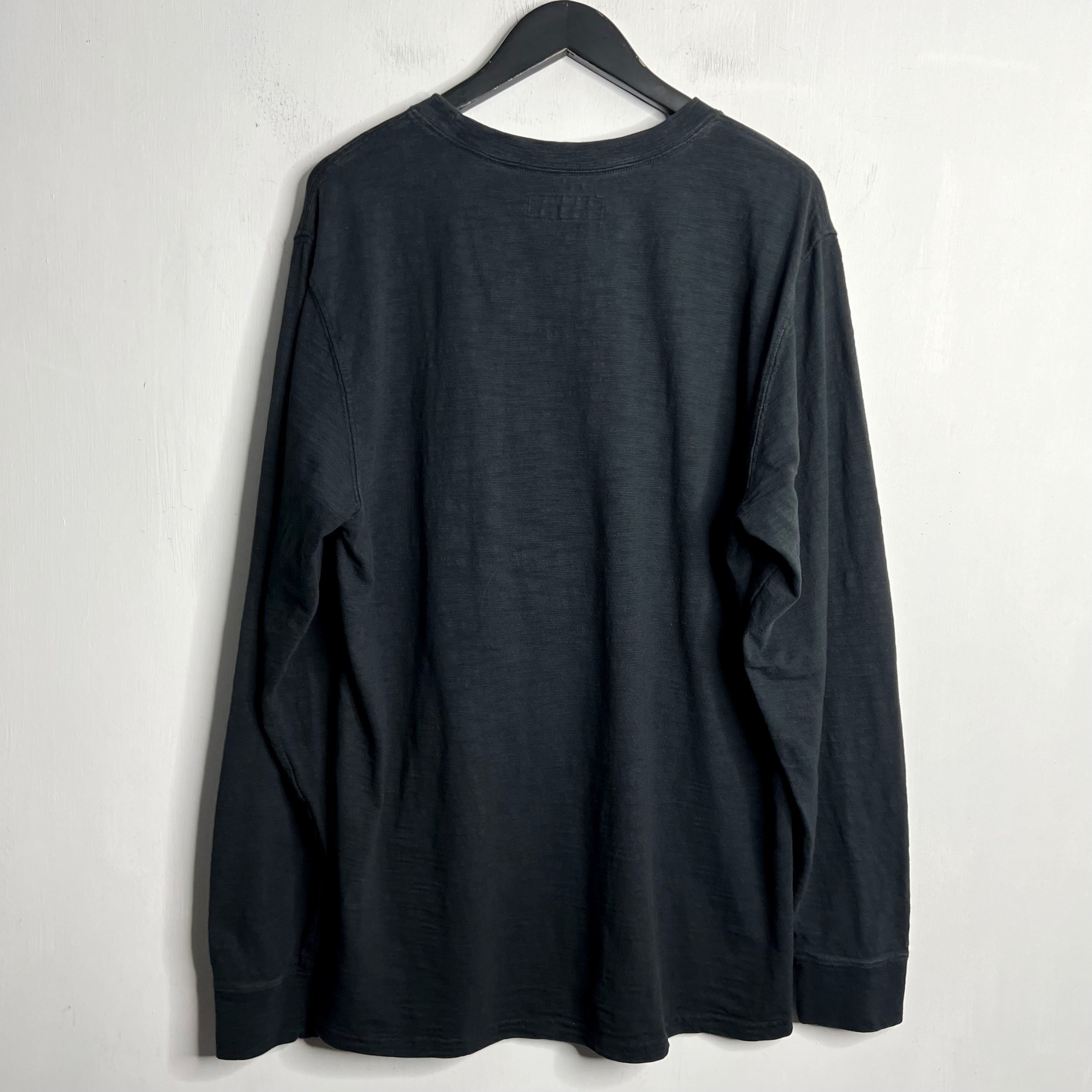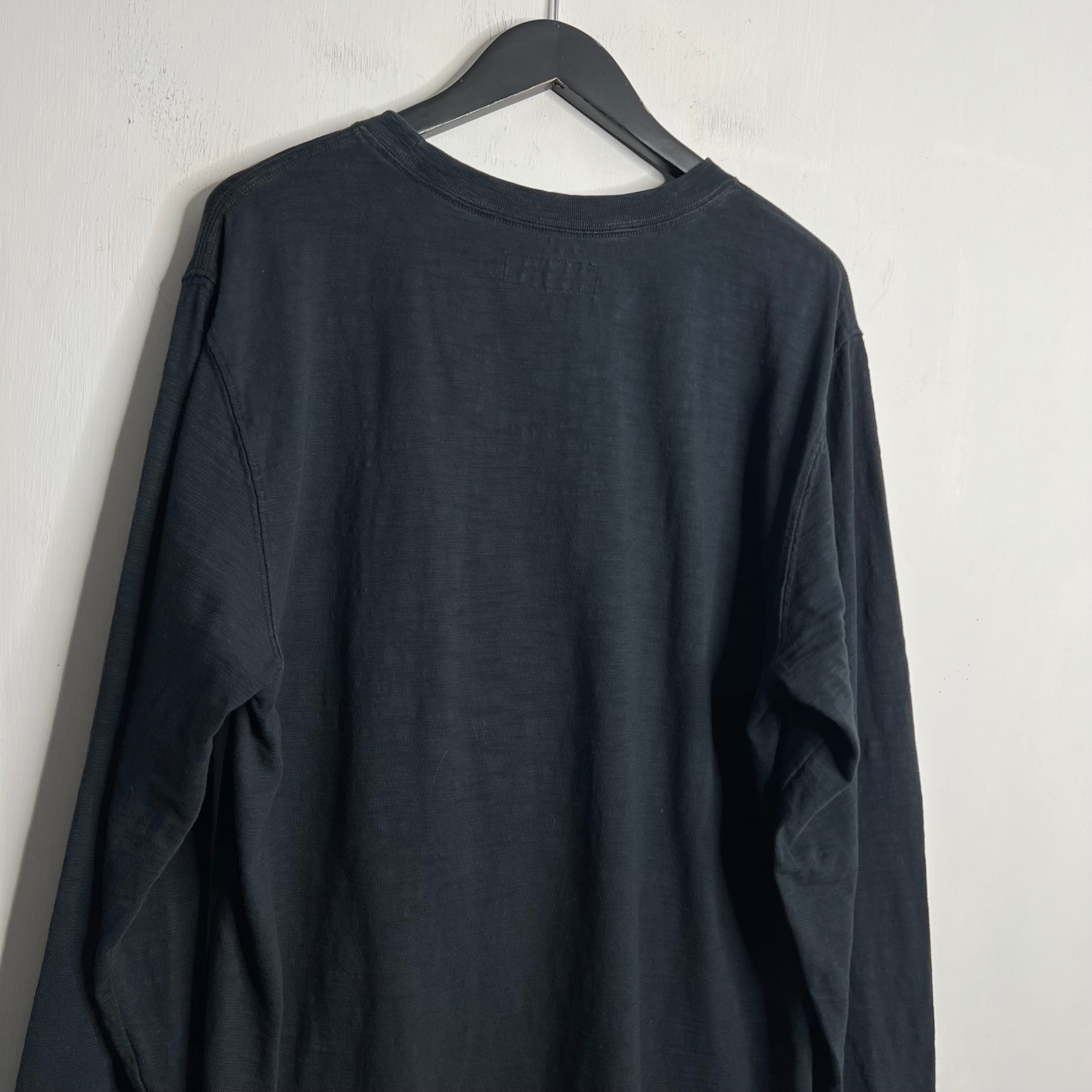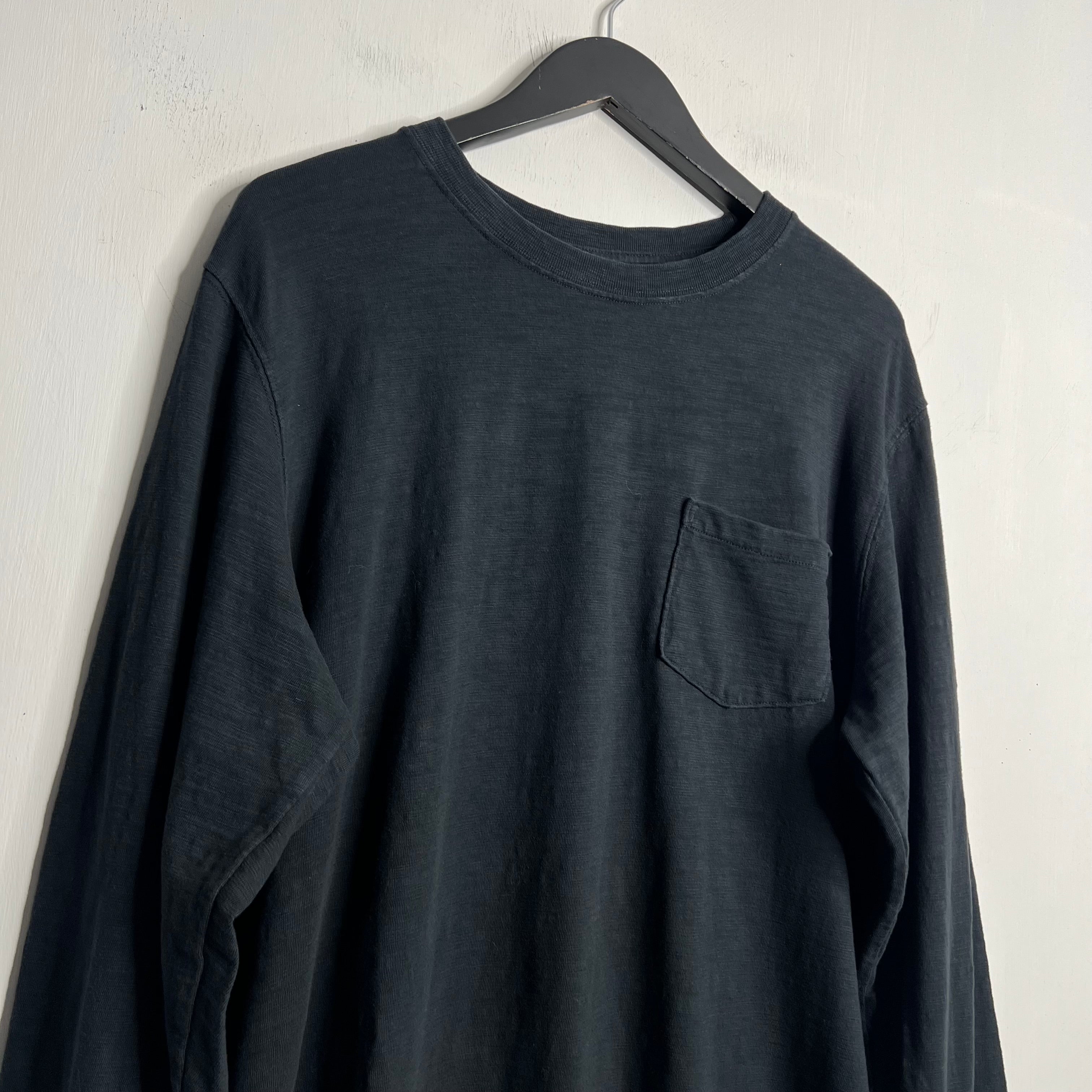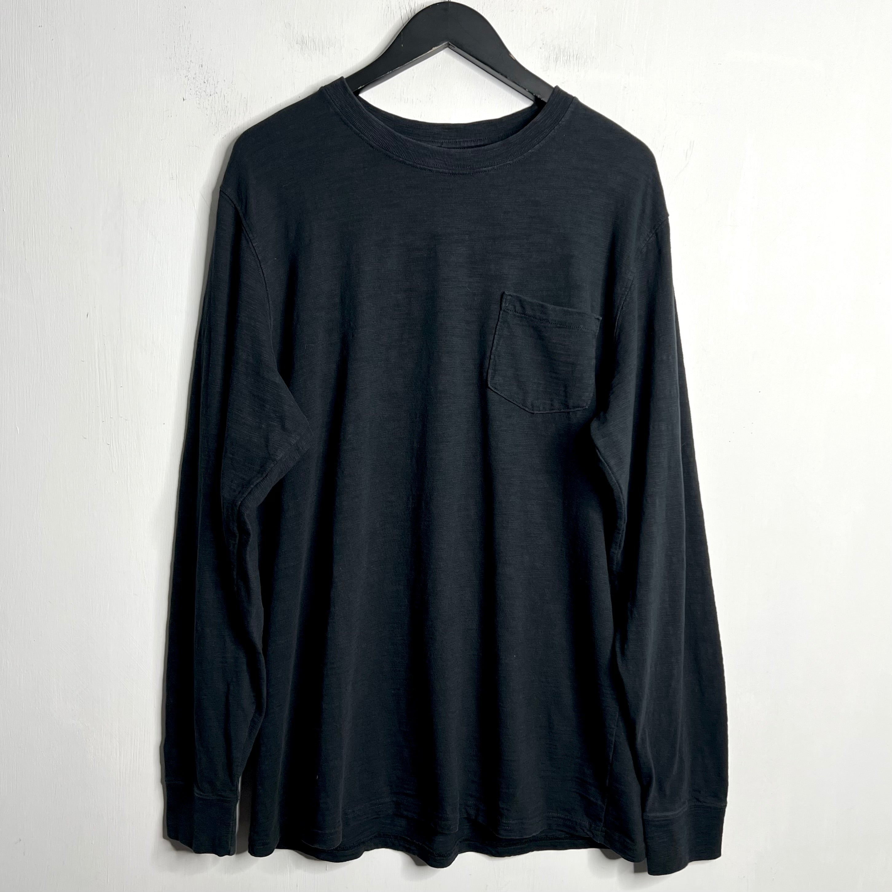 Master construction to this exceedingly rare J. Peterman Peruvian slub 1990s long sleeve pocket tee with a particularly rad fade. 24" armpit to armpit, 31" top of back collar to bottom. FOTL says L fits XL. 100% cotton. Made in Peru.