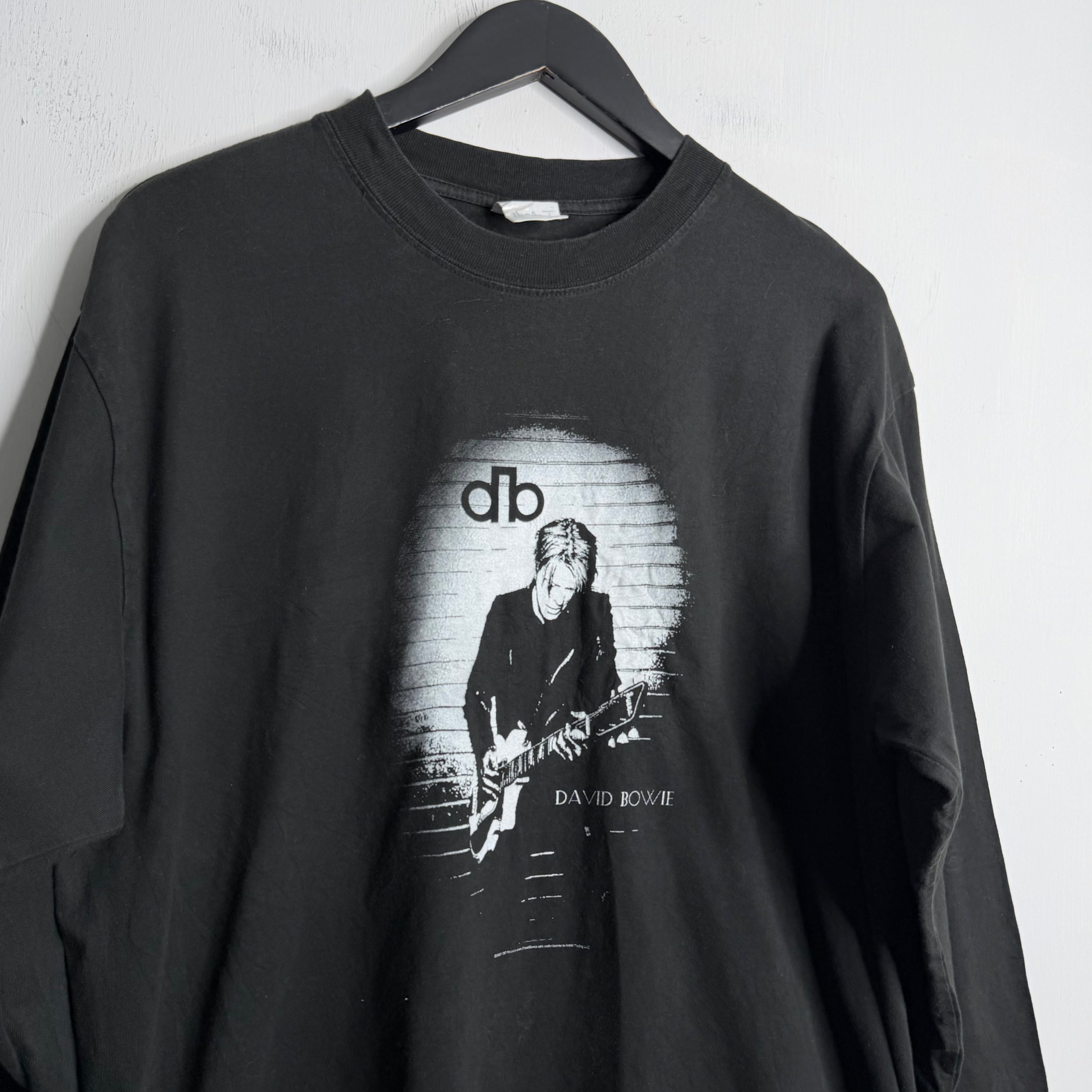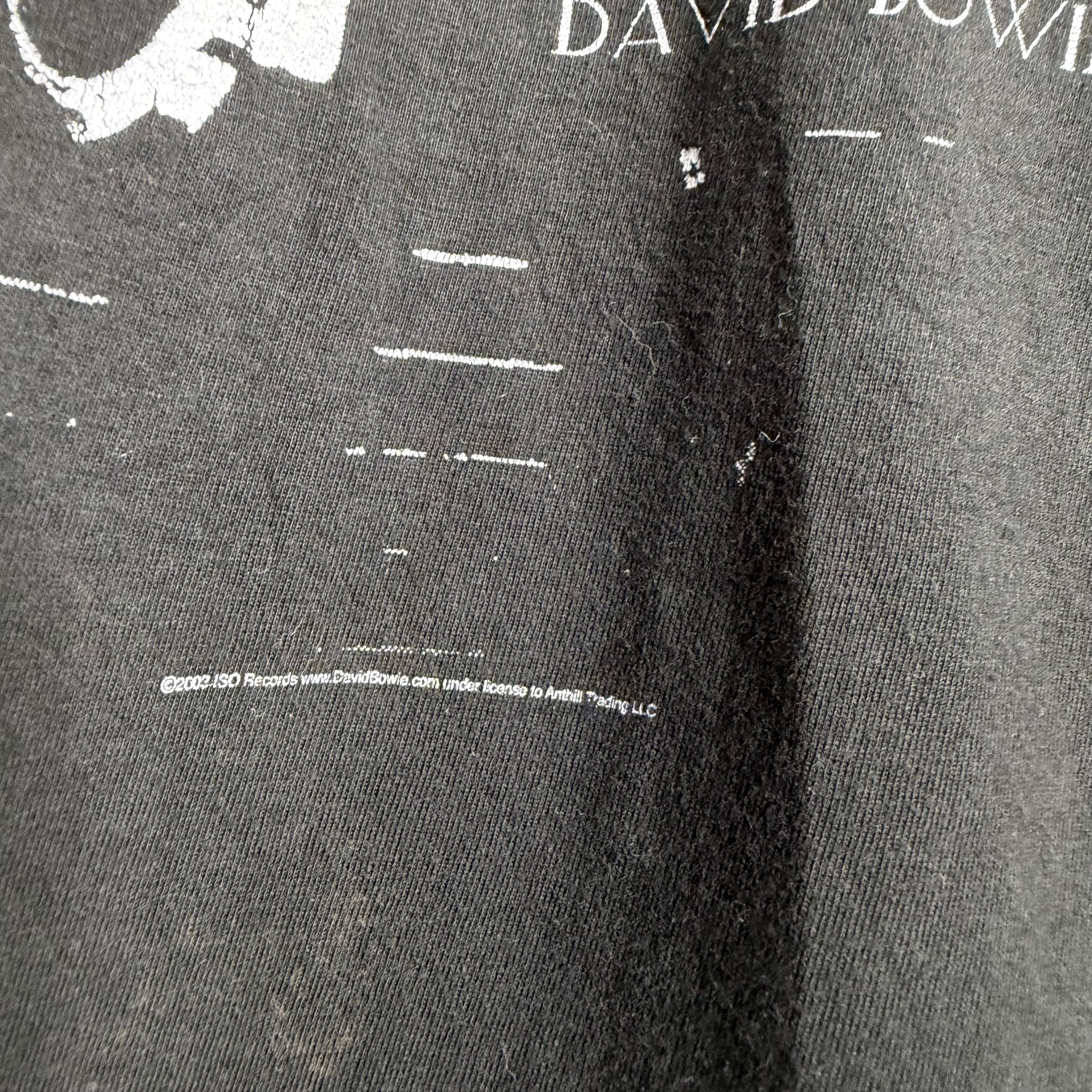 Bowie family heirloom status relic. 22" armpit to armpit, 29.5" top of back collar to bottom. Heavy-T says L, fits slightly big. 100% cotton. Made in Europe.
