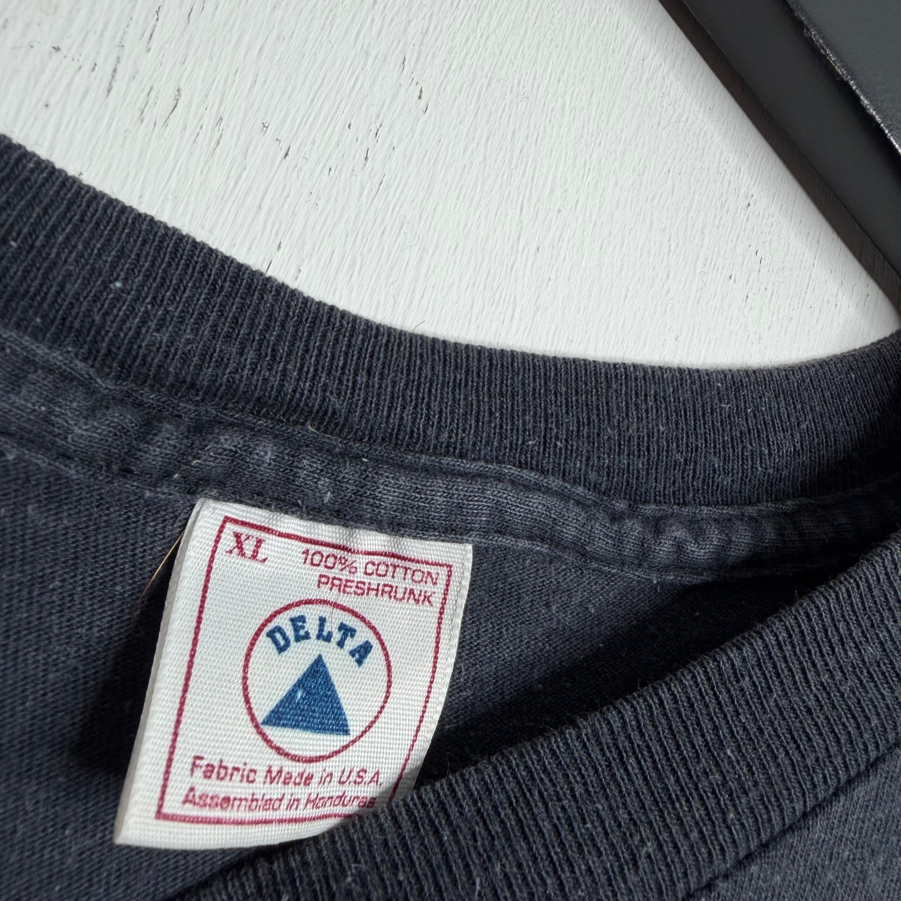 Yacht Rock wearable. 25" armpit to armpit, 29.5" top of back collar to bottom. Delta says XL, fits slightly big. 100% cotton. Made in the USA.