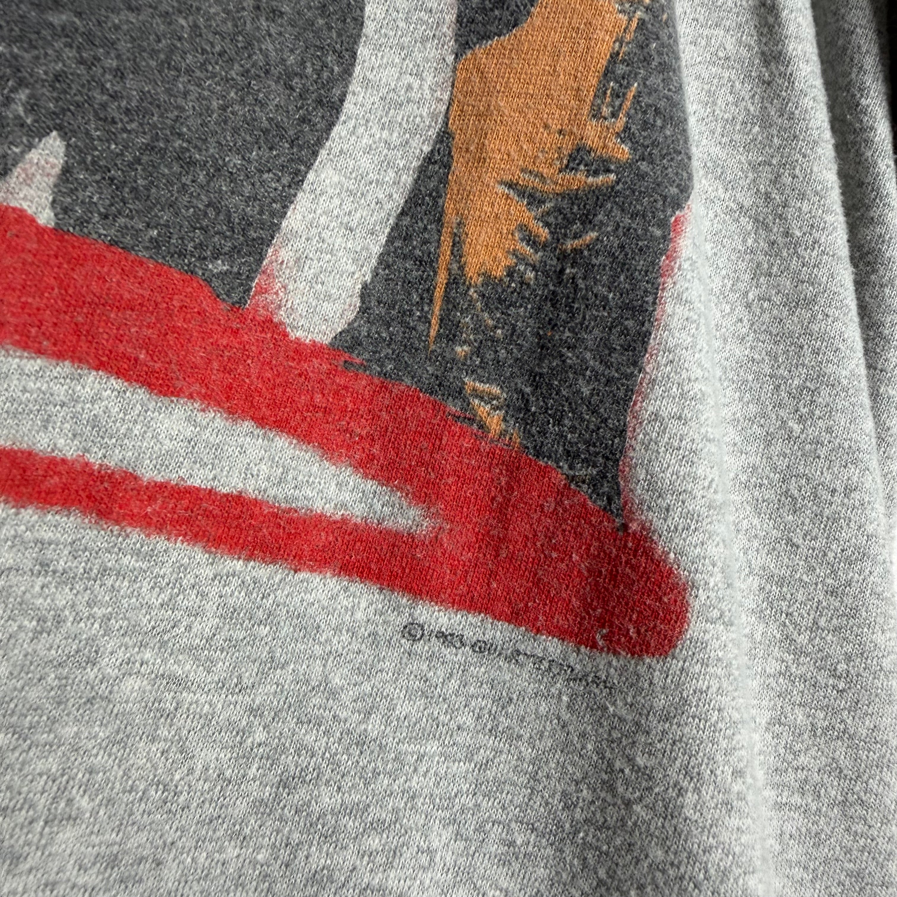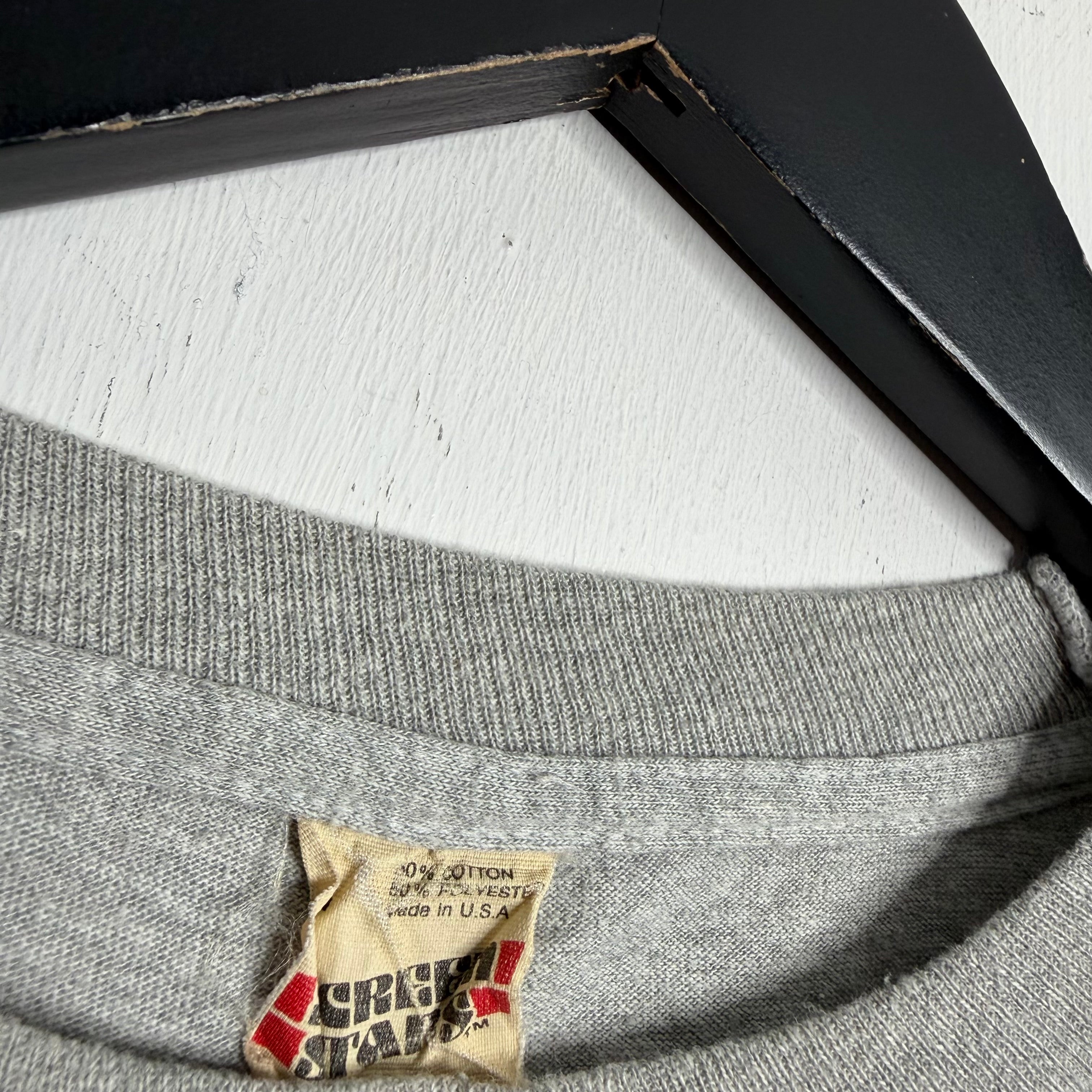 80s AF. 20" armpit to armpit, 28" top of back collar to bottom. Screen Stars says L, fits M. 50% cotton/50% polyester. Made in the USA.