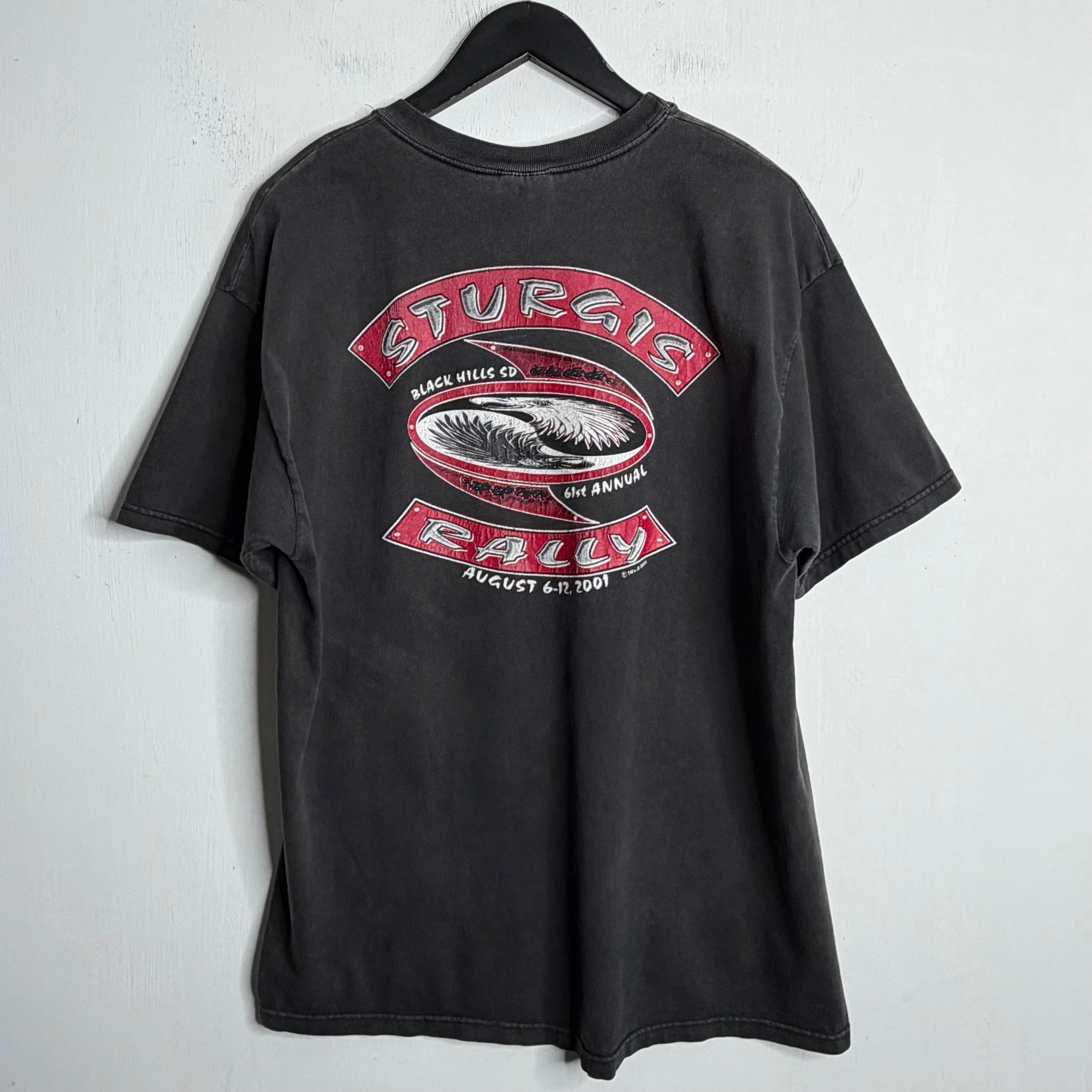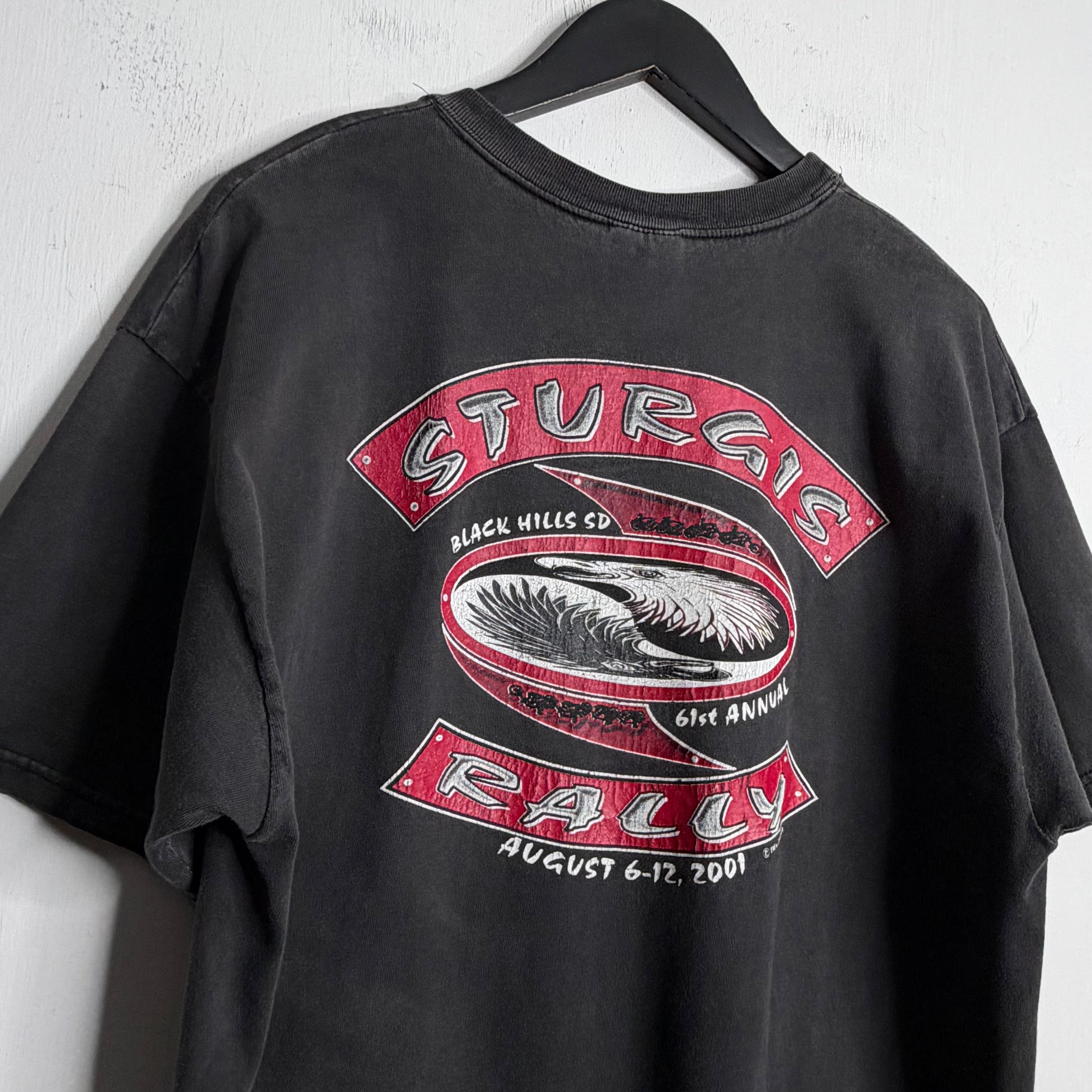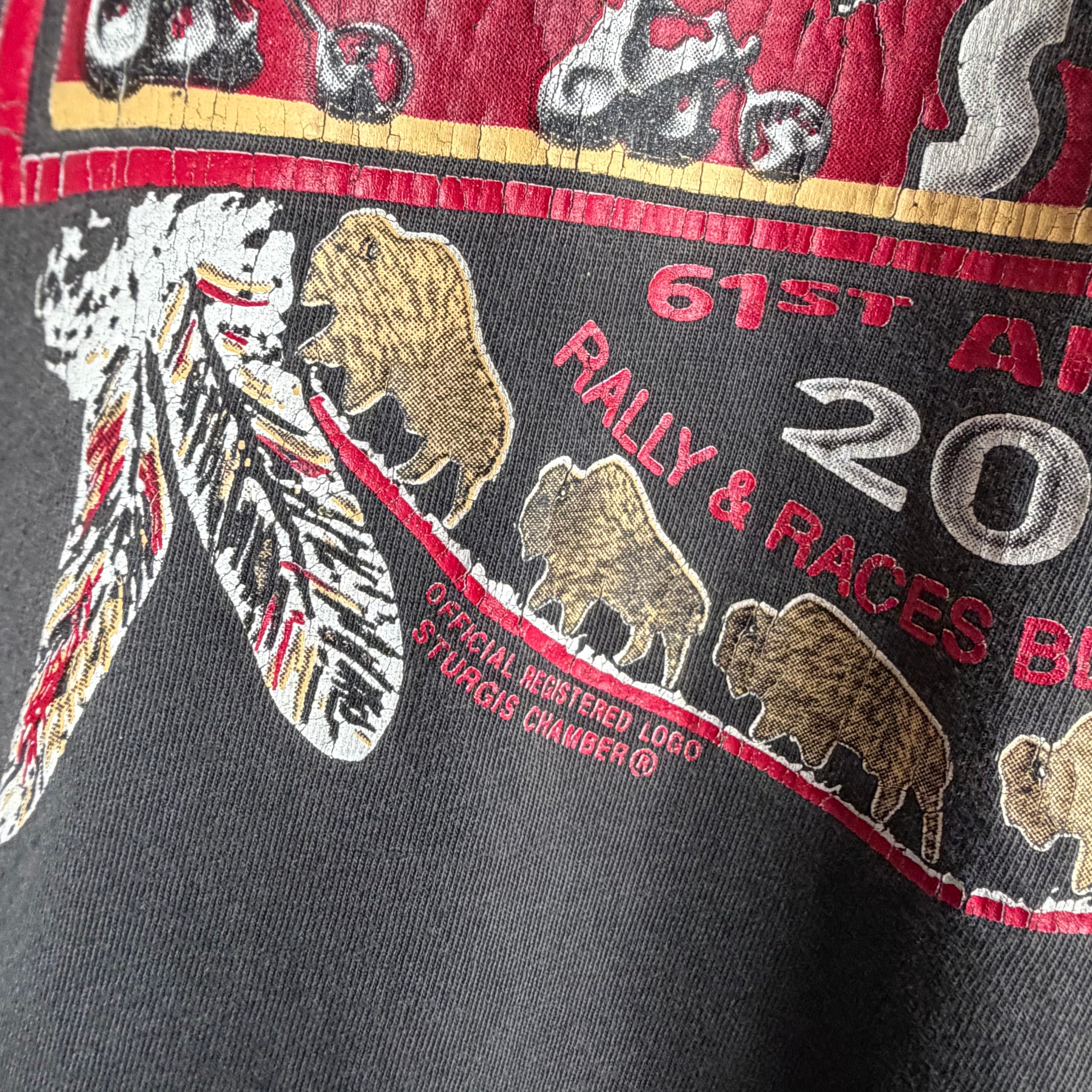 61st annual.. 22.5" armpit to armpit, 29" top of back collar to bottom. Hanes says L, fits big. 100% cotton. Made in the USA.