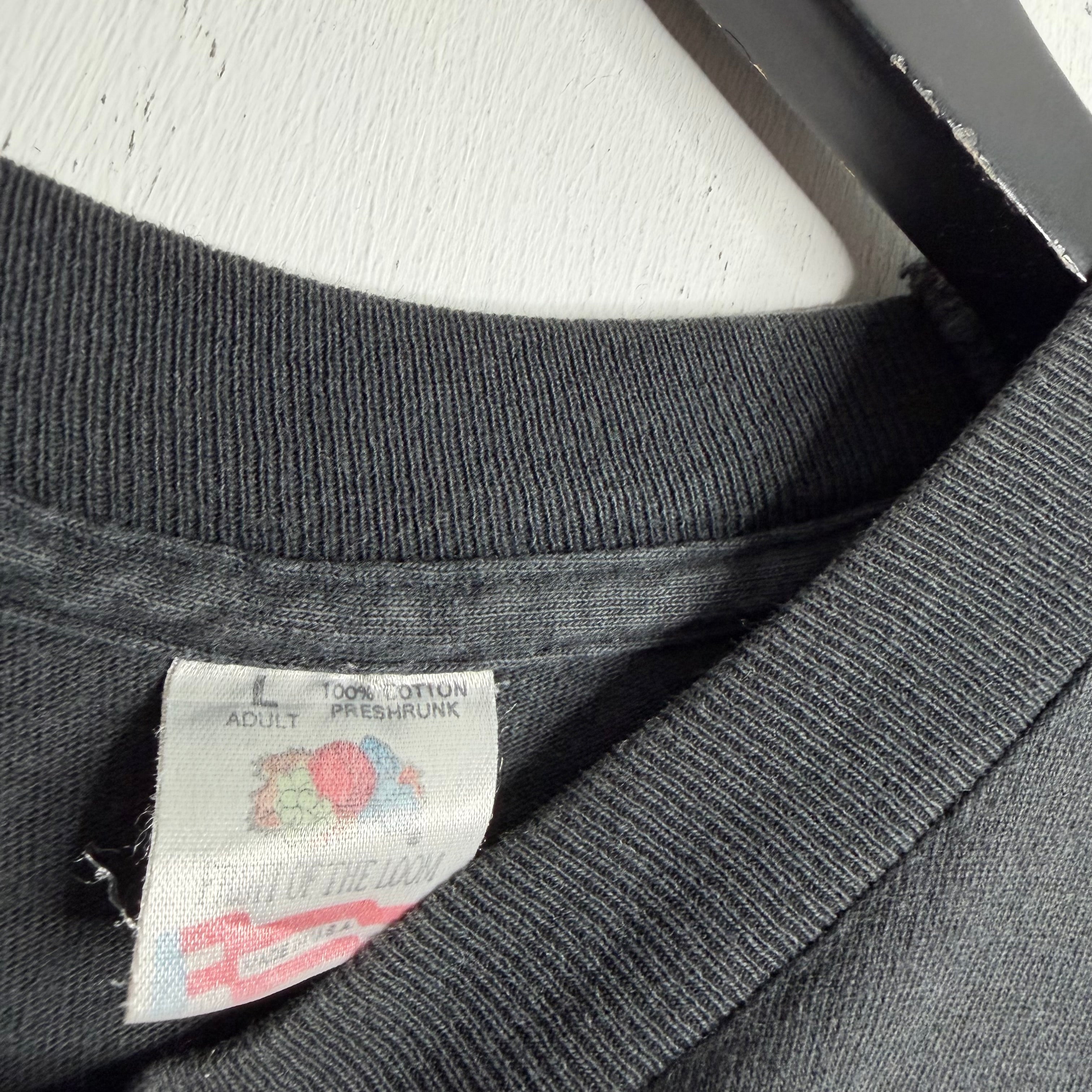 Willie masterpiece. 22" armpit to armpit, 31" top of back collar to bottom. Fruit Of The Loom says L, fits long and narrow. 100% cotton. Made in the USA.