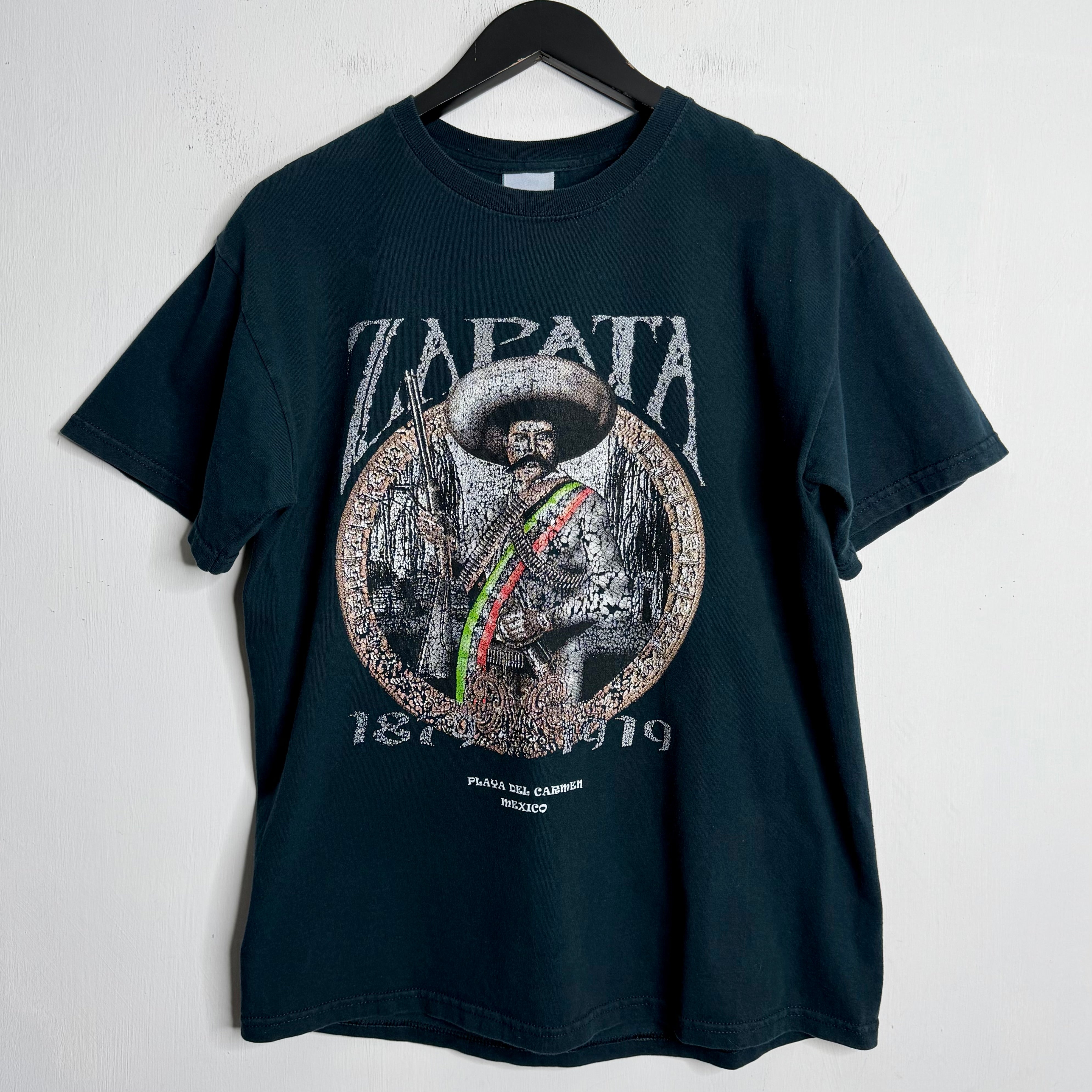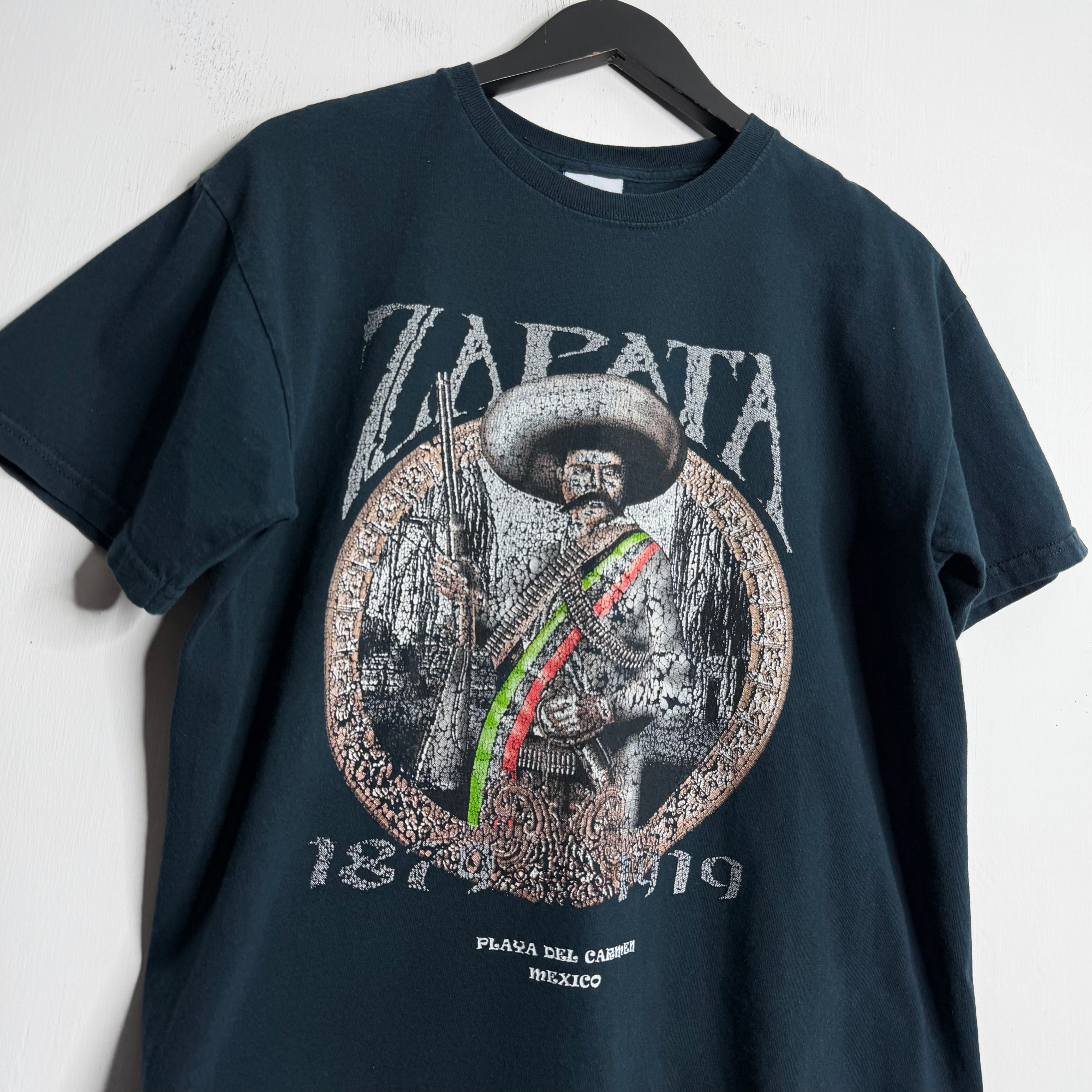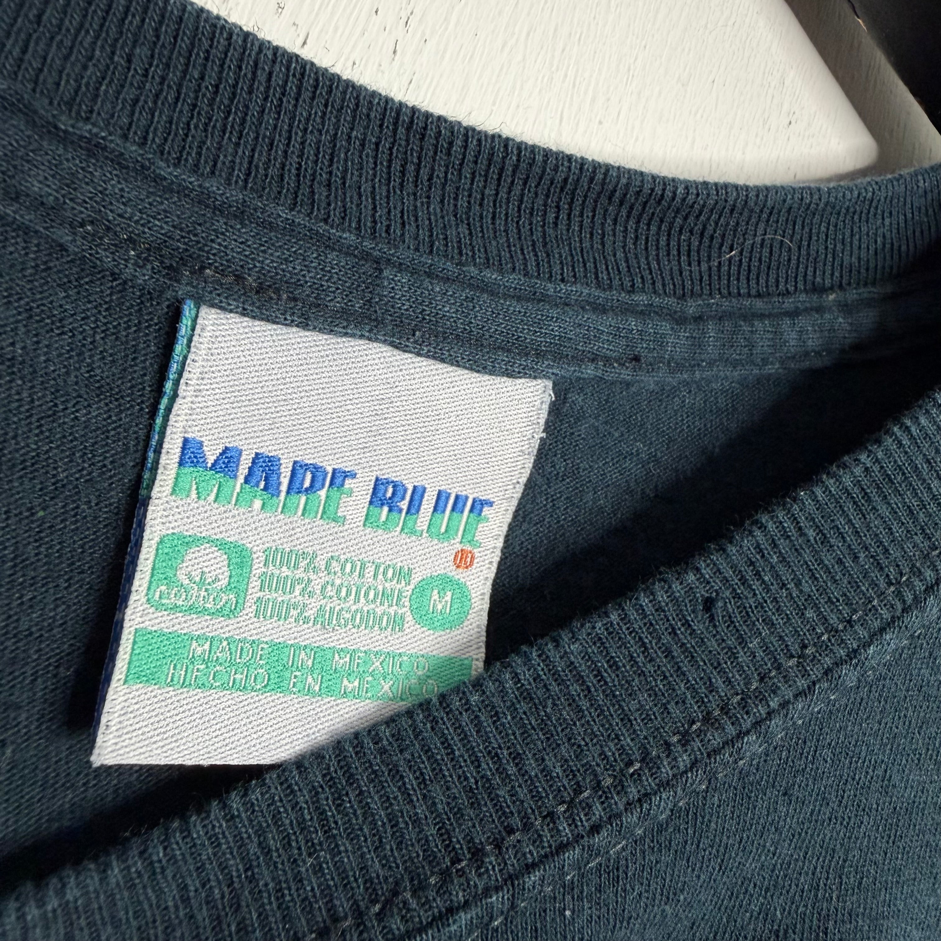 "..We make our tortillas with corn, not patience". 21" armpit to armpit, 27" top of back collar to bottom. Mare Blue says M. 100% cotton. Made in Mexico.