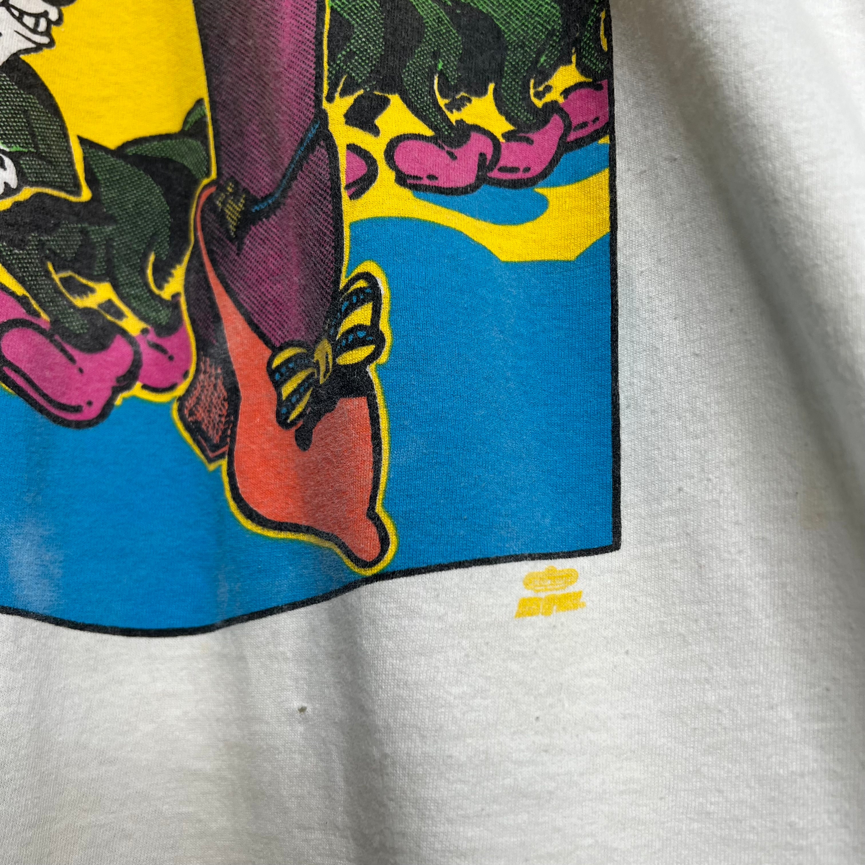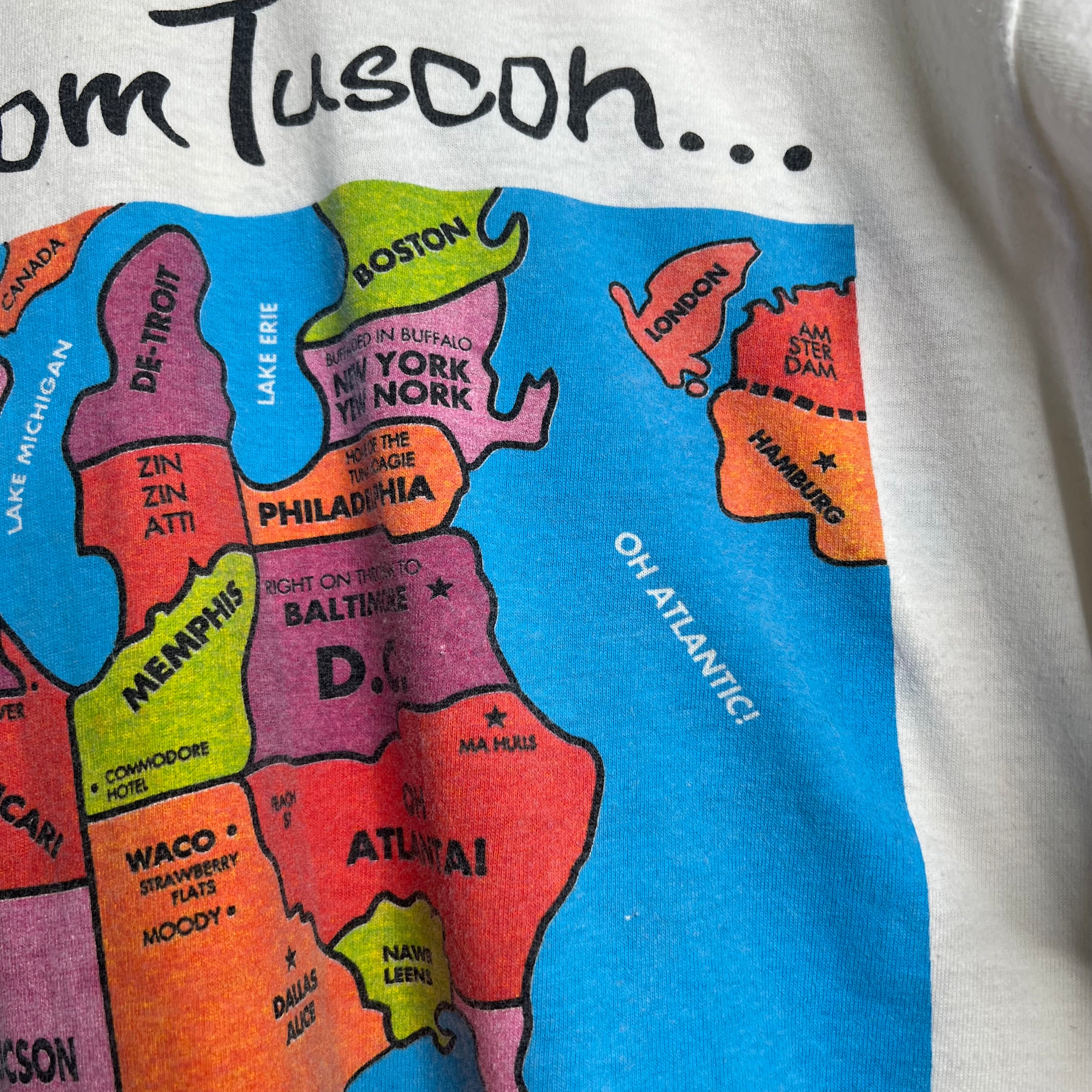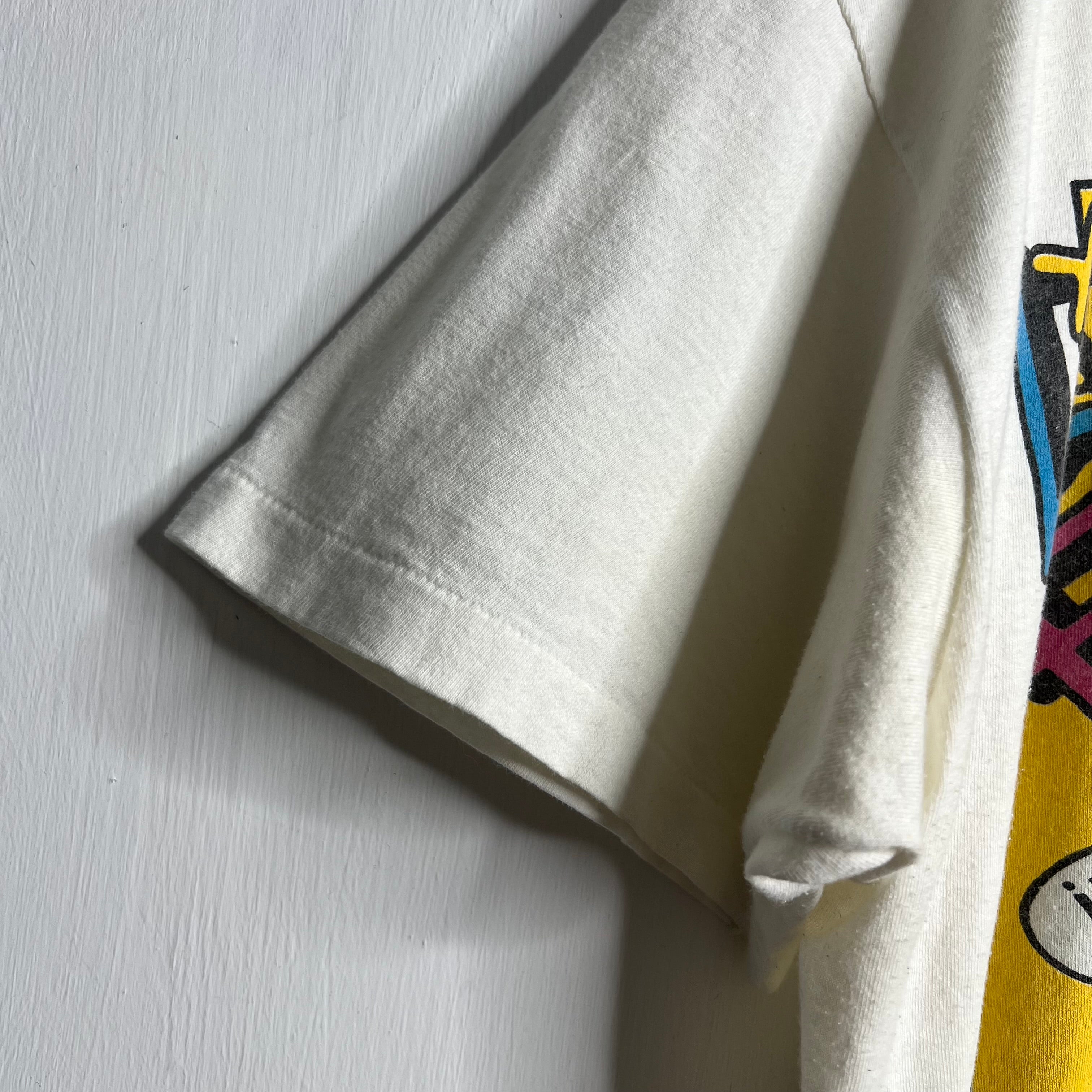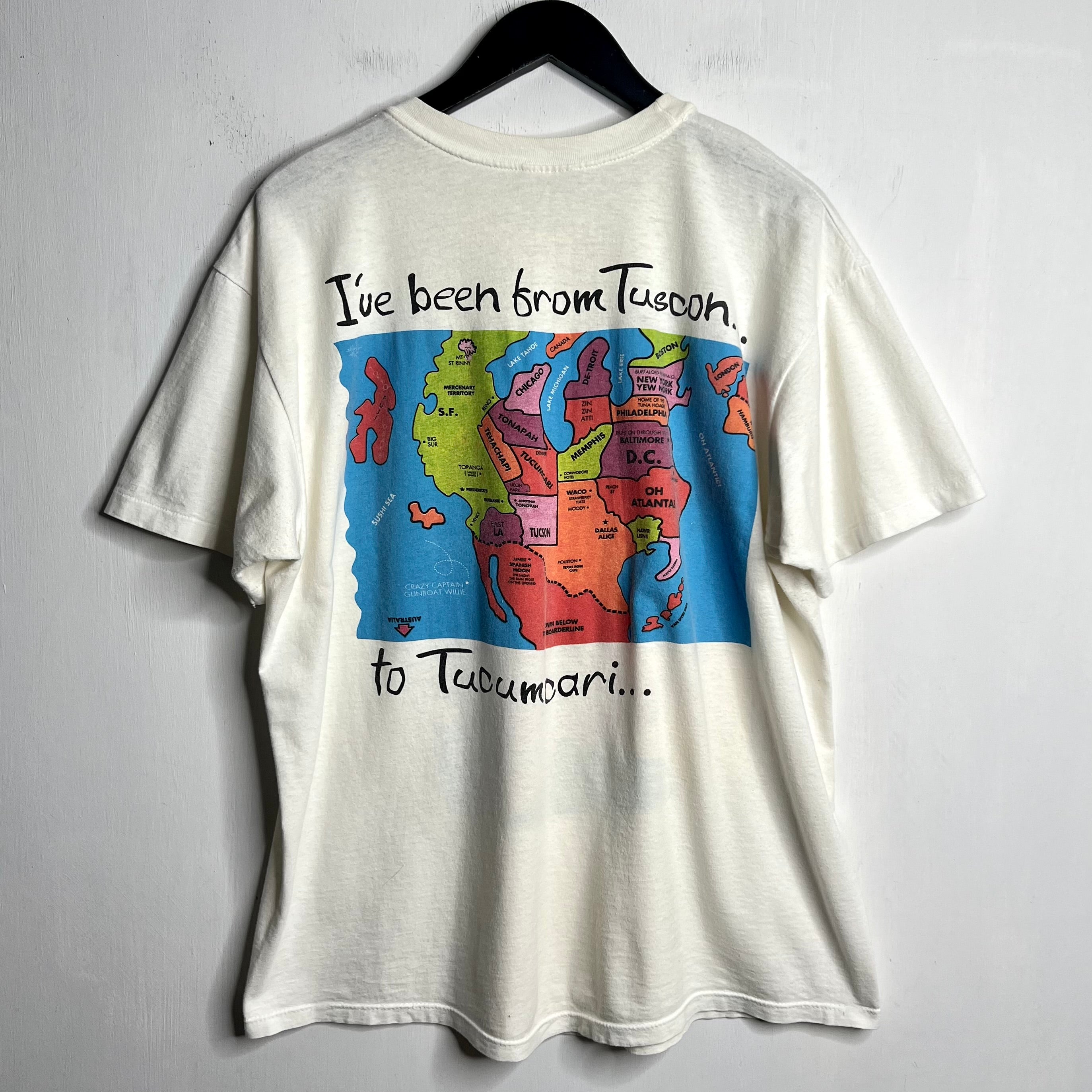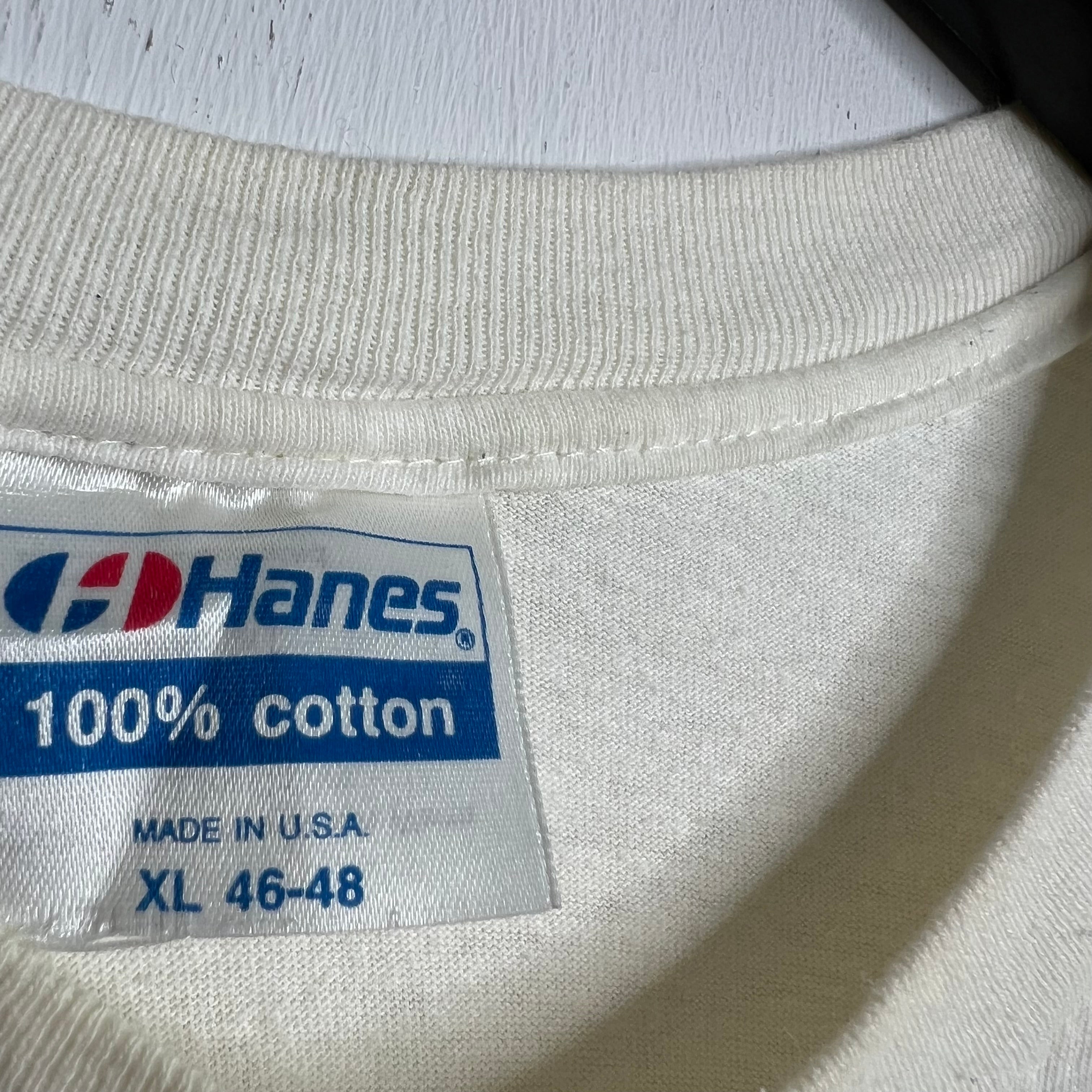 Weed, whites and wine.. 24" armpit to armpit, 28" top of back collar to bottom. Hanes says XL, fits slightly short. 100% cotton. Made in the USA.