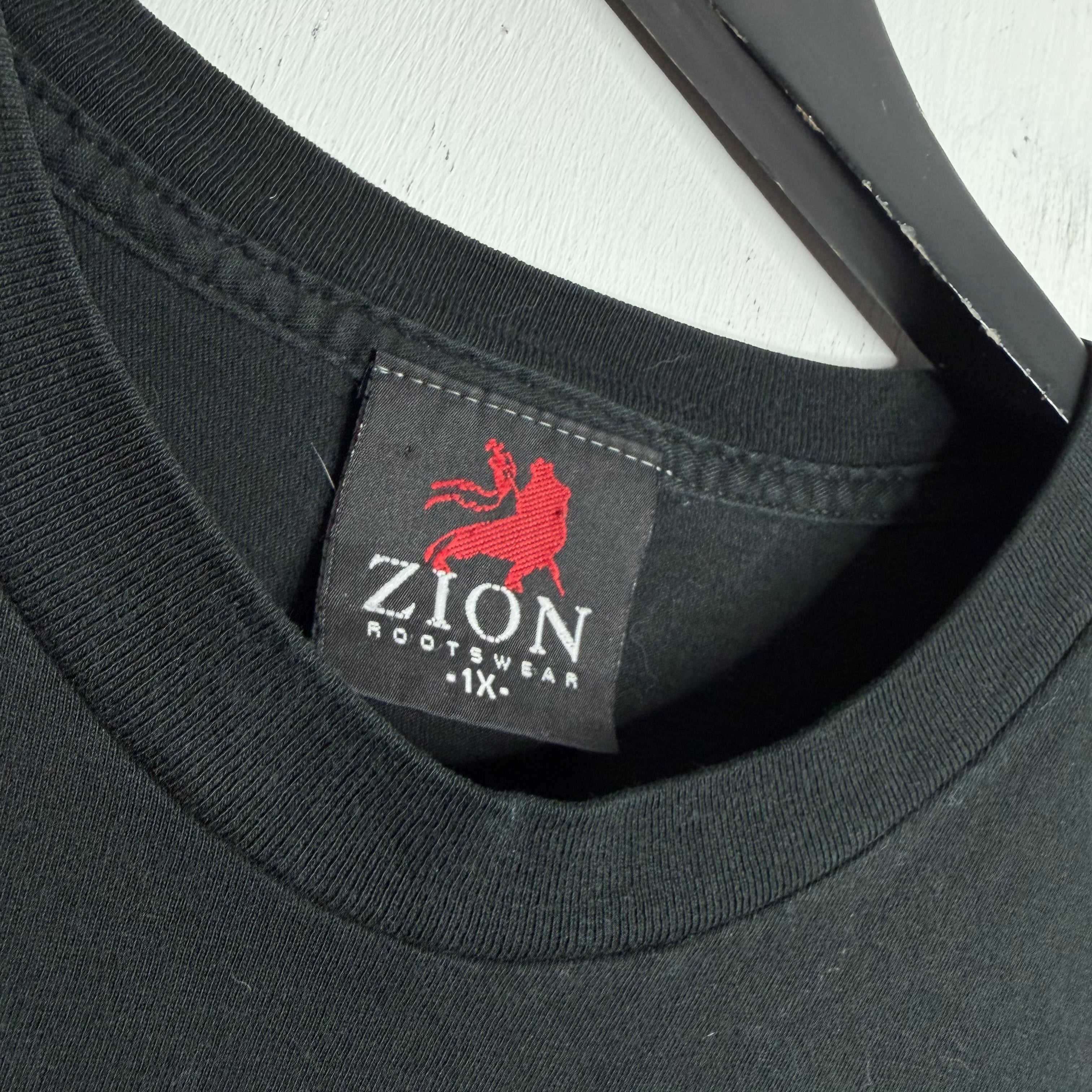 Miles runs the voodoo down. 23.5” armpit to armpit, 30" top of back collar to bottom. Zion says 1X. 100% cotton. Made in the USA.