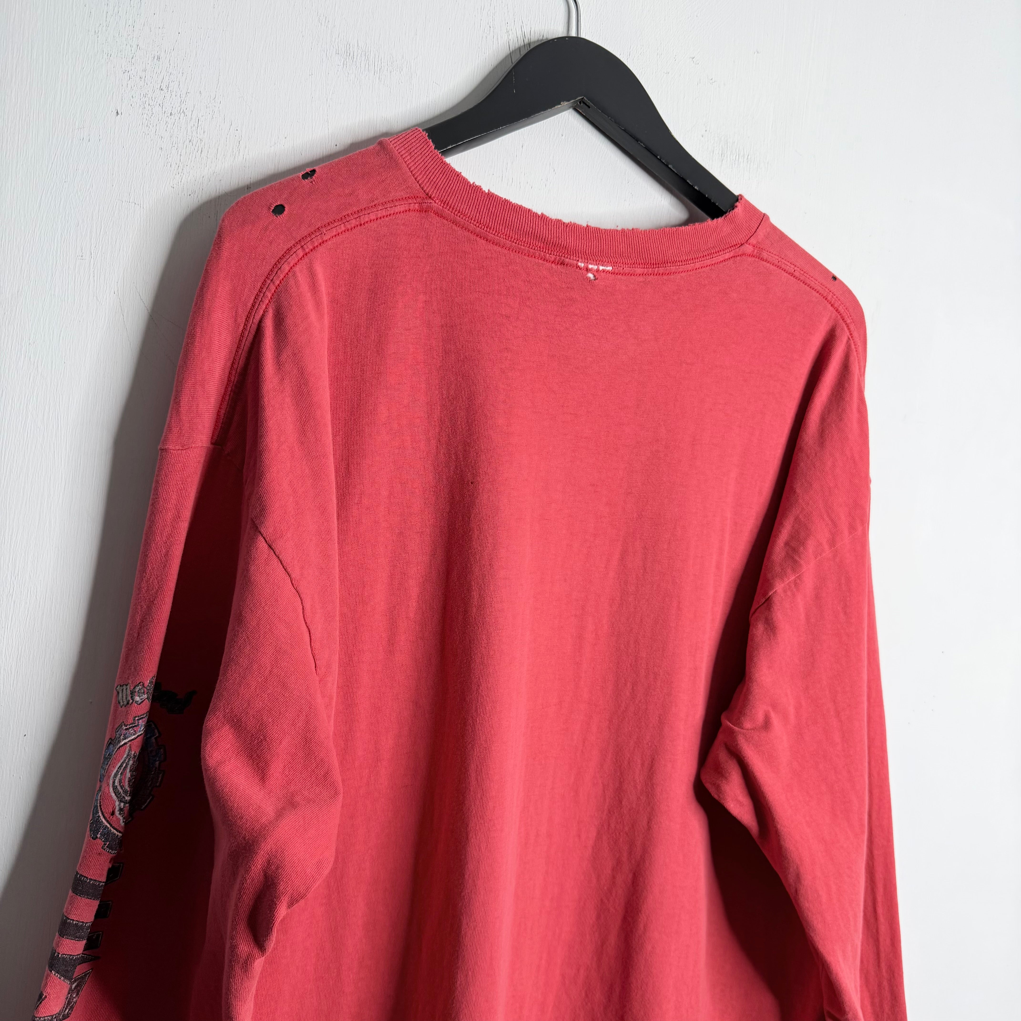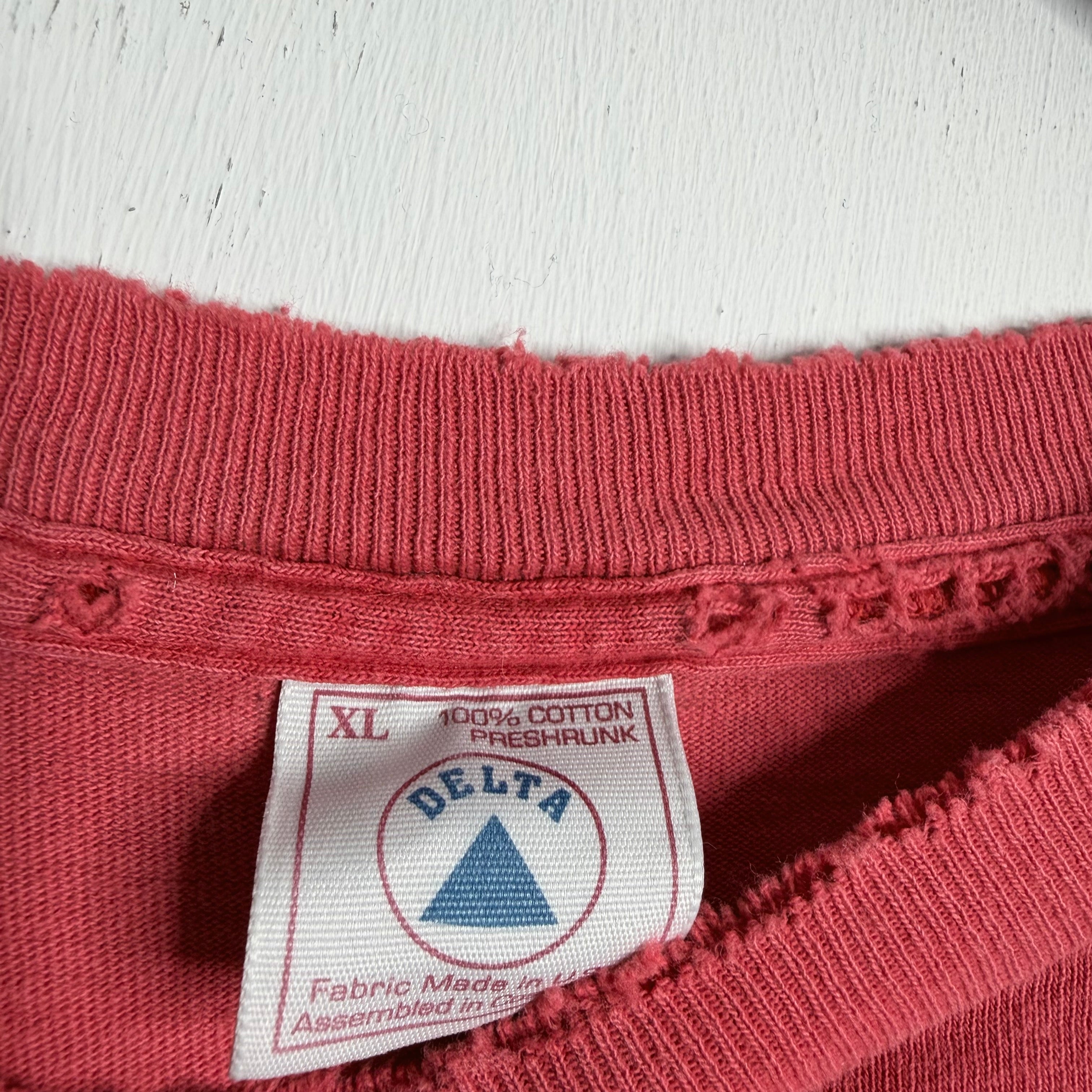 All killer, no filler. 25" armpit to armpit and 31" top of back collar to bottom. Delta says XL, fits big. 100% cotton. Made in the USA.