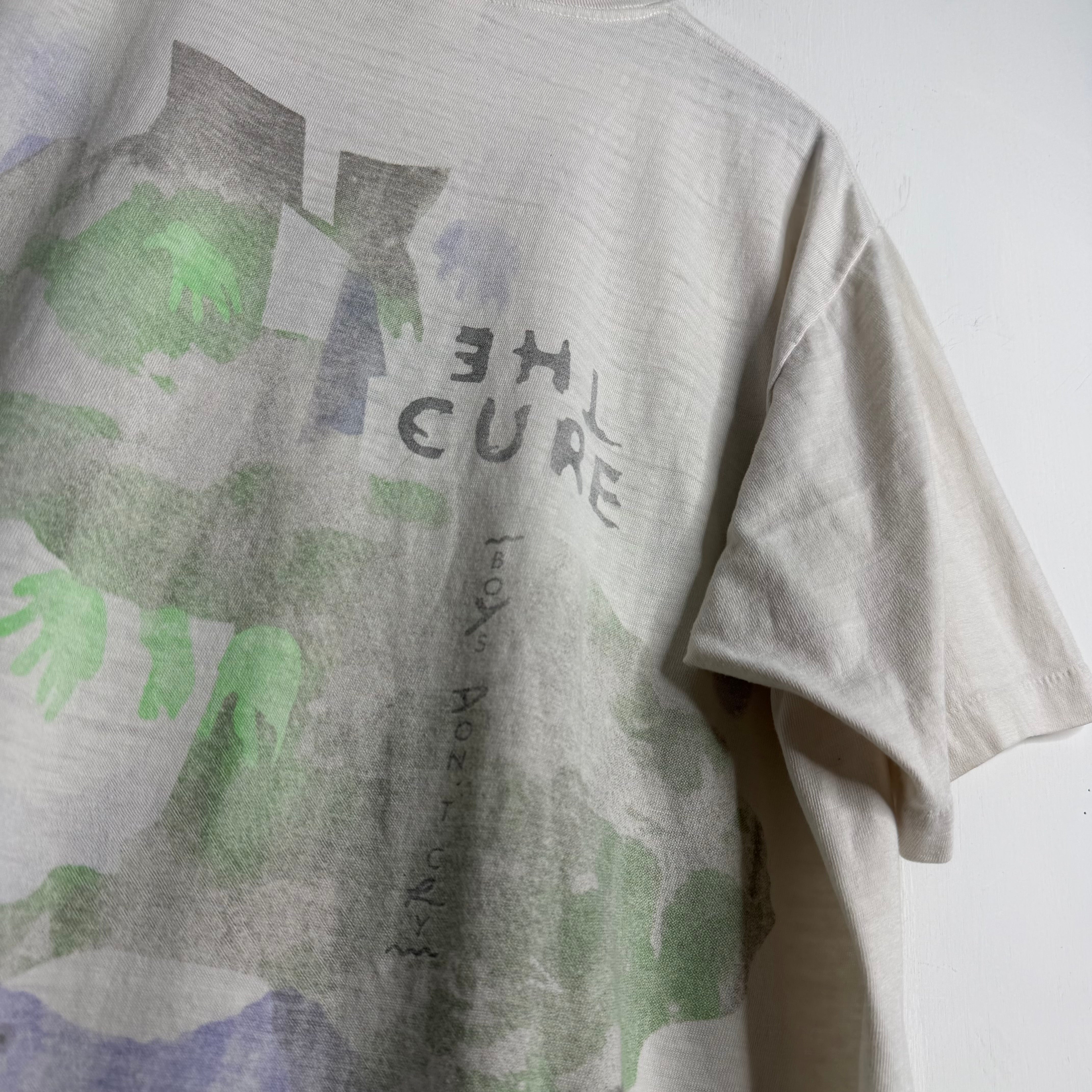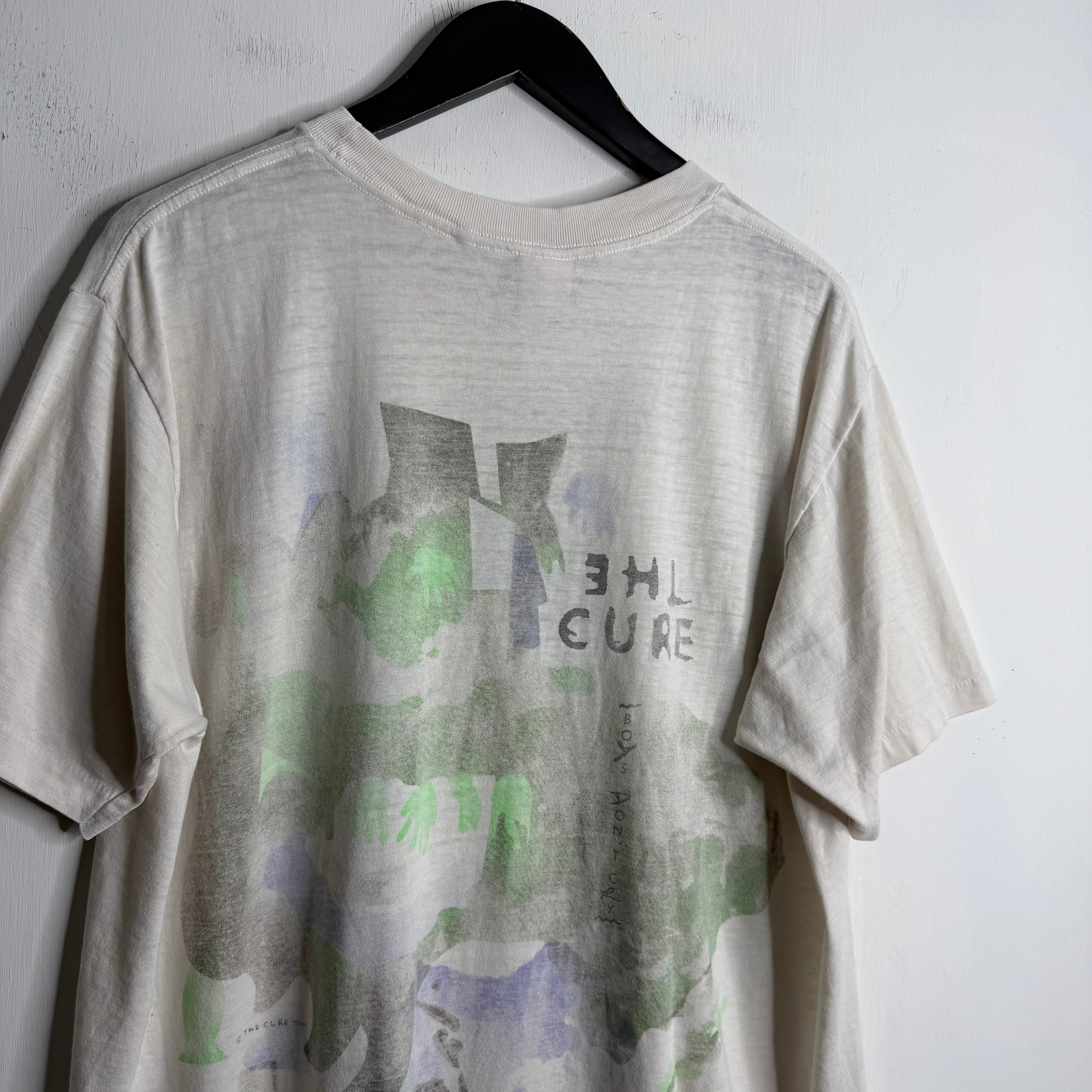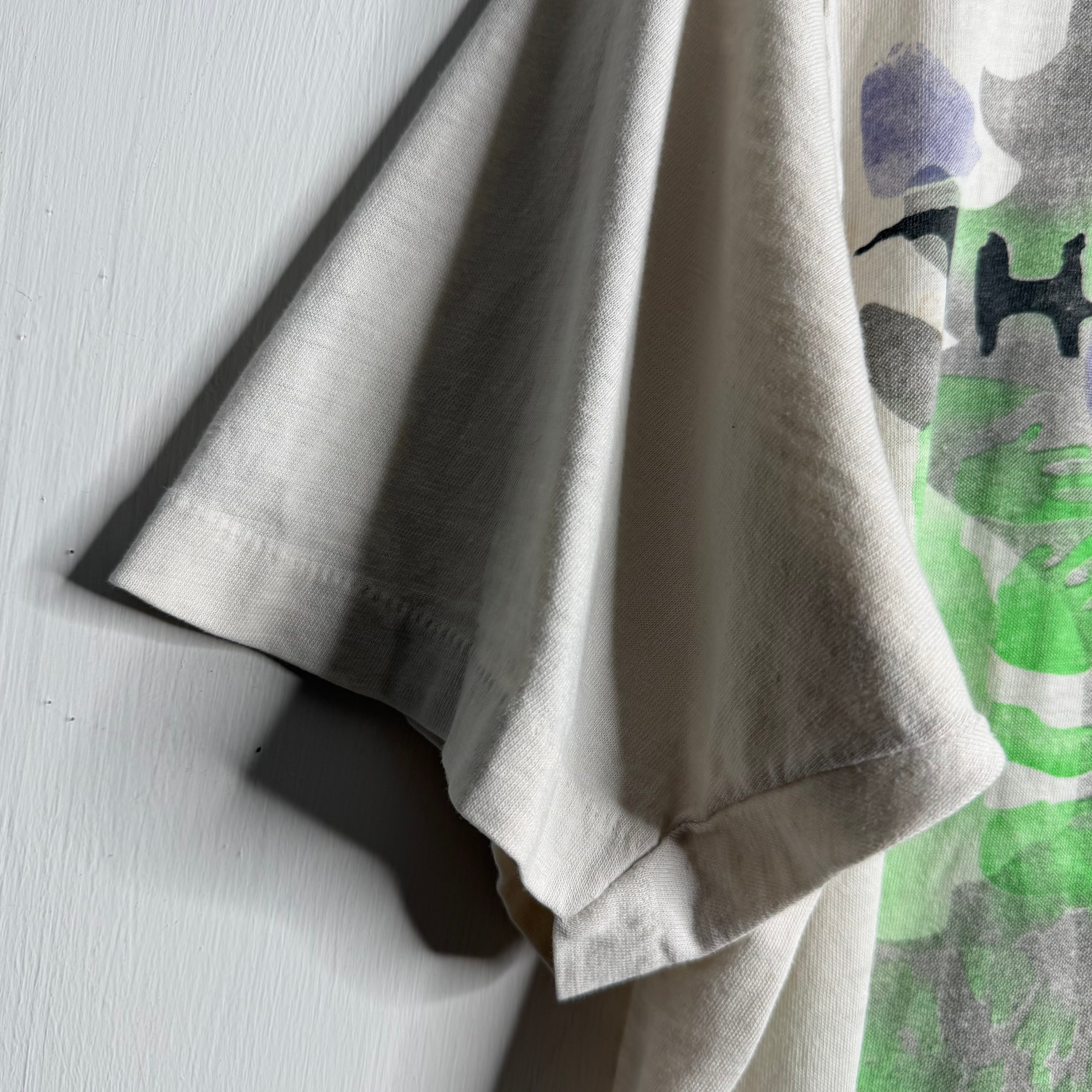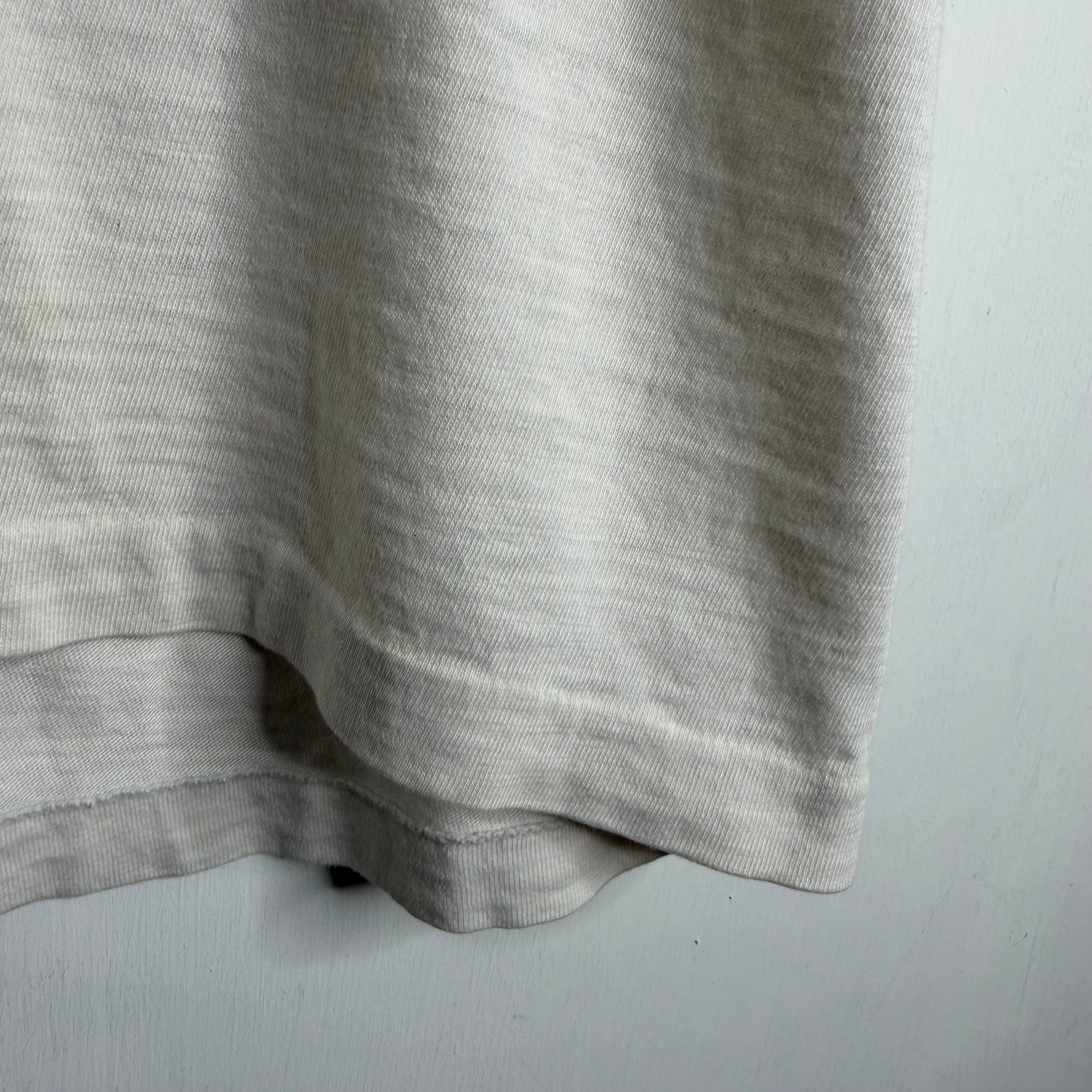 O.G. version of this one is killingly thin and supremely wearable. 25" armpit to armpit, 31" top of back collar to bottom. Signal Mega-Tee says XXL. 50% cotton/50% polyester. Made in the USA.