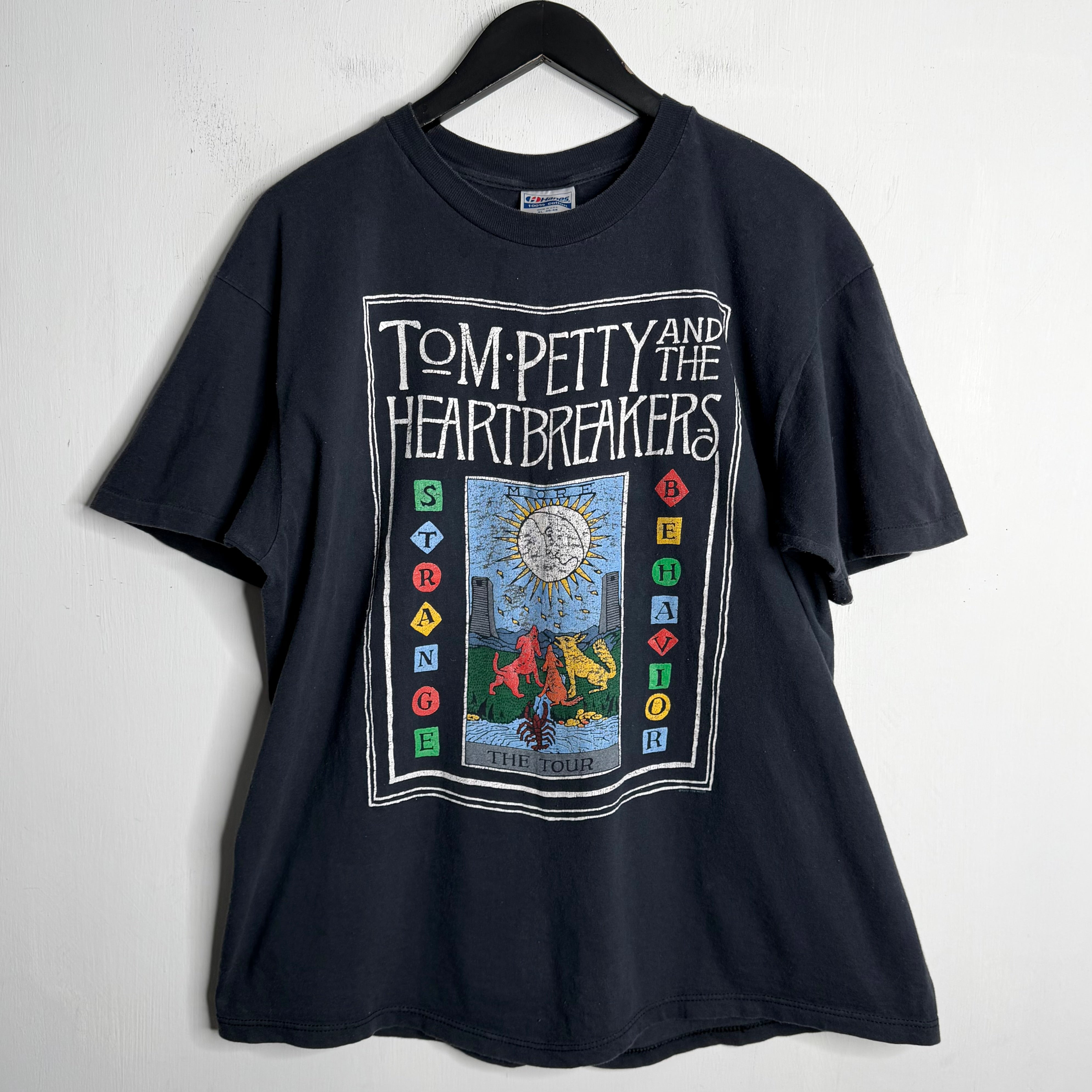Full Moon Fever solo tour but with the Heartbreakers and a rare no tour dates back hit version. 24" armpit to armpit, 28.5" top of back collar to bottom. Hanes says XL. 100% cotton. Made in the USA.