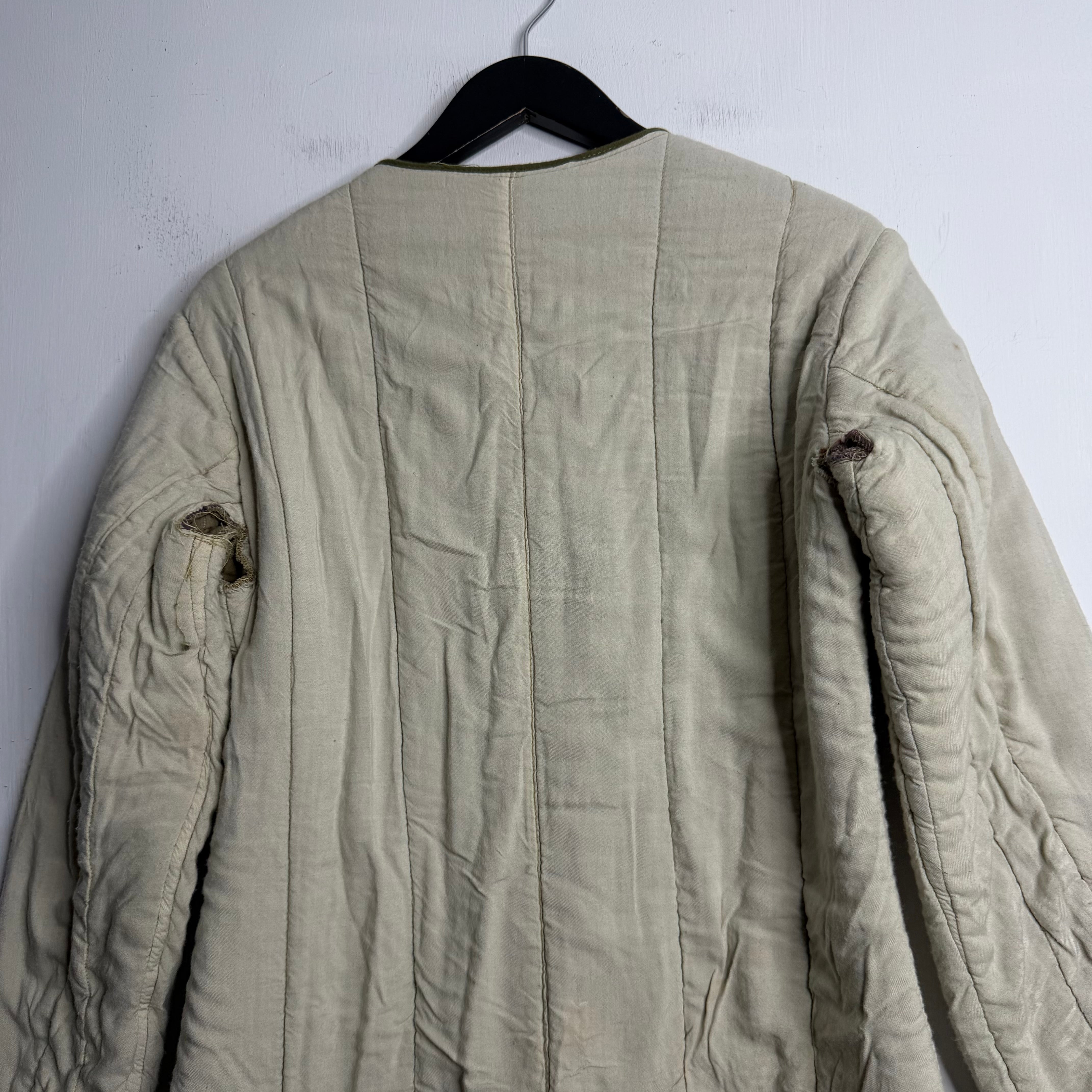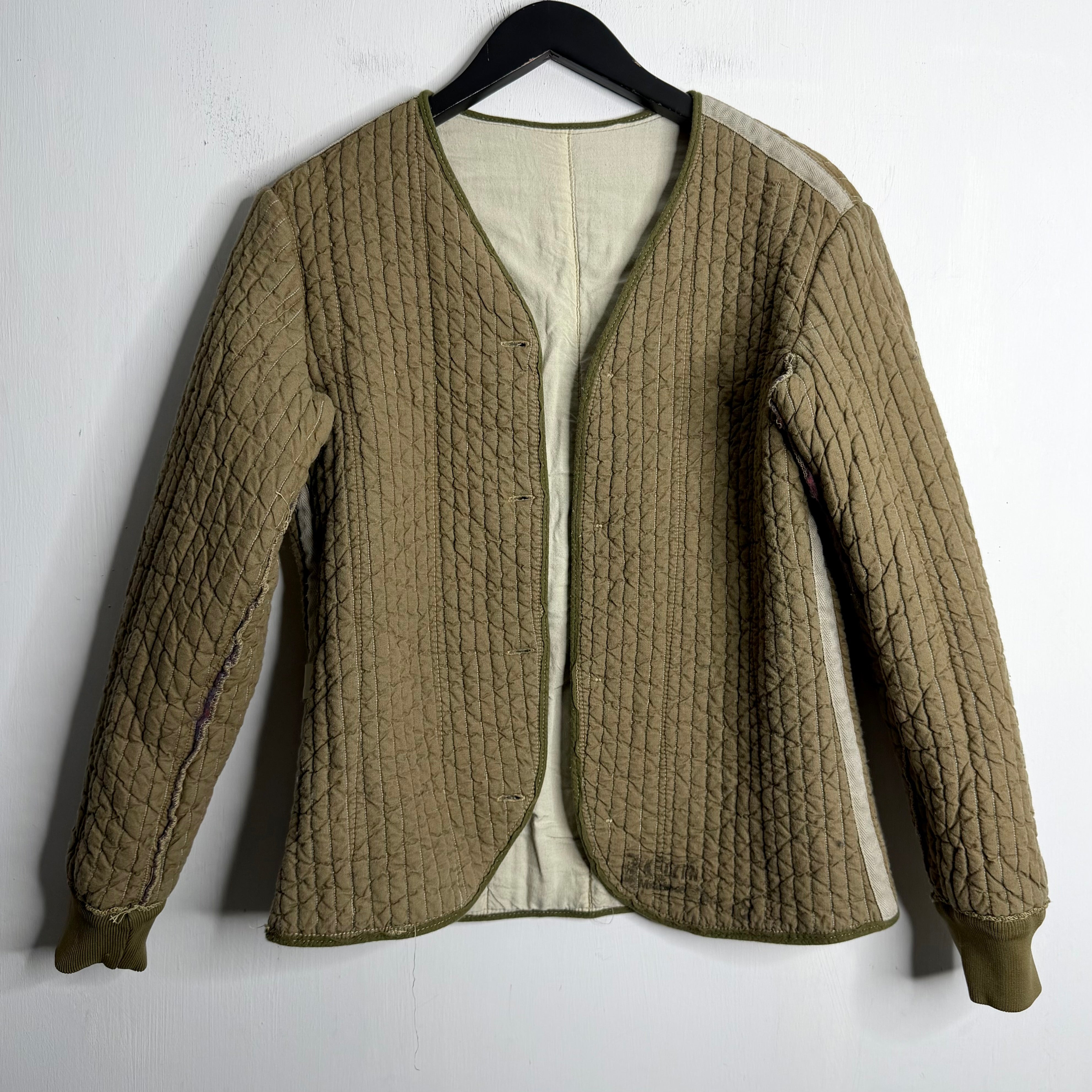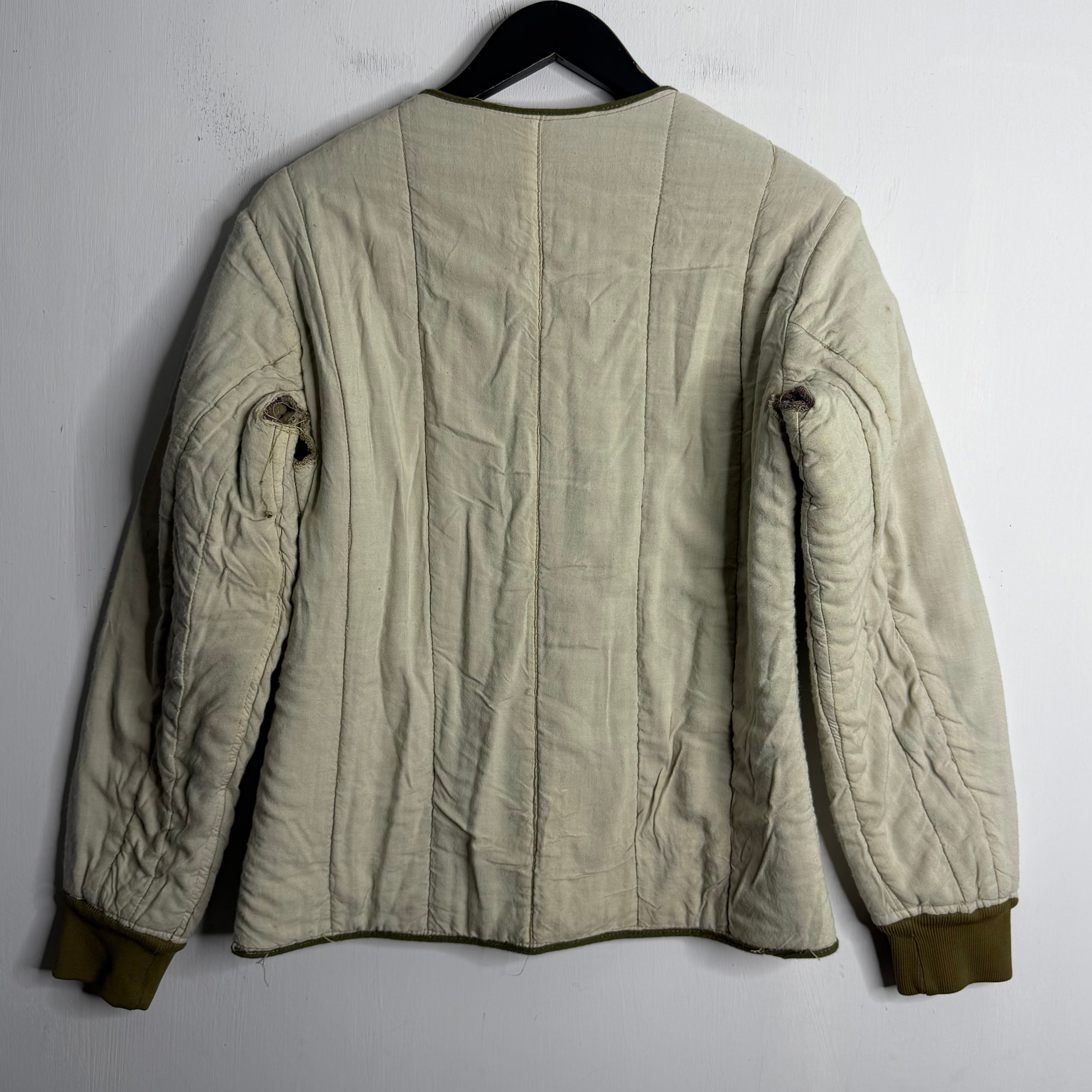 Reversible, 2 jackets-in-one Cold-war relic from behind the Iron Curtain keeps you warm. 19" armpit to armpit, 24.5" top of back collar to bottom, 16" across shoulders, 18.5" underarm inseam, 23" top of sleeve inseam. S/M. 100% cotton. Made in Eastern Europe.