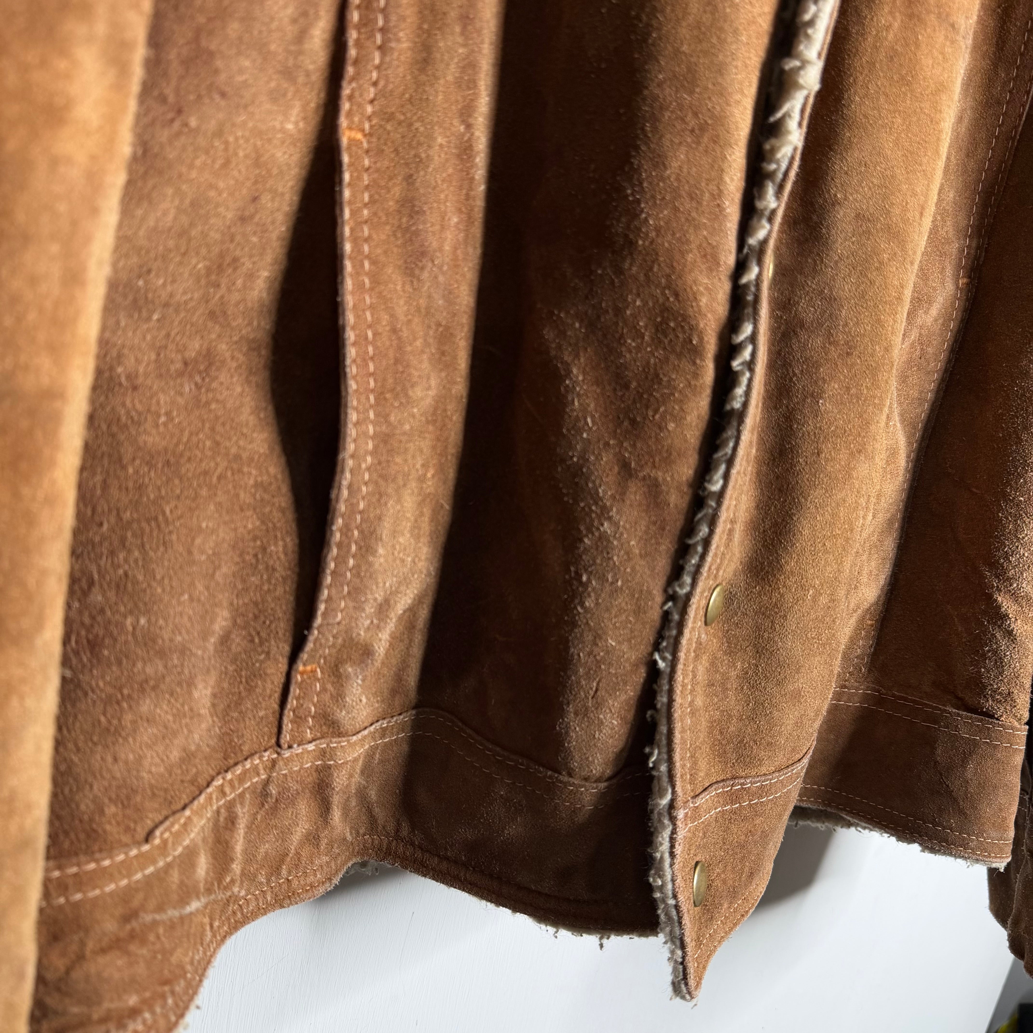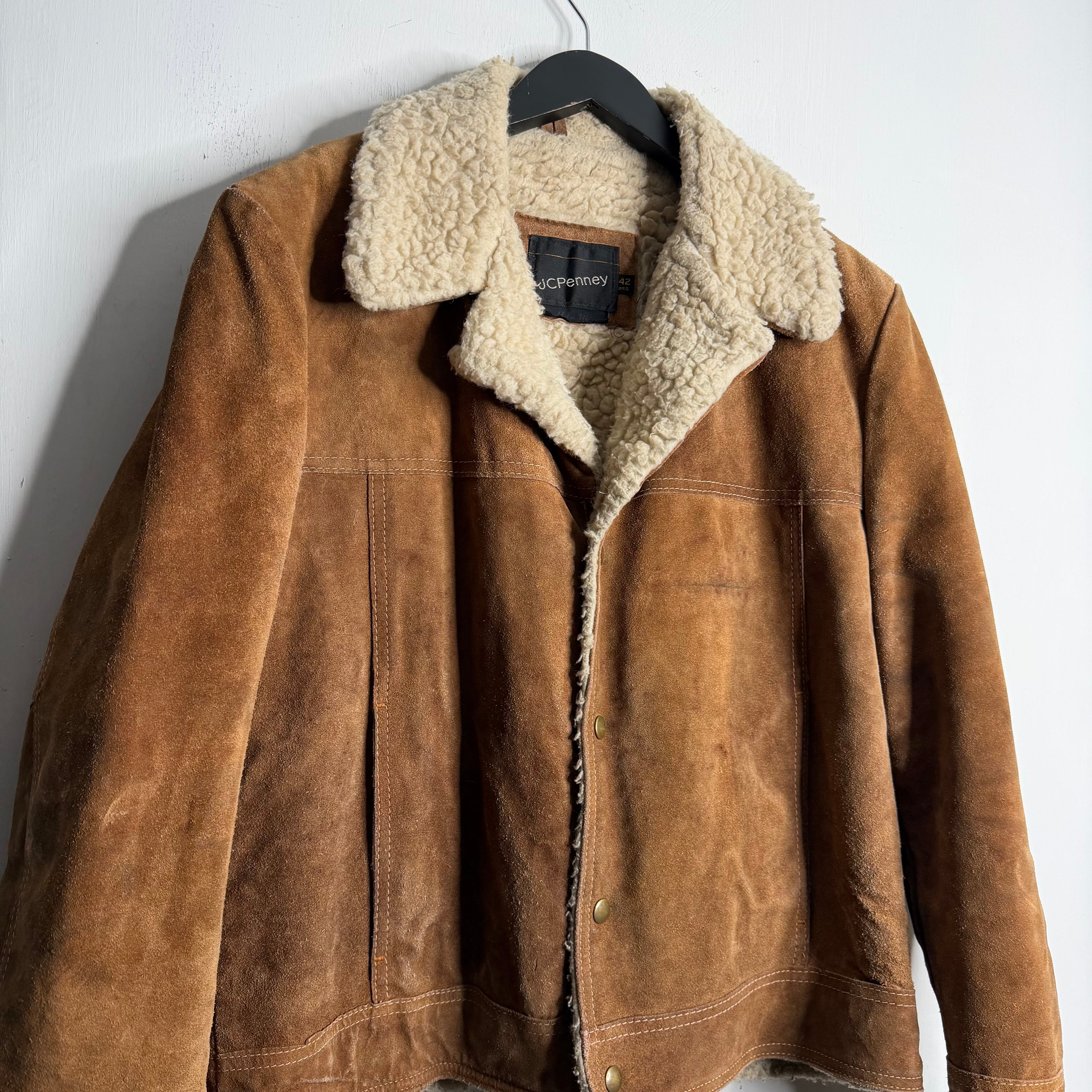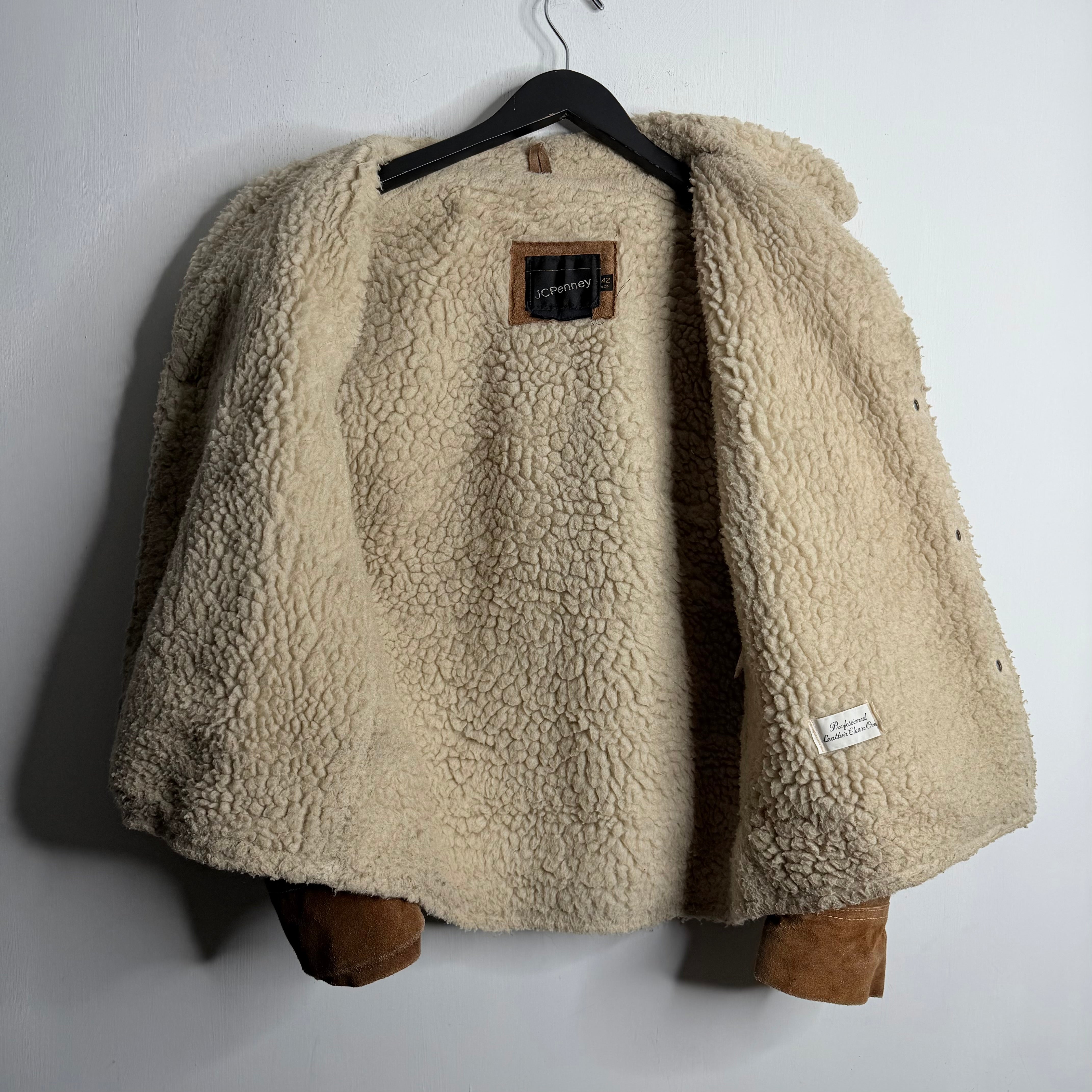JCPenney Tan Suede Shearling-Lined Jacket - 1980s