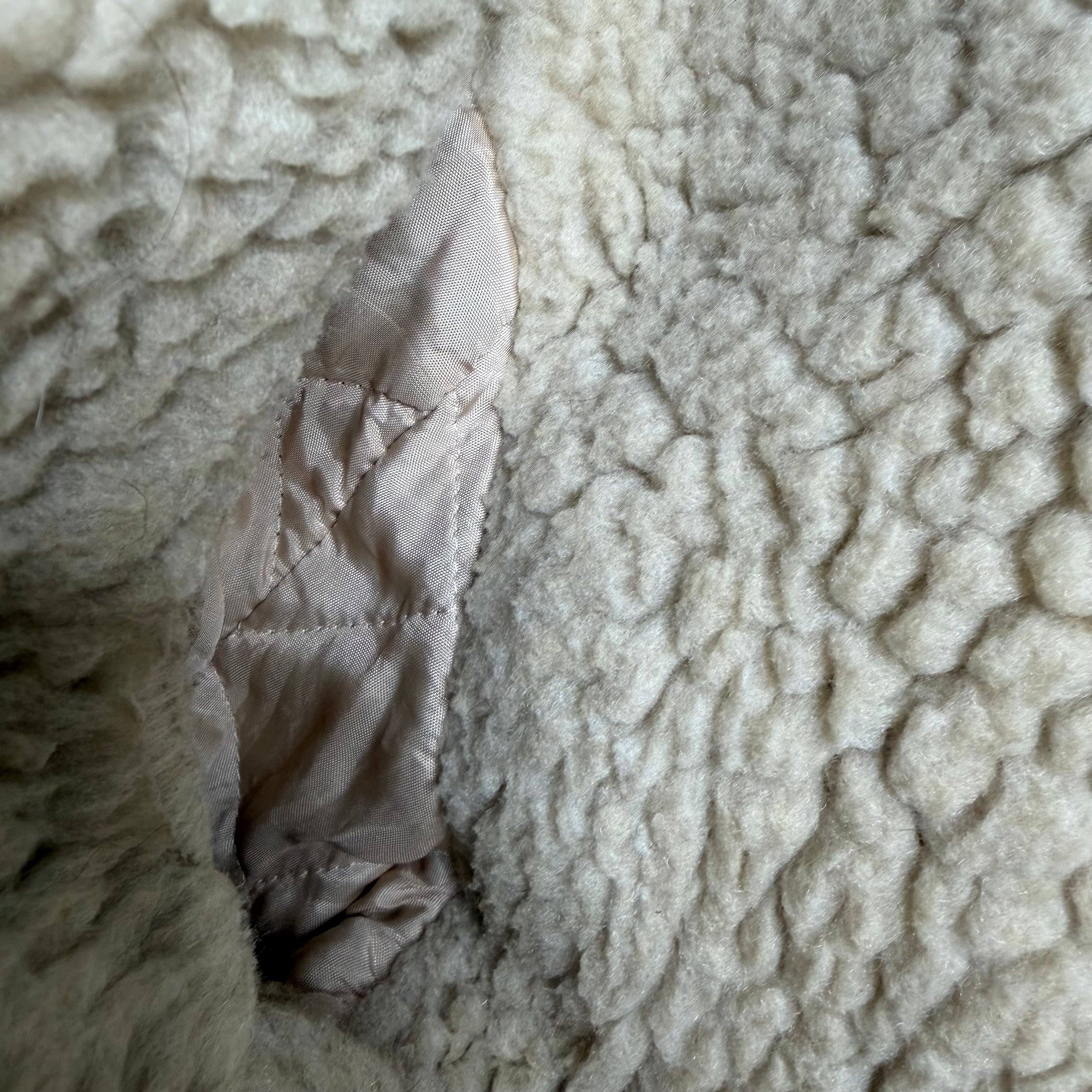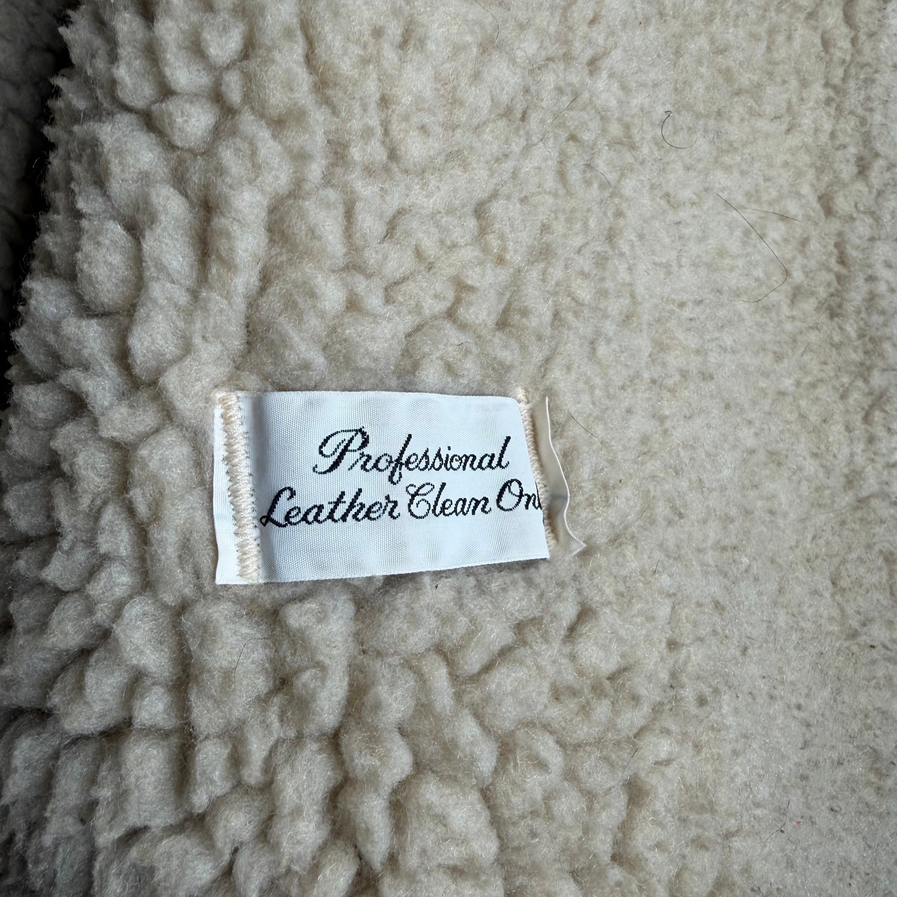 Classic masterplot of a rugged cold weather limo of a jacket here in perf condition features two hidden hand pockets at the side seams and a warm as hell shearling lining. 23.5" armpit to armpit, 27.5" top of back collar to bottom, 19" across shoulders when buttoned, 16" underarm inseam, 24.5" top of sleeve inseam (keep in mind it is shearling lined). JCPenney says 42, fits M/L (keep in mind it is lined..). 100% suede leather exterior/100% polyester lining. Made in the USA.