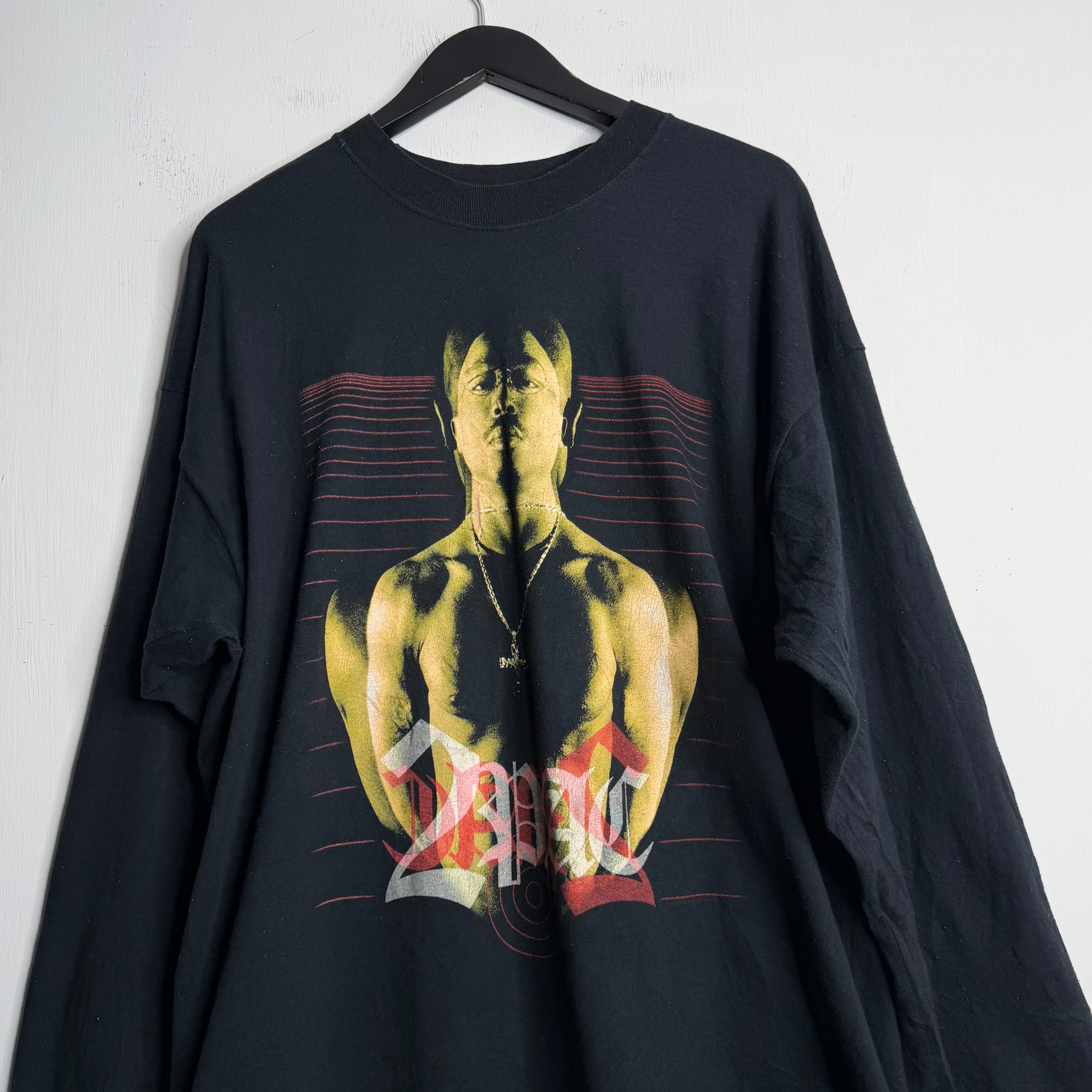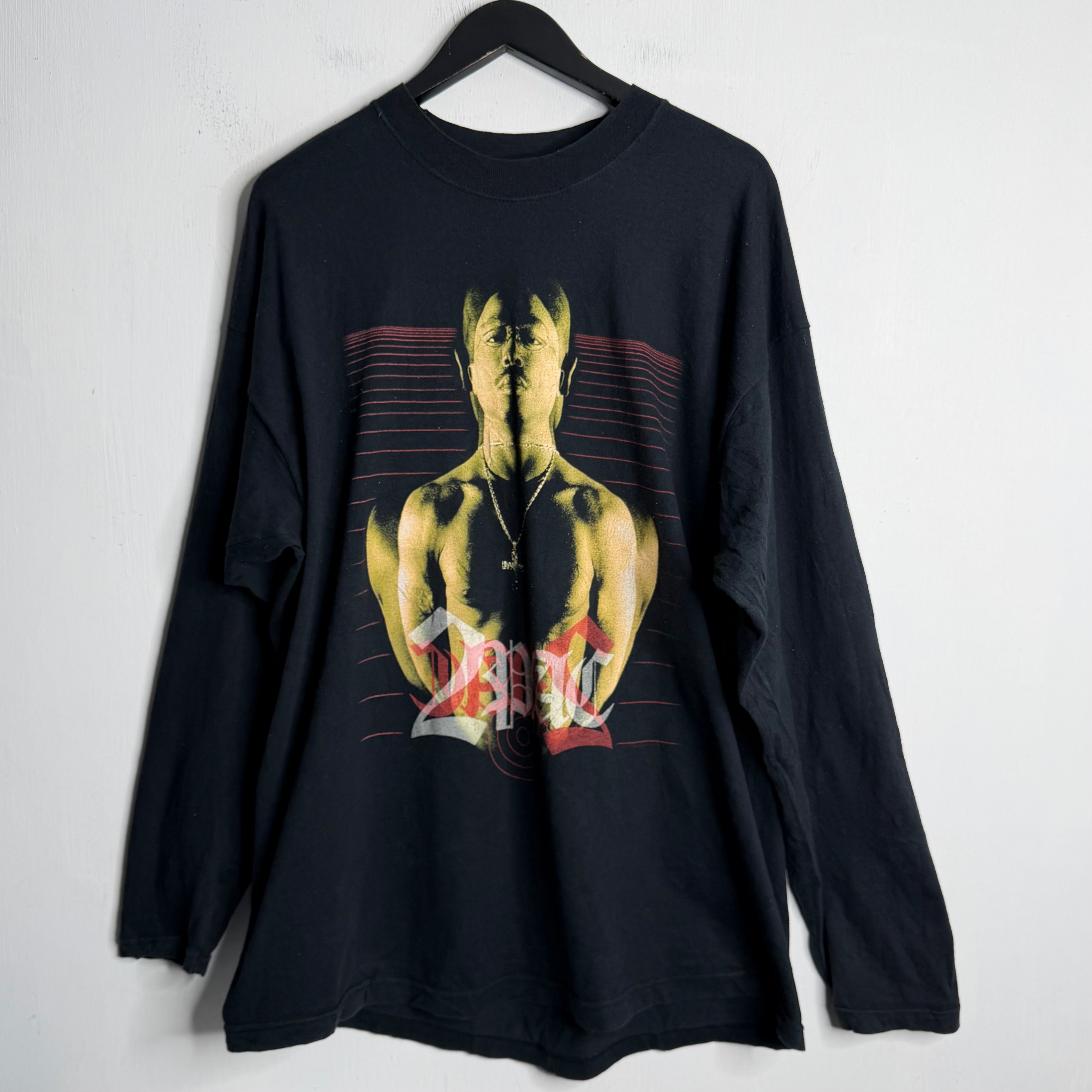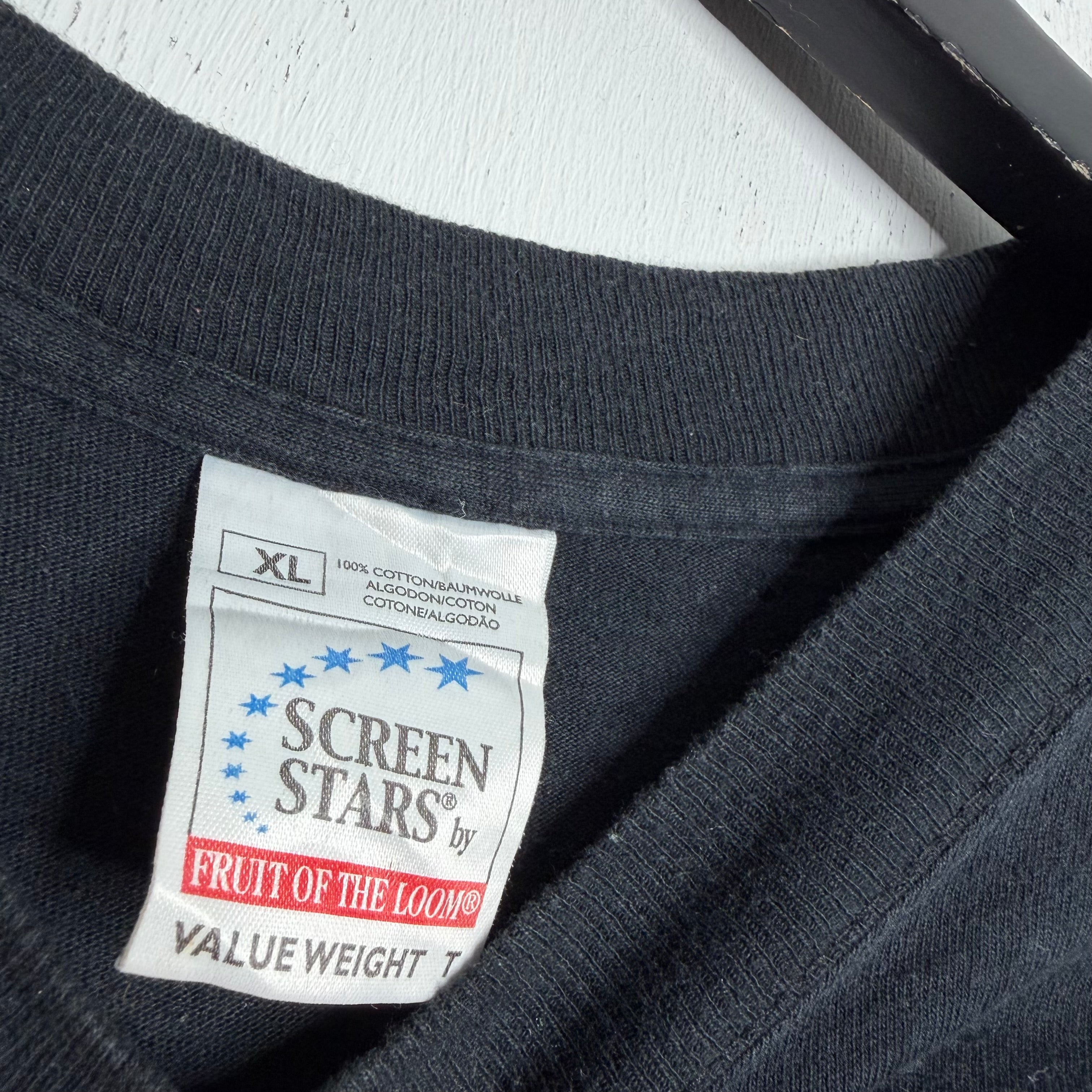Rare enough in short sleeve, long sleeve unreals it. 25" armpit to armpit, 32" top of back collar to bottom. Screen Stars says XL, fits XXL. 100% cotton. Made in Morocco.