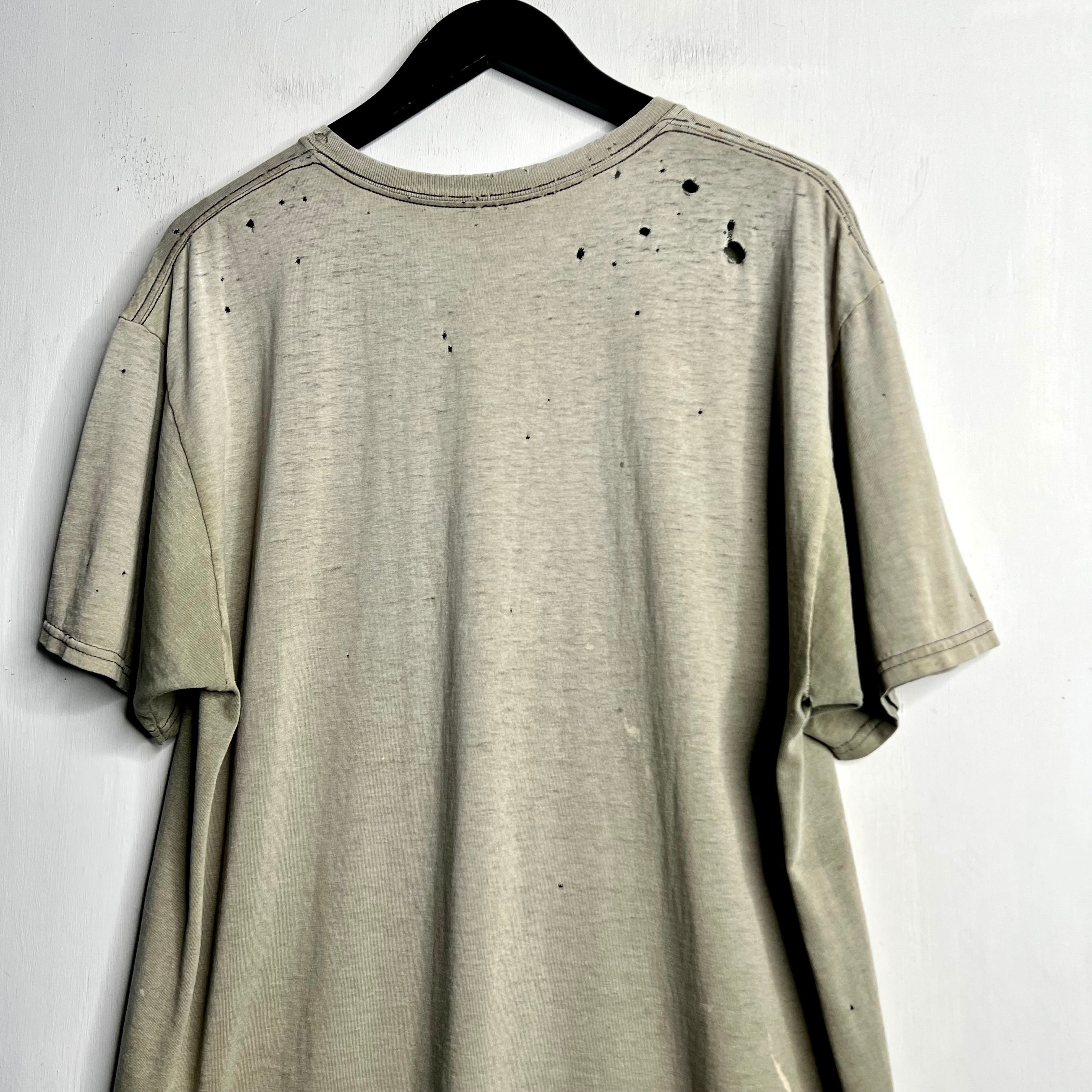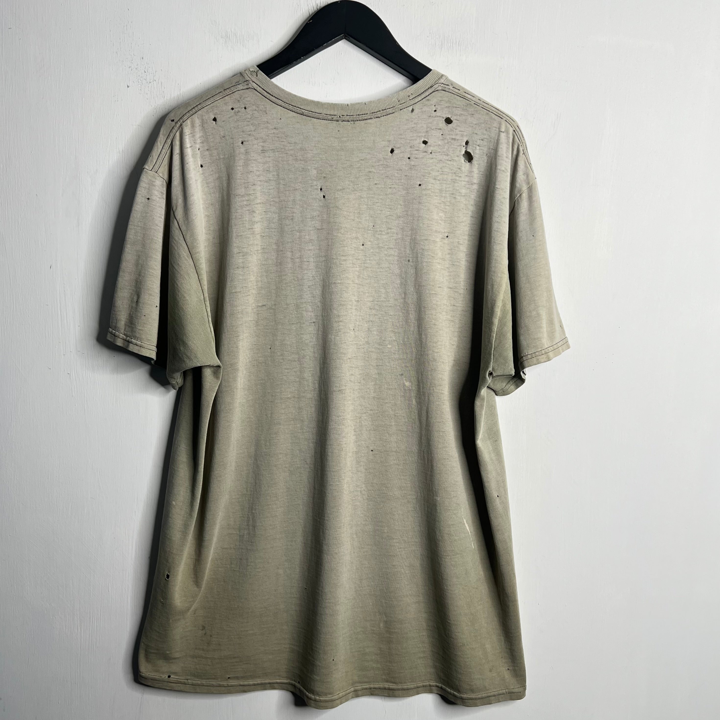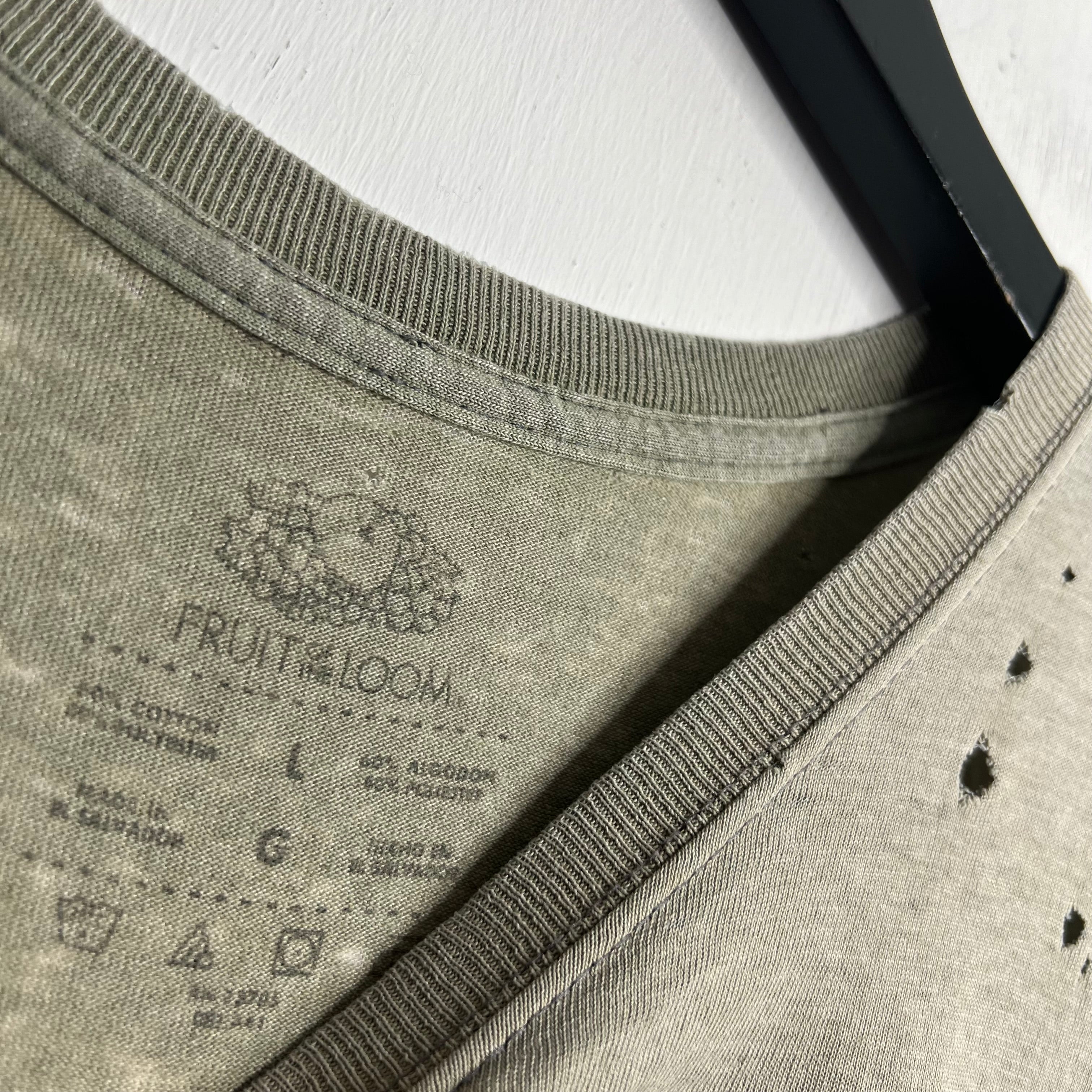 Totalitarian. 27" armpit to armpit, 32" top of back collar to bottom. Discus says XL, fits XXL/XXXL. 100% cotton. Made in the USA.