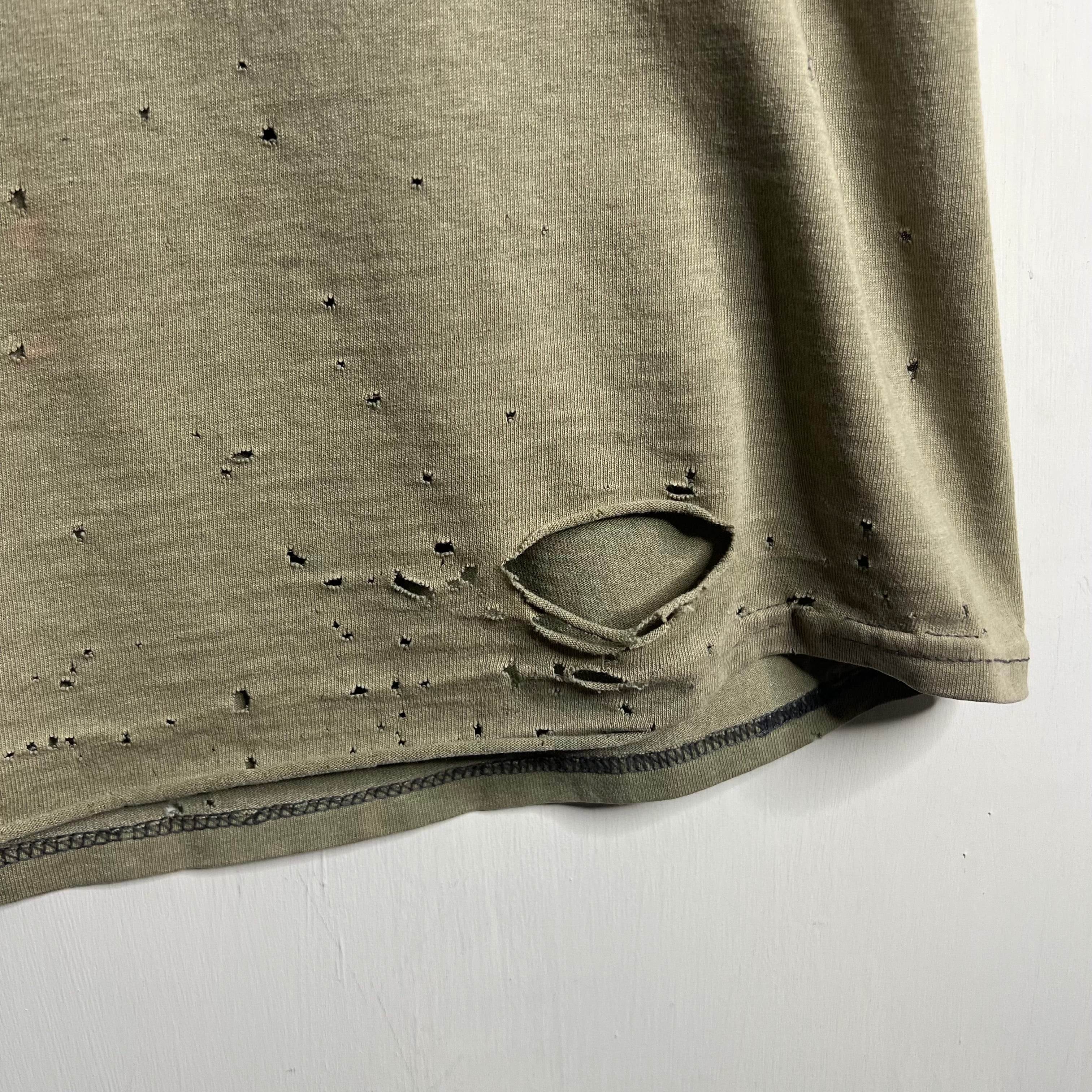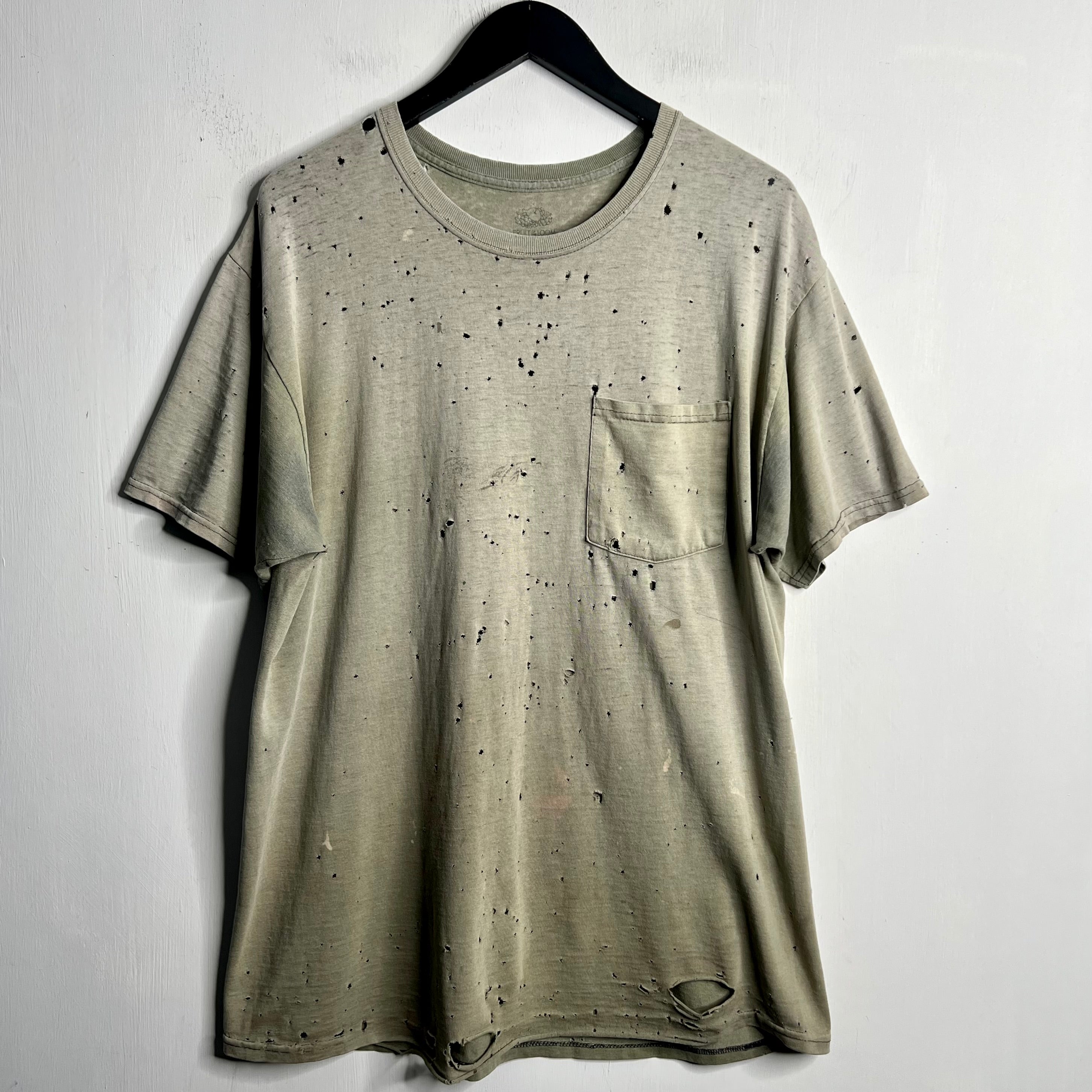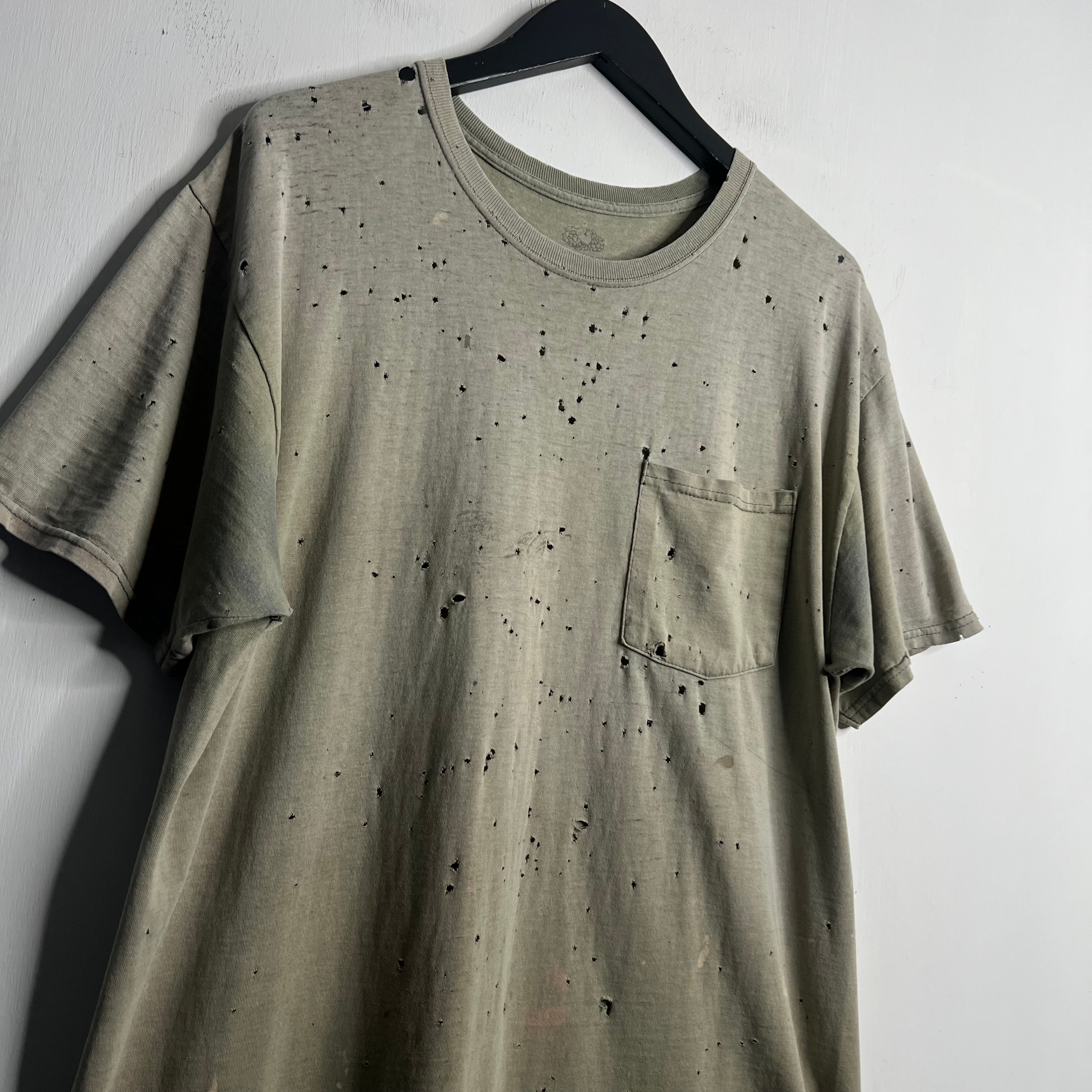 Totalitarian. 27" armpit to armpit, 32" top of back collar to bottom. Discus says XL, fits XXL/XXXL. 100% cotton. Made in the USA.