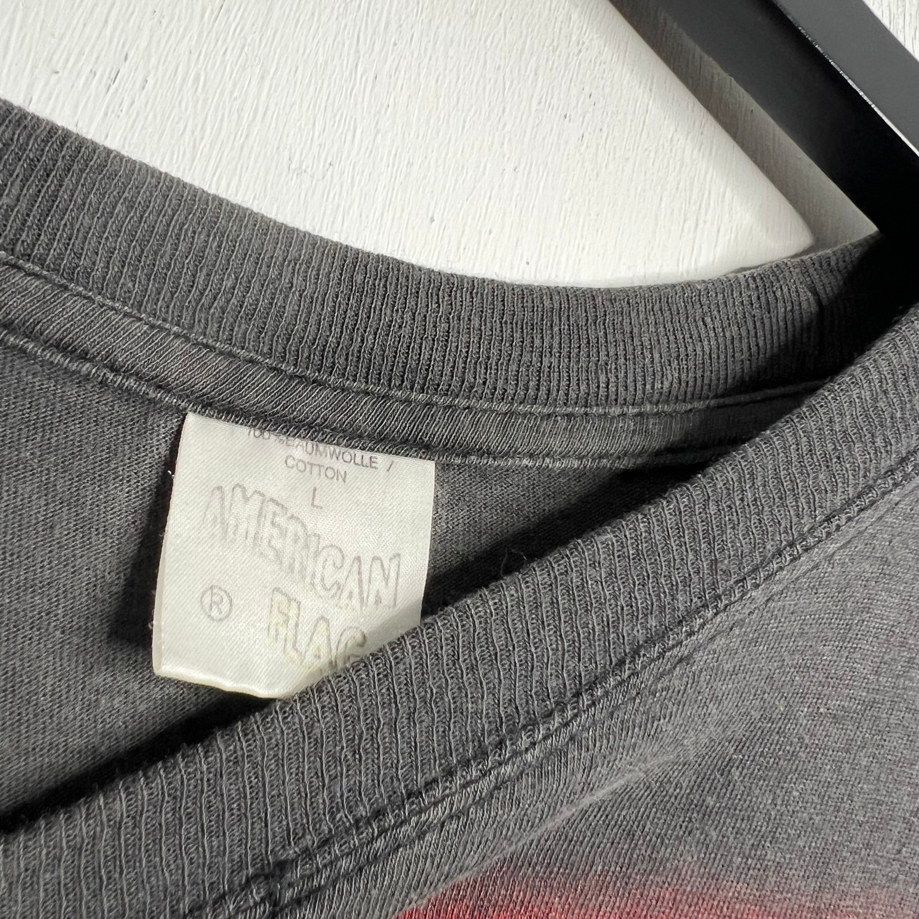 Beyondo rare Euro Metallica mid 90s graphic with an insane fade and thinness. 23.5" armpit to armpit, 27" top of back collar to bottom. American Flag says L, fits wide. 100% cotton. Made in Europe.