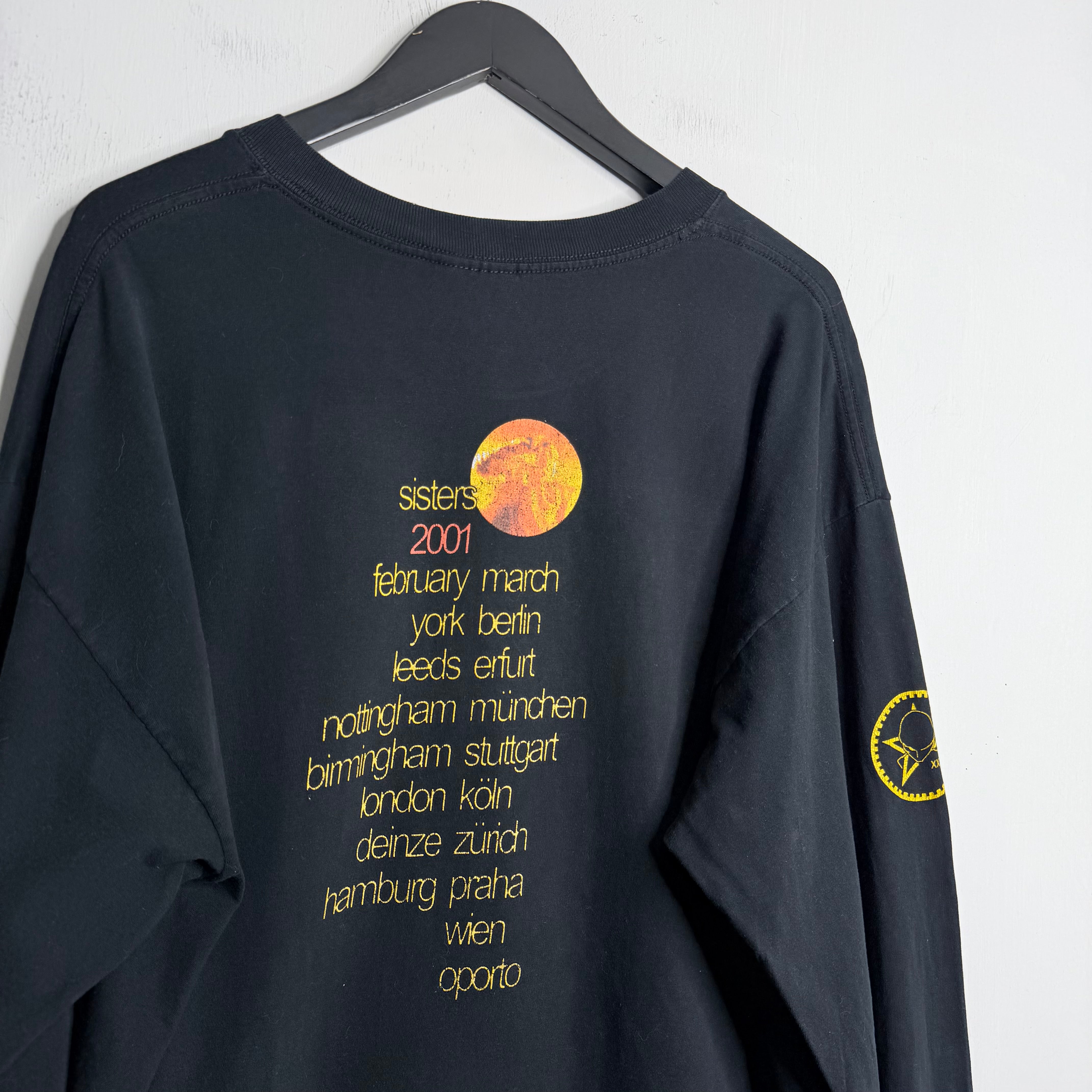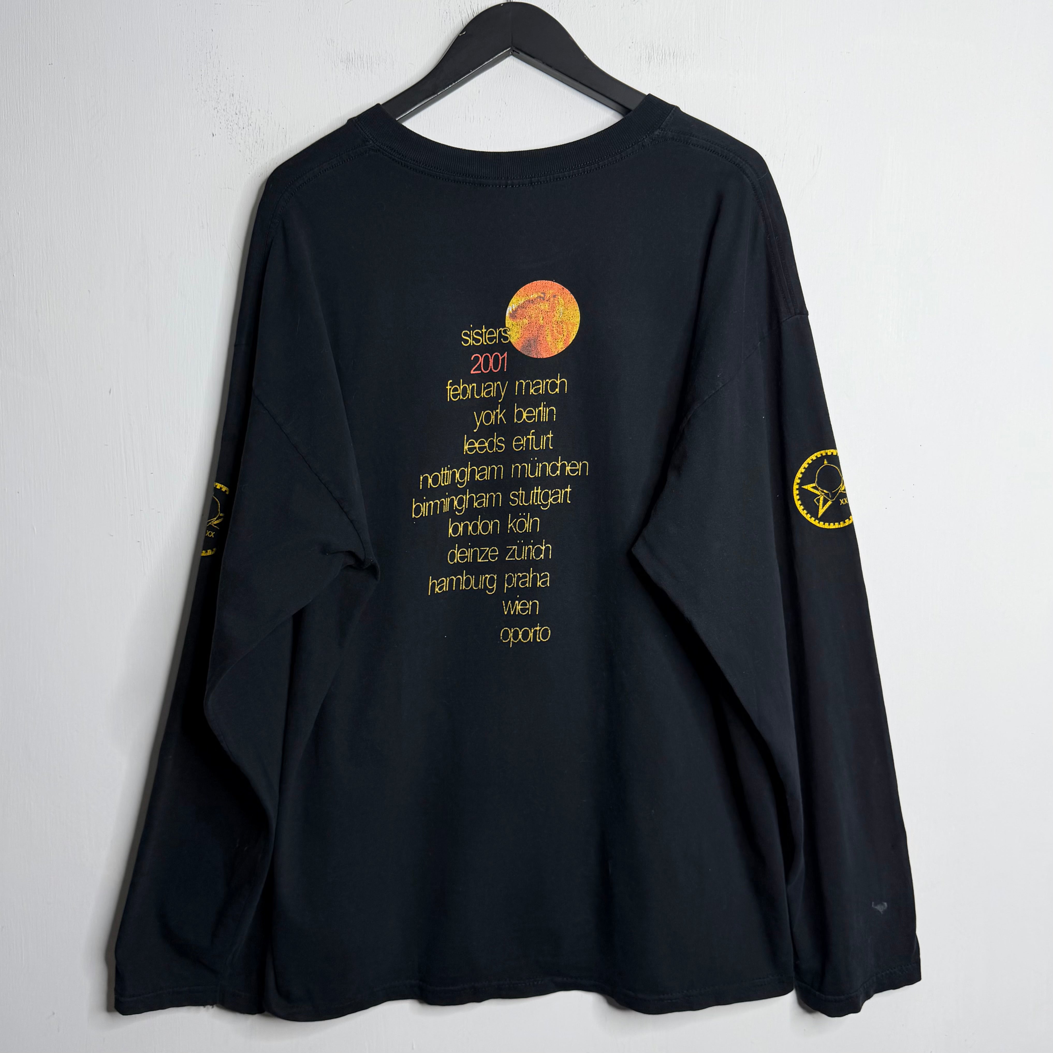 Euro tour early '01 long sleeve corrodes reality. 25" from armpit to armpit and 29.5" from the top of the back collar to the bottom. Gildan says XL, fits slightly big. 100% cotton. Made in Europe.