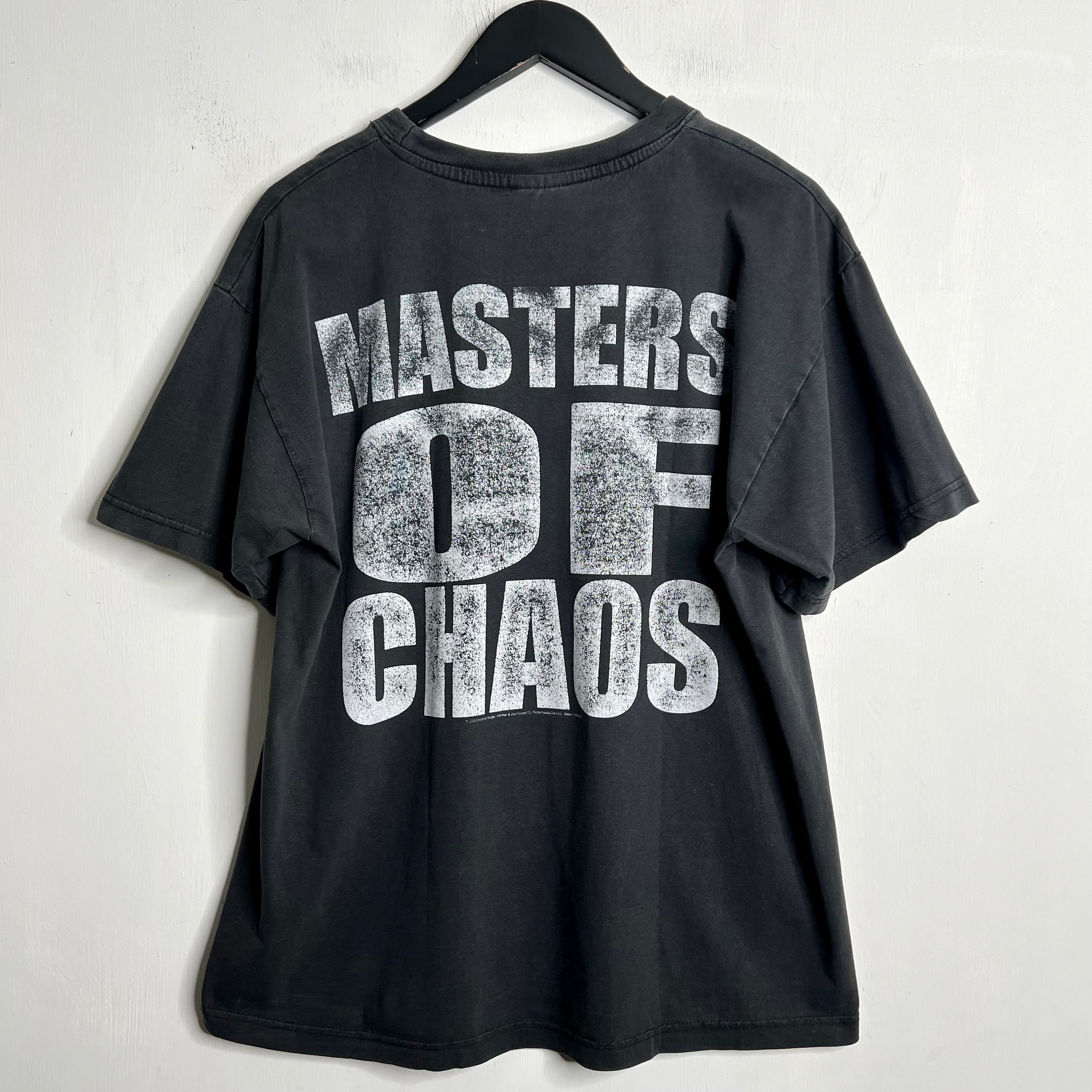 True Azagthothian death metal. 23" armpit to armpit, 27.5" top of back collar to bottom. Tag says L, fits slightly wide. 100% cotton. Made in Europe.