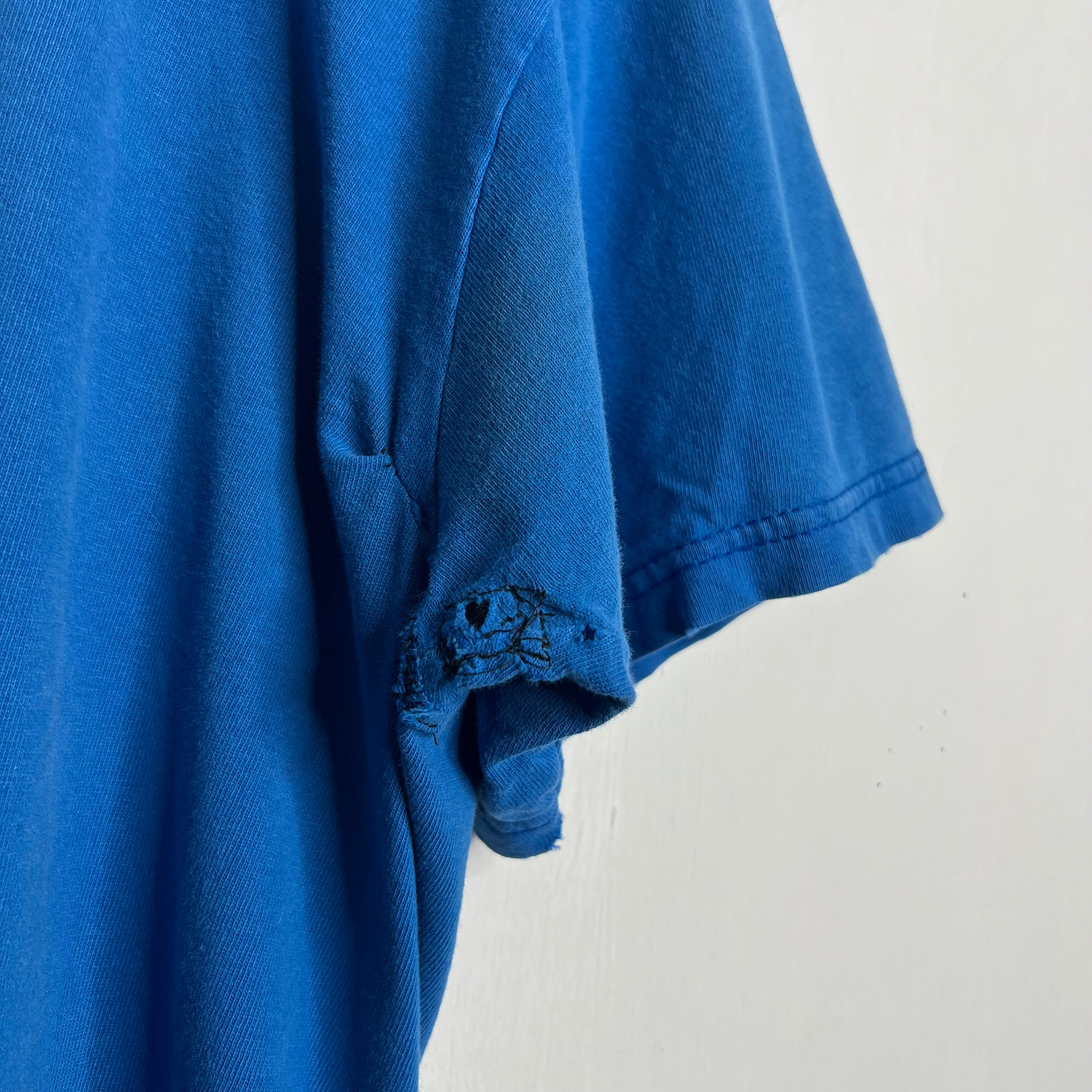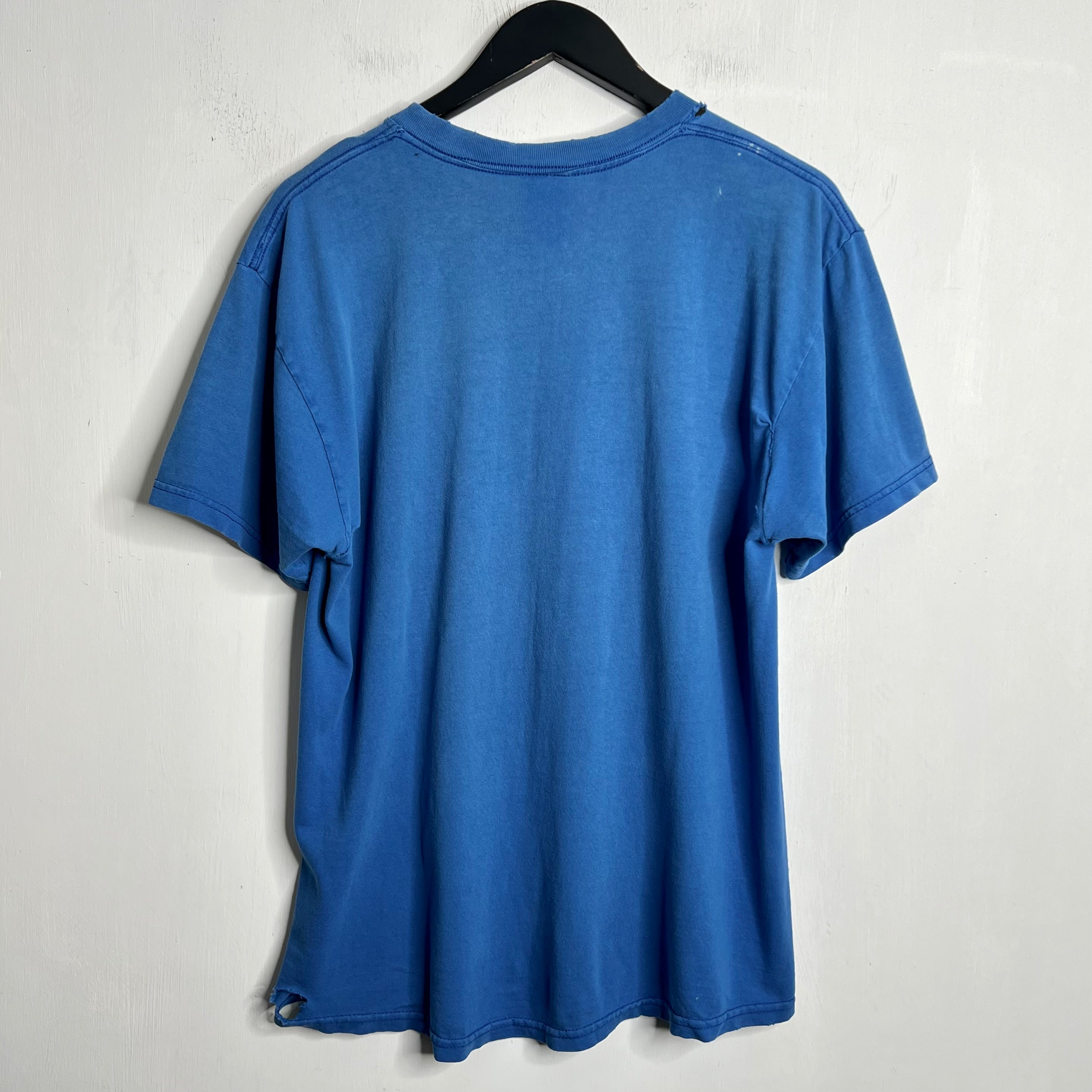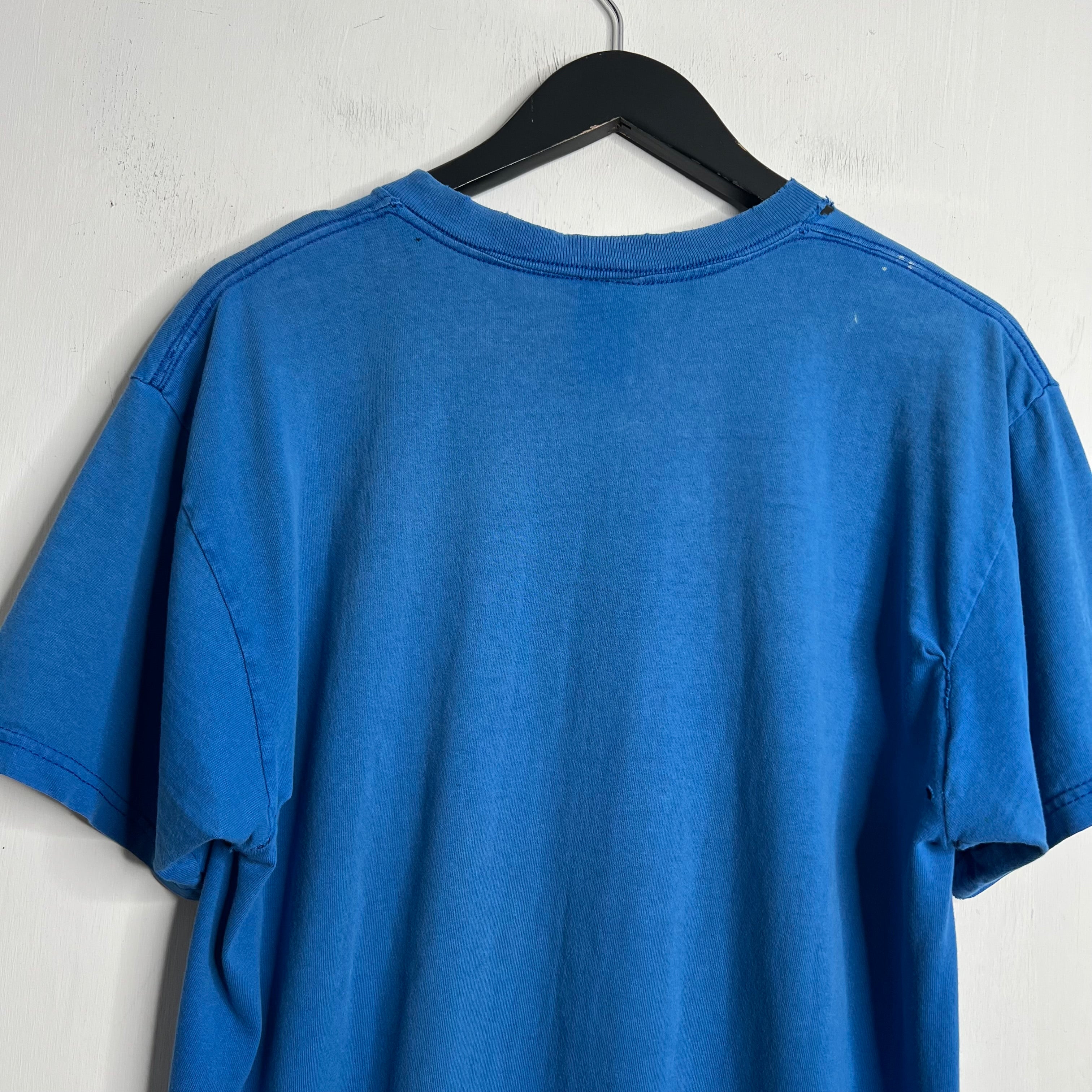 Time-slain SY penultimate got decades of life left.. All hand-stitched repairs done in-house by us. 22.5" armpit to armpit, 28.5" top of back collar to bottom. FOTL says L, fits slightly big. 100% cotton. Made in Honduras.