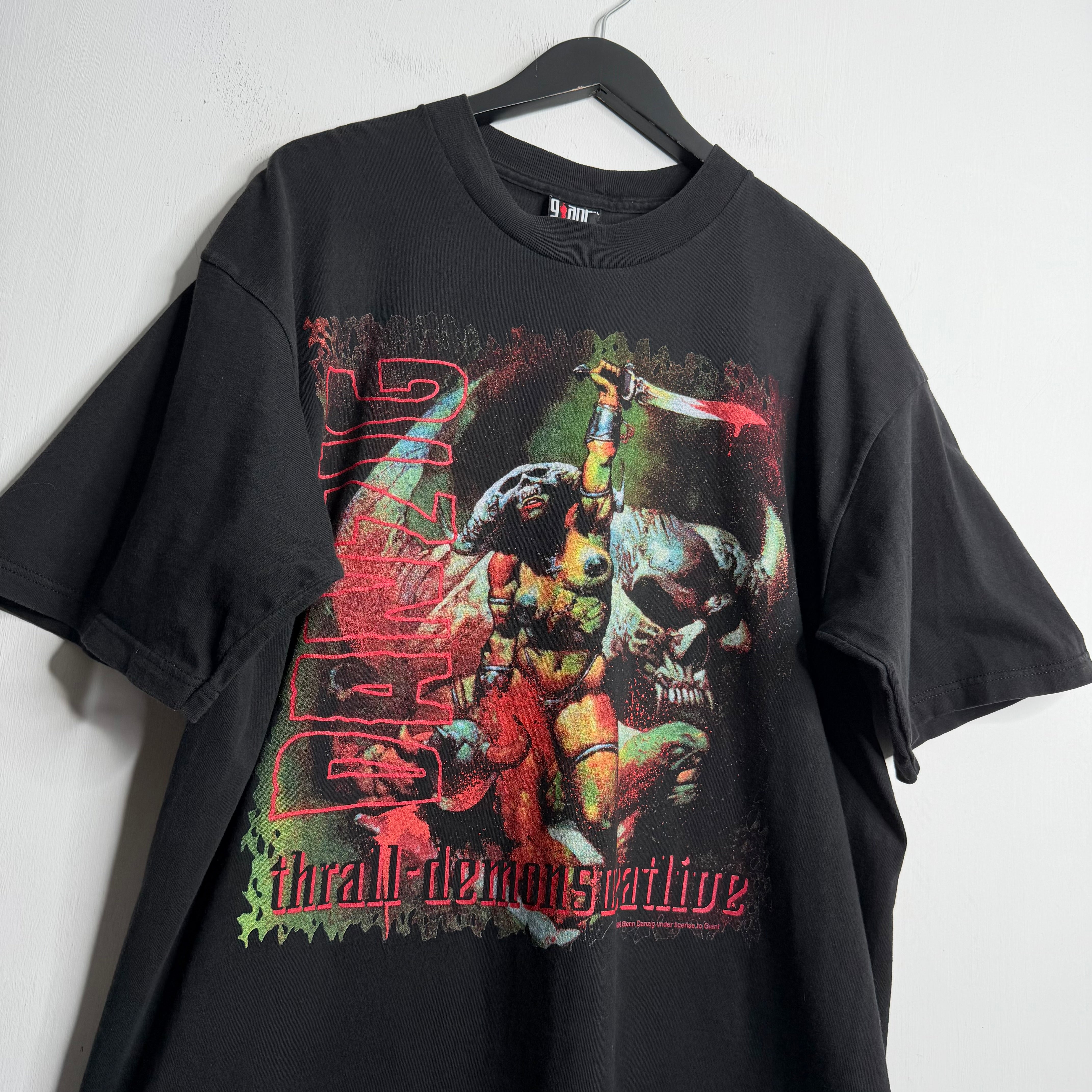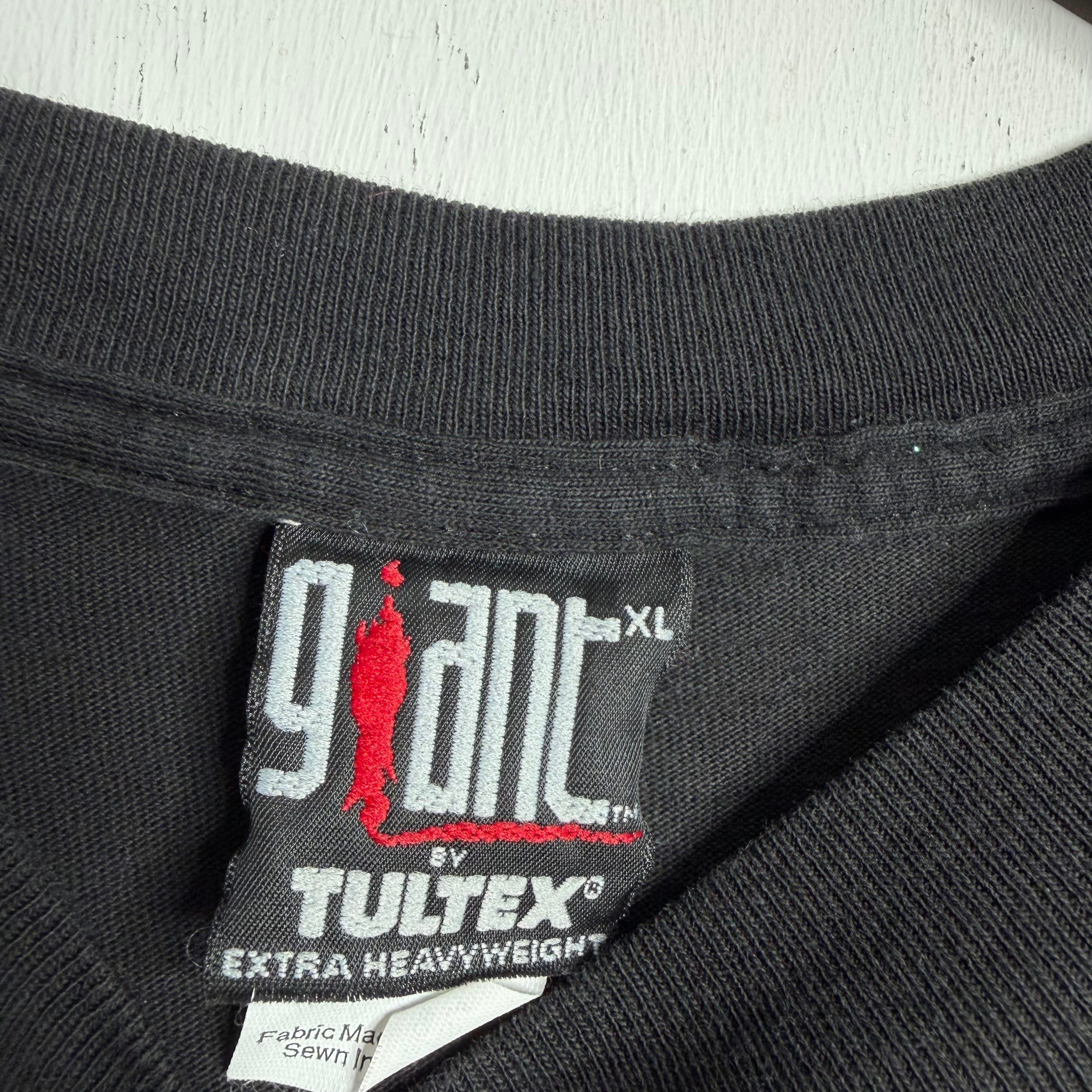 Danzig grail shows you how its done. 24" armpit to armpit, 31.5" top of back collar to bottom. Giant says XL, fits big. 100% cotton. Made in the USA.