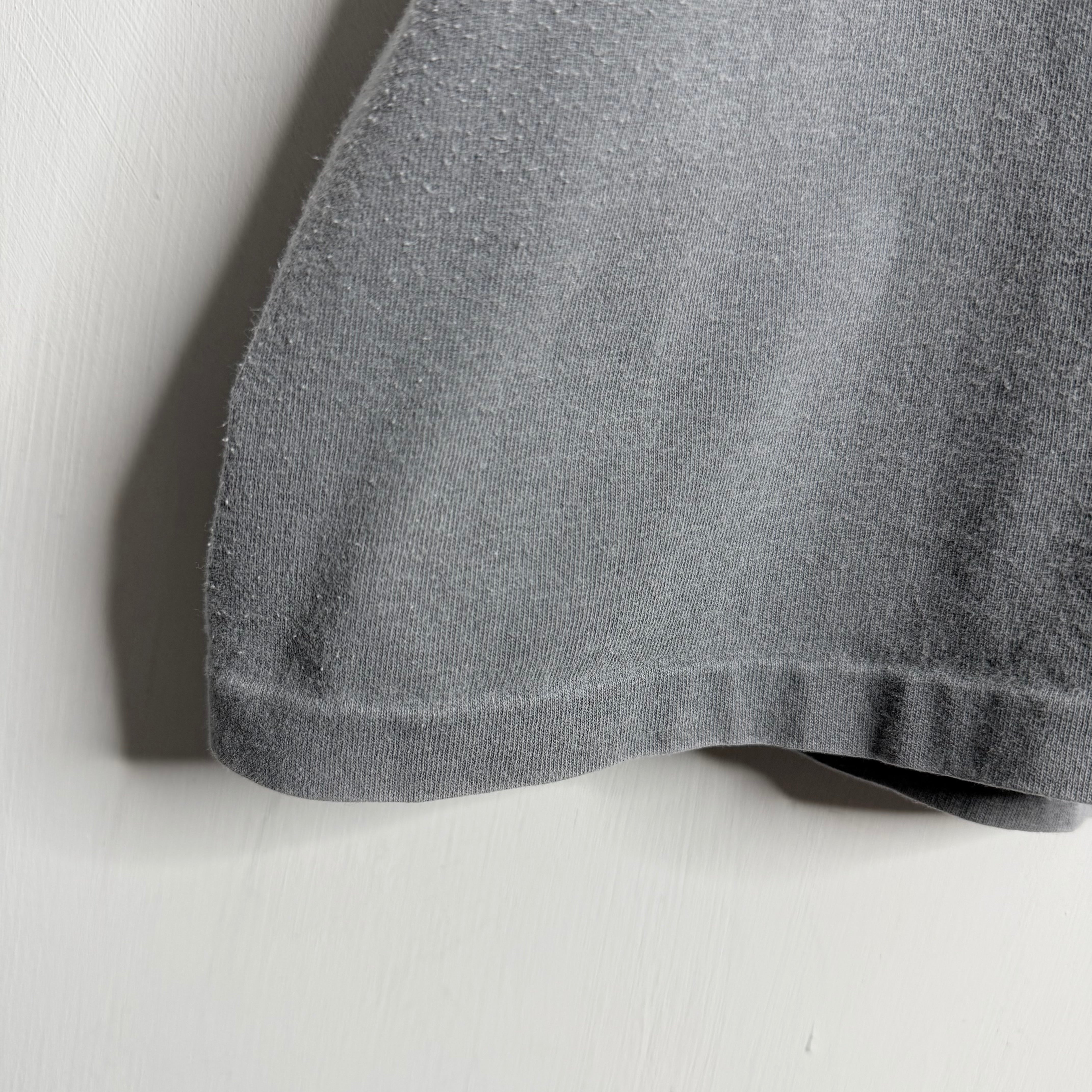 Wearable sickness, stuporly faded, weight and texture of true divinity, oversized fit. 26" armpit to armpit 30" top of back collar to bottom. Tag says XL, fits XXL . 100% cotton. Made in the USA.