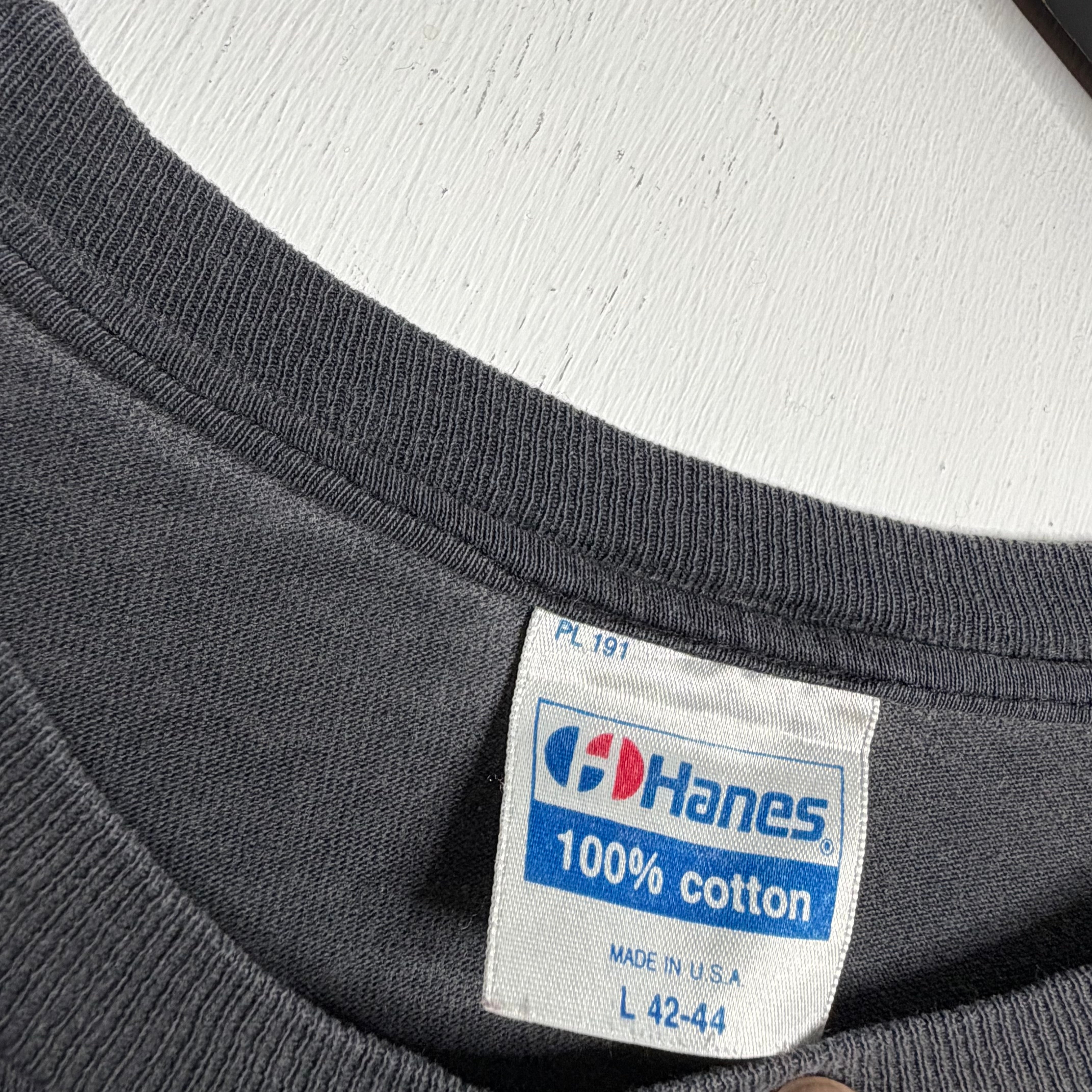 Sanctuary. 23" armpit to armpit, 27.5" top of back collar to bottom. Hanes says L. 100% cotton. Made in the USA.