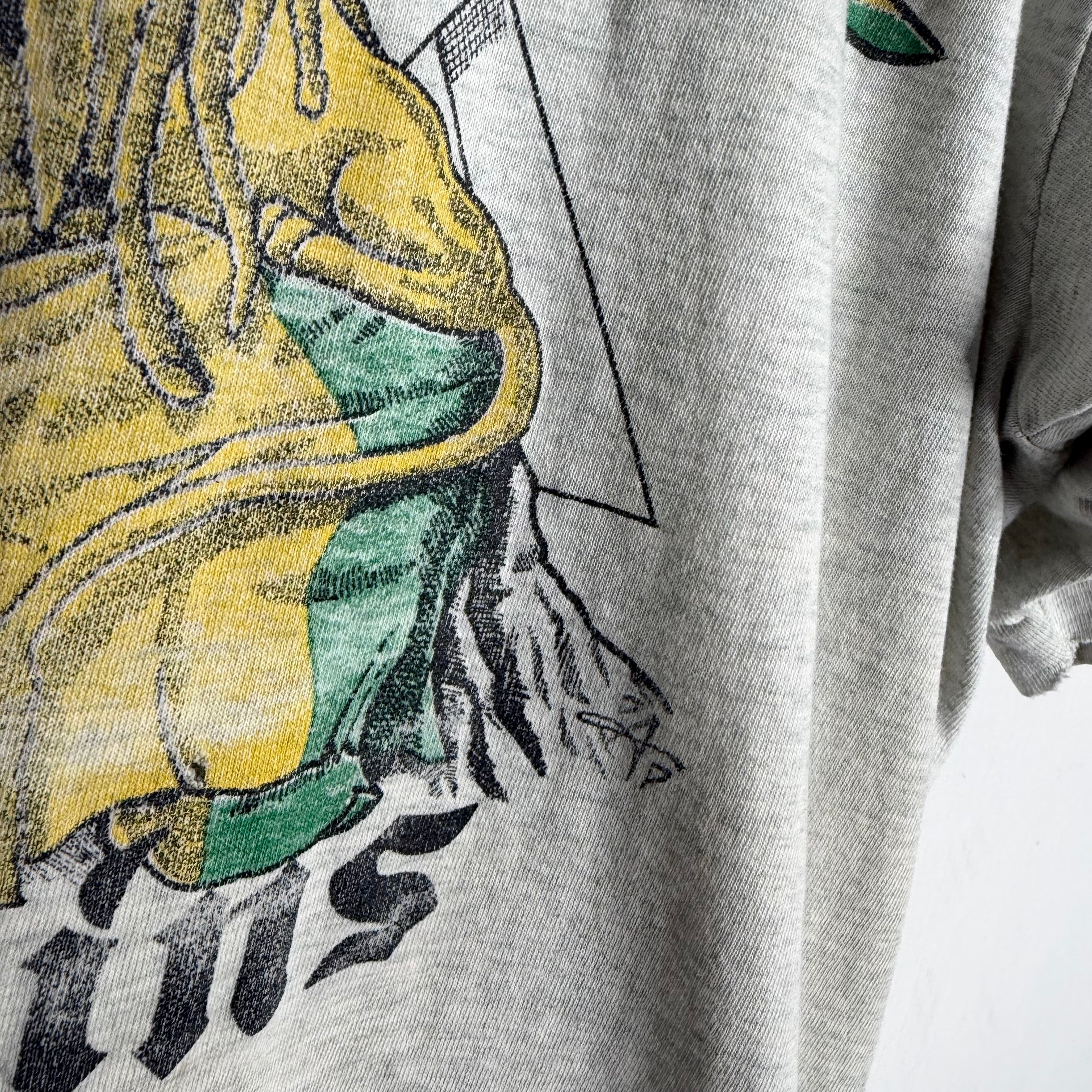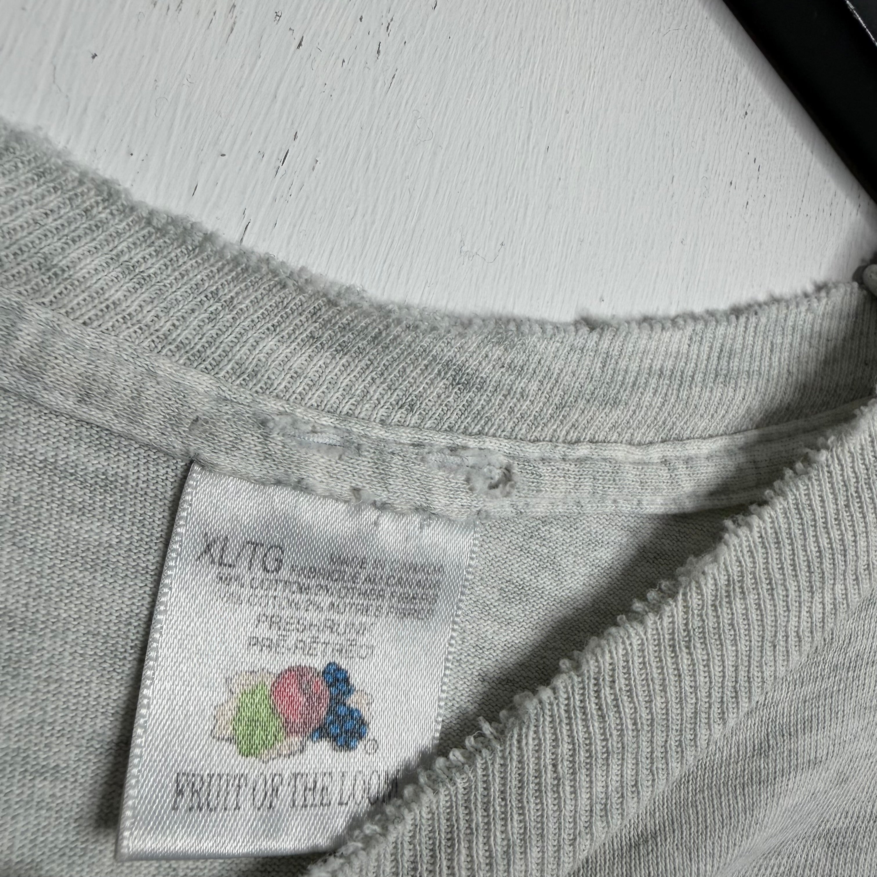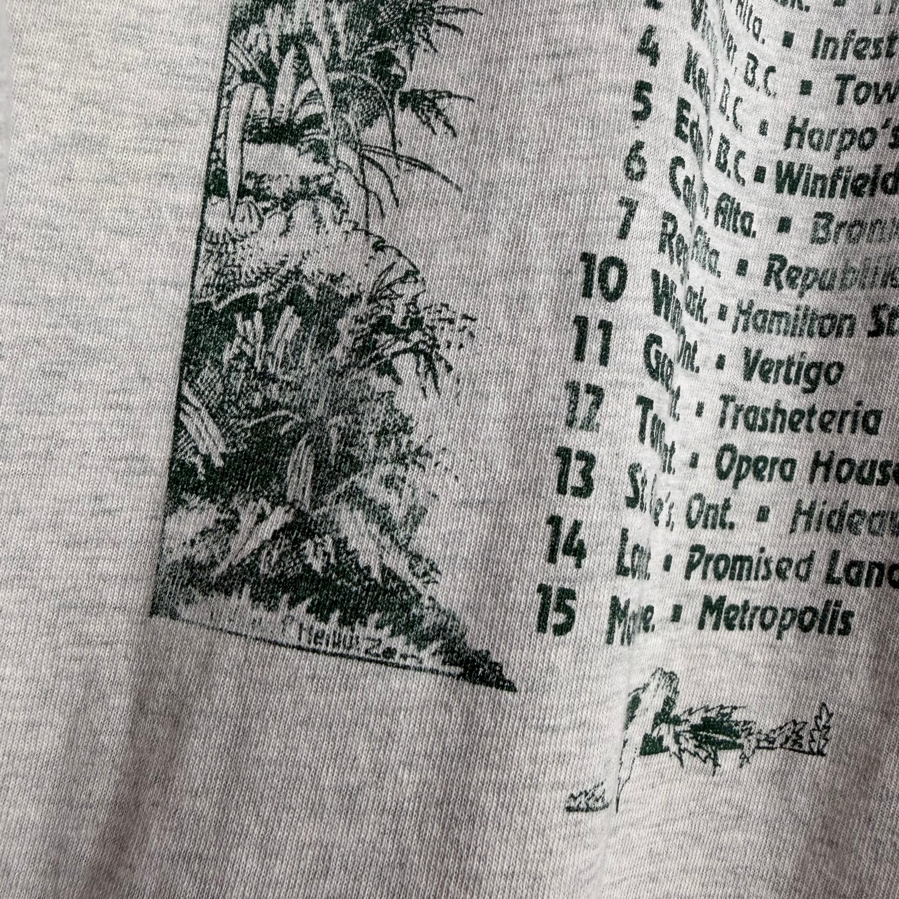 Hellishly rare Canadian tour relic with exceedingly awesome fading and wear. 25" armpit to armpit, 29" top of back collar to bottom. Fruit Of The Loom says XL, fits slightly big. 100% cotton. Made in Canada.