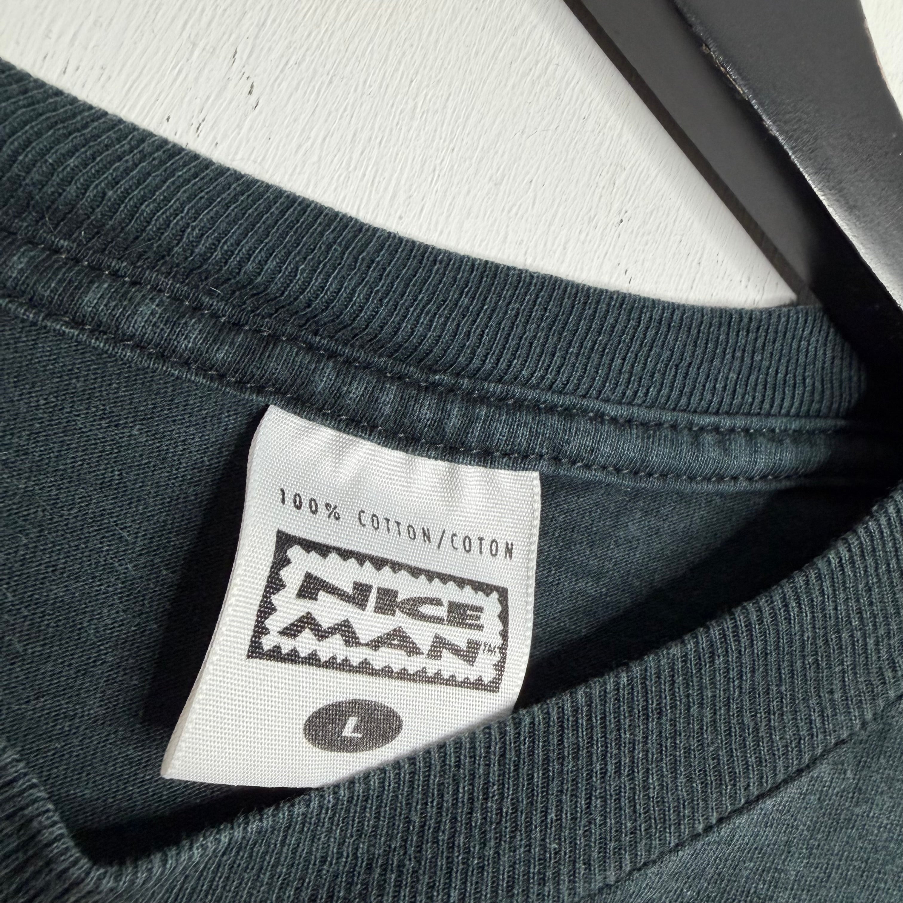 For the stash's top shelf.. 22.5" armpit to armpit, 30" top of back collar to bottom. Nice Man says L, fits XL. 100% cotton. Made in the USA.