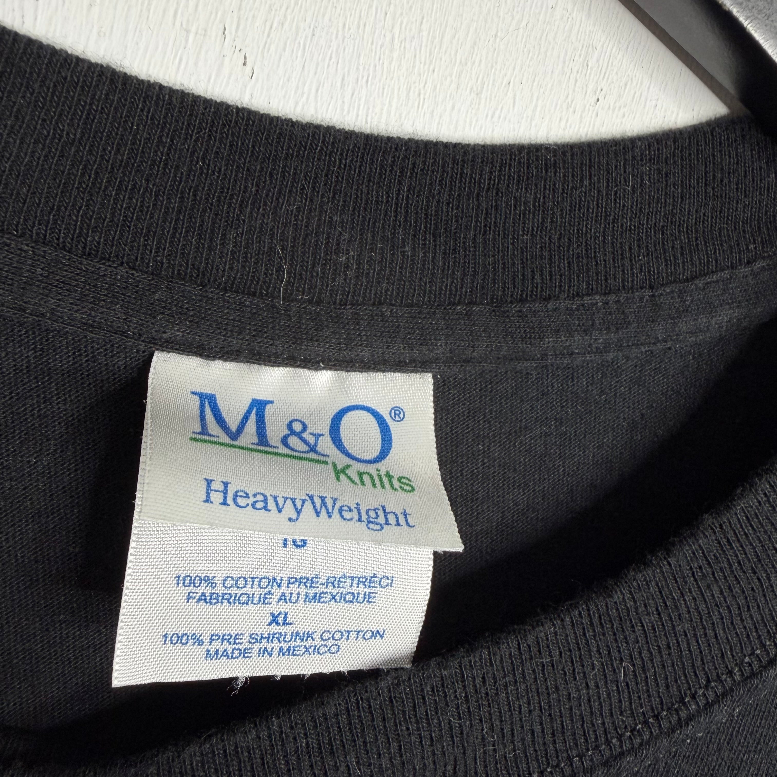Get it? 24" armpit to armpit, 28" top of back collar to bottom. M&O Knits says XL. 100% cotton. Made in Mexico.