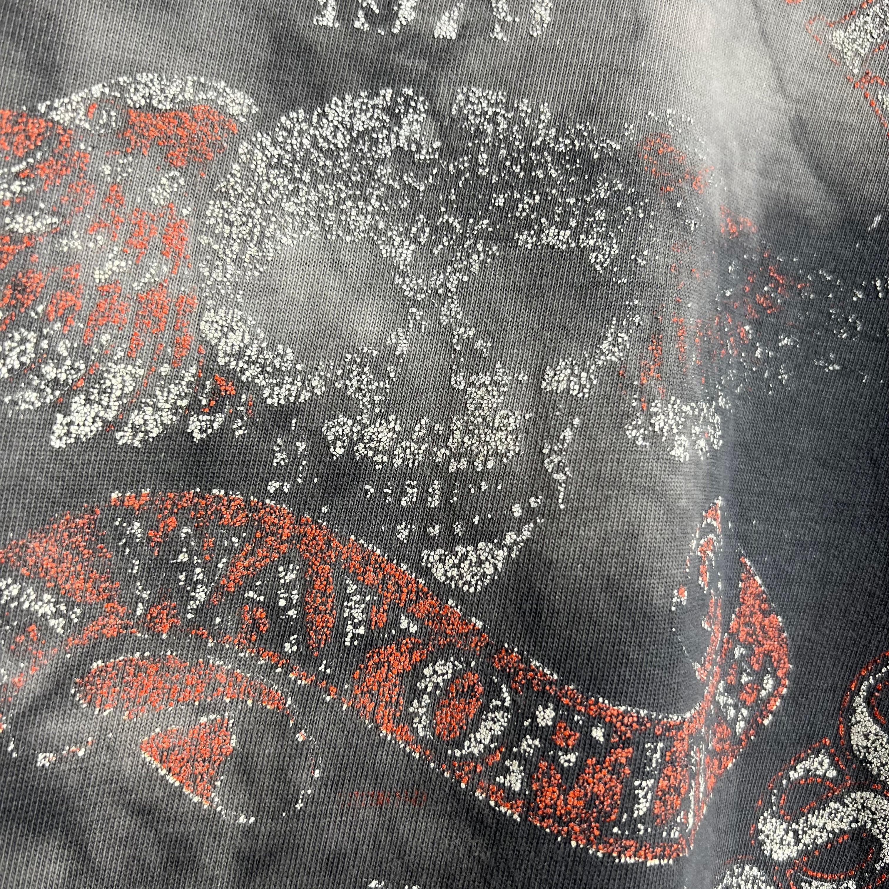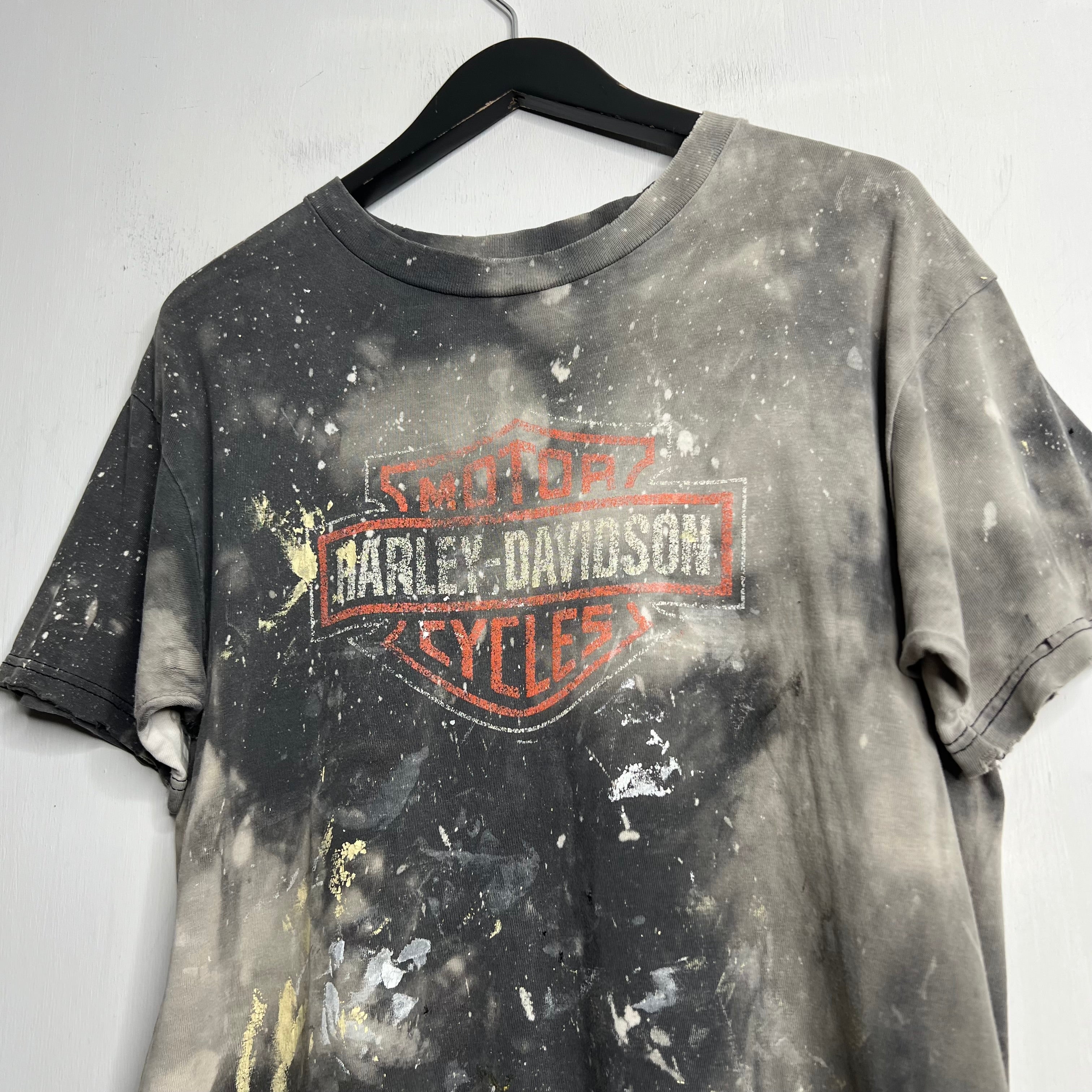 Unreal.. yet real. 22" armpit to armpit, 28" top of back collar to bottom. Harley Davidson says L. 100% cotton. Made in the USA.