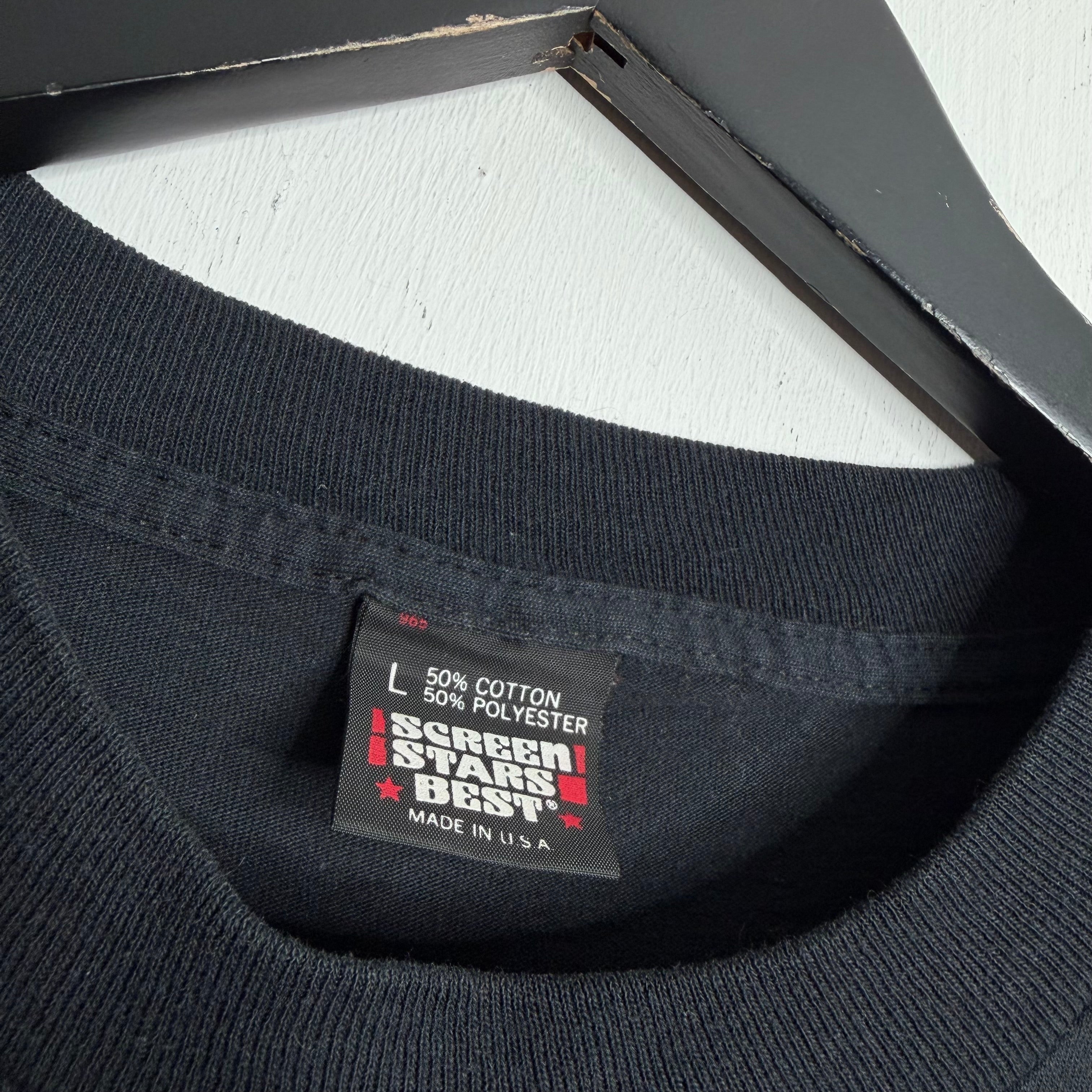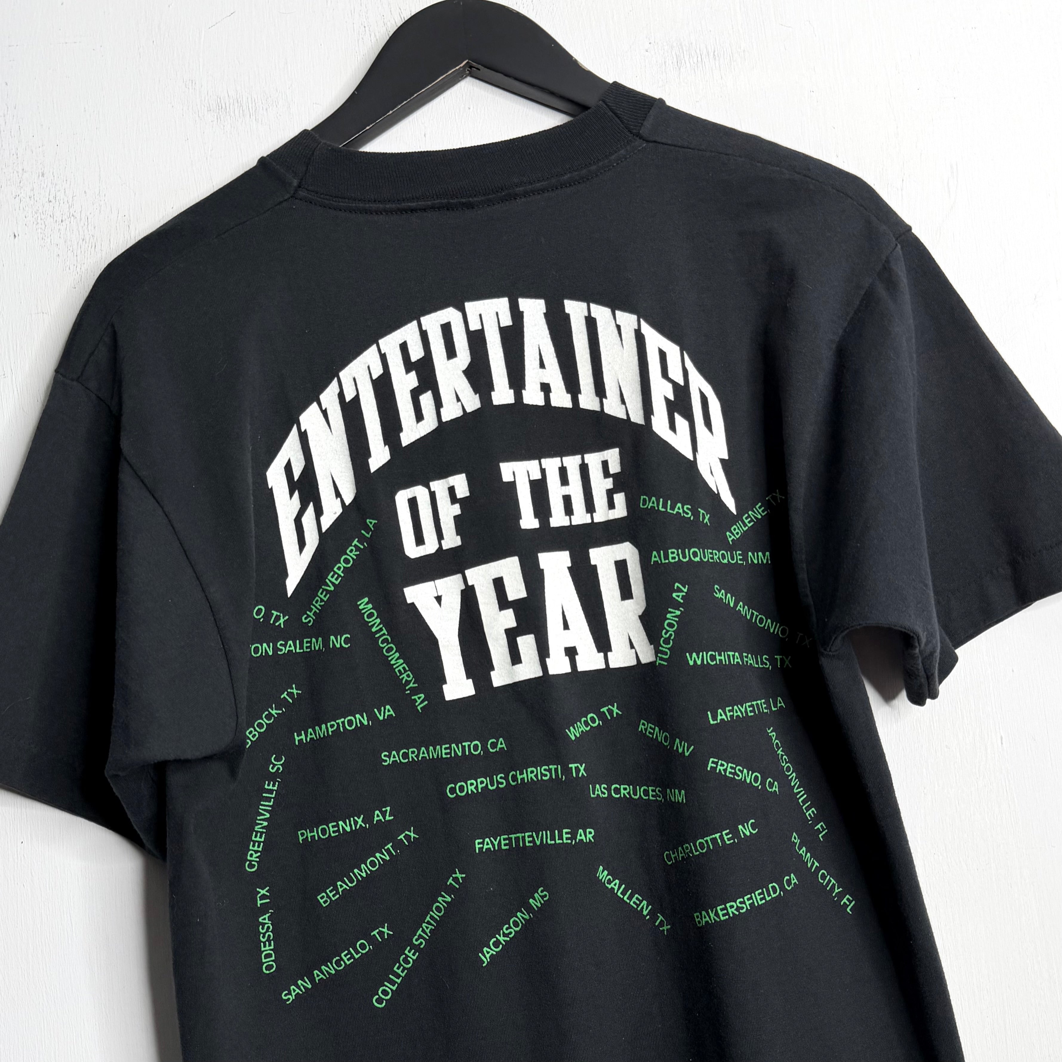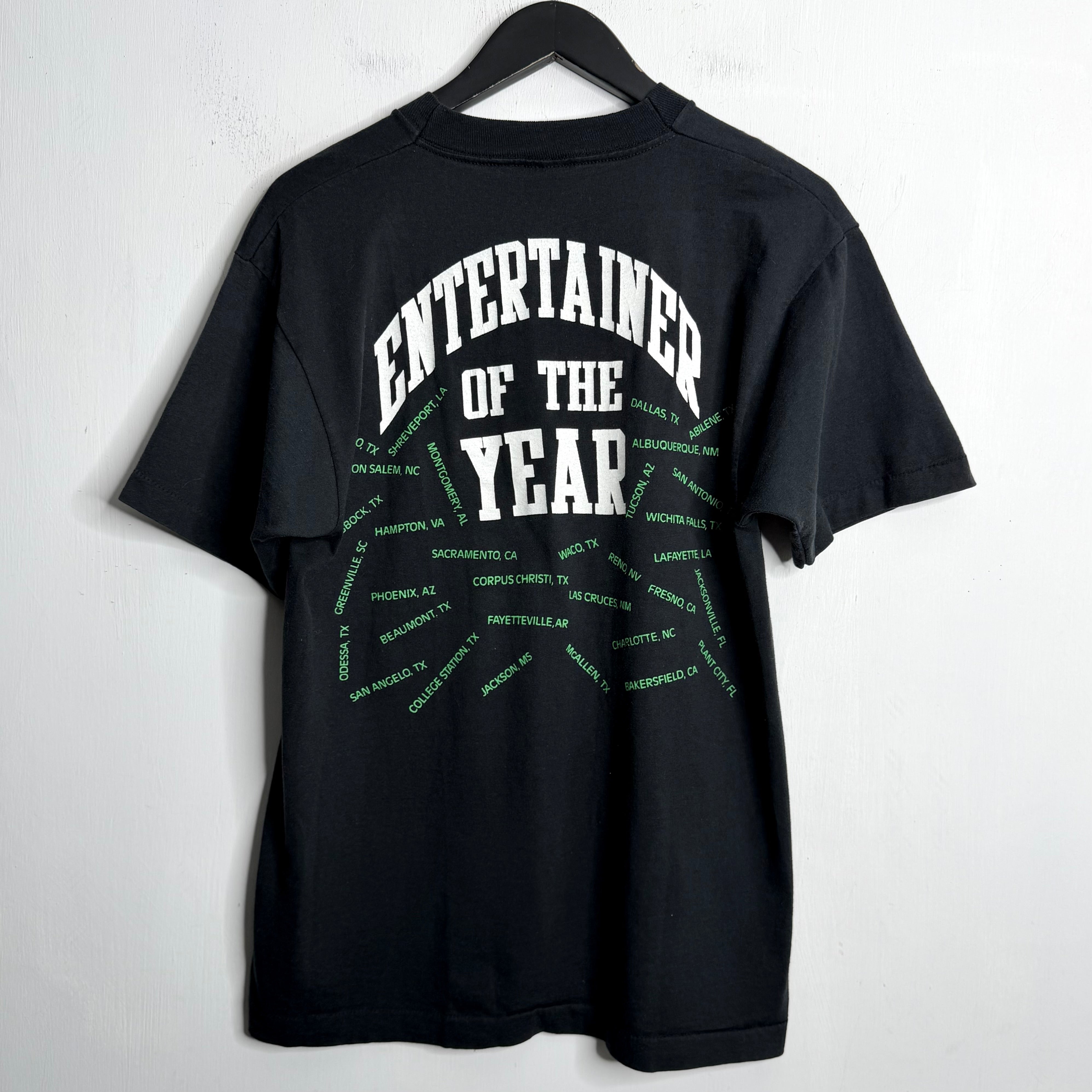 If you ain't lovin' you ain't livin'... Prob from 1991 (one of the years he won that award). 20.5" armpit to armpit, 28" top of back collar to bottom. Screen Stars Best says L, fits slightly narrow. 50% cotton/50% polyester. Made in the USA.
