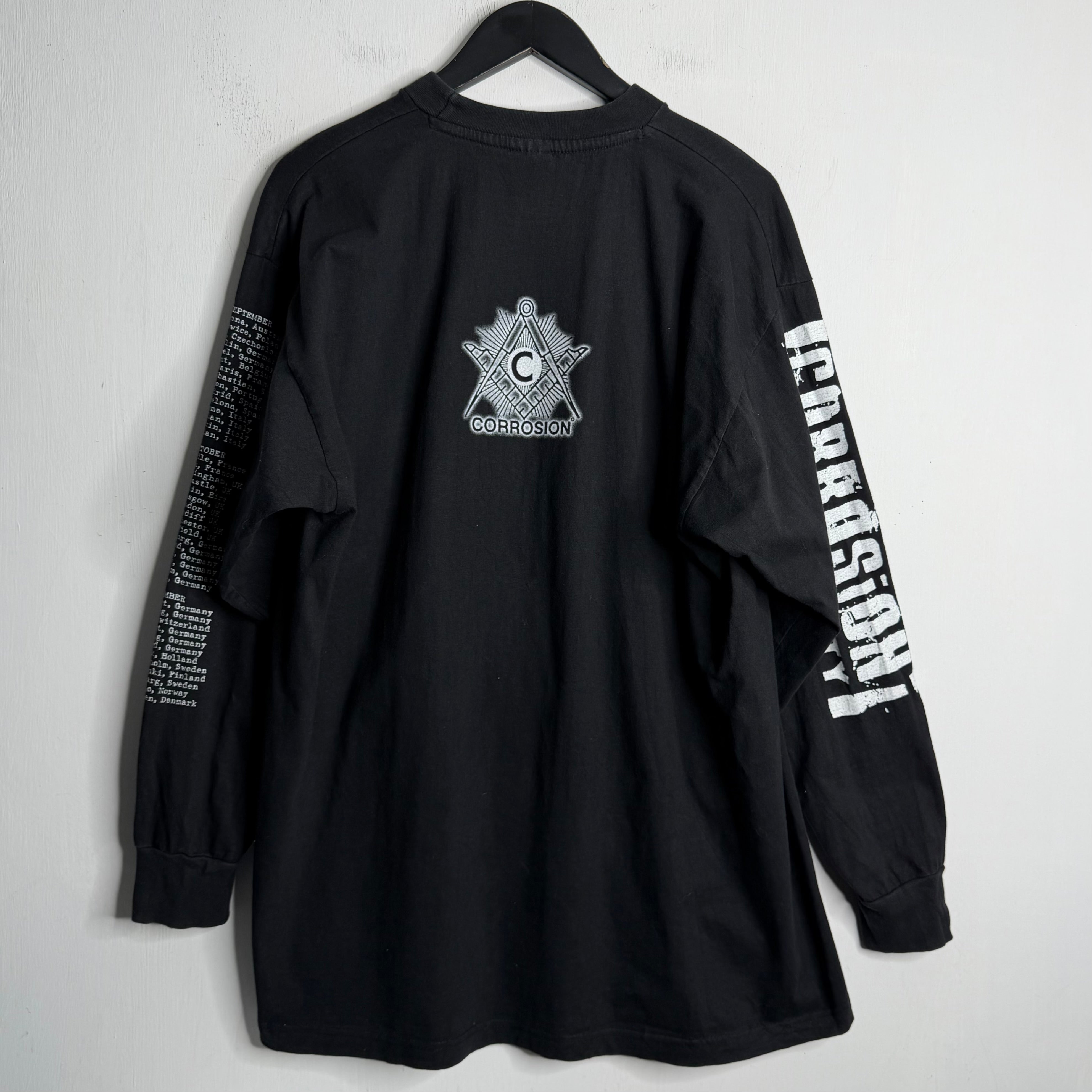 They opened for Metallica on some of these dates. 24.5" armpit to armpit, 32" top of back collar to bottom. Tag says XL, fits big. 100% cotton. Made in Europe.